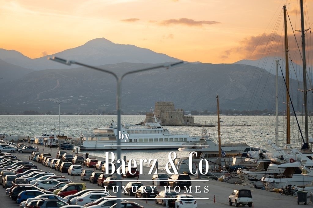 Apartment Nafplio Center biedt een zeldzame kans om een exclusieve woning van 137 m² te verwerven, gelegen op enkele passen van het historische oude centrum van Nafplio. Dit appartement is uniek in zijn soort, met direct en onovertroffen uitzicht op zee, de haven, luxe jachten en het iconische Bourtzi-kasteel. Vanaf het eerste moment bepalen het leven rondom de haven en de eindeloze blauwe horizon zowel het interieur als de beleving van deze woning.