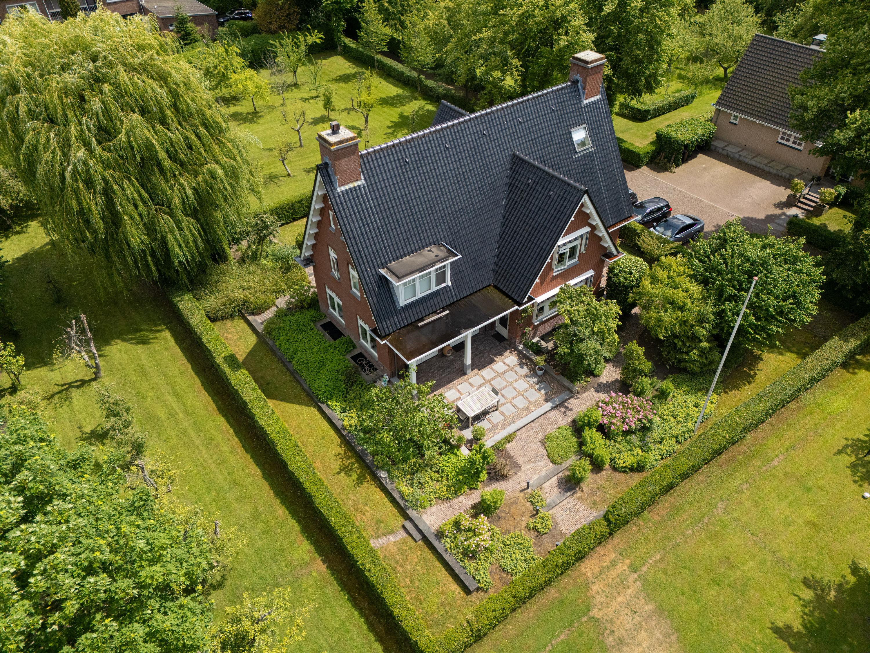 Entree, hal met garderoberuimte en meterkast. Ruime hal met aangrenzend de studeerkamer (3.80 x 3.40m). Toiletruimte. Woonkamer met fraaie visgraat-parketvloer en open haard. De woonkamer heeft meerdere openslaande deuren naar de omliggende tuin. Woonkeuken (Siematic, 4.18 x 5.30m) met Amerikaanse koel-/vrieskast, 6-pitsgaskookplaat met oven, afzuigkap, vaatwasser en aparte combi oven-/magnetron. Bijkeuken alwaar aansluitingen voor de wasmachine en droger. Zonnig, riant terras (6.05 x 6.22m).