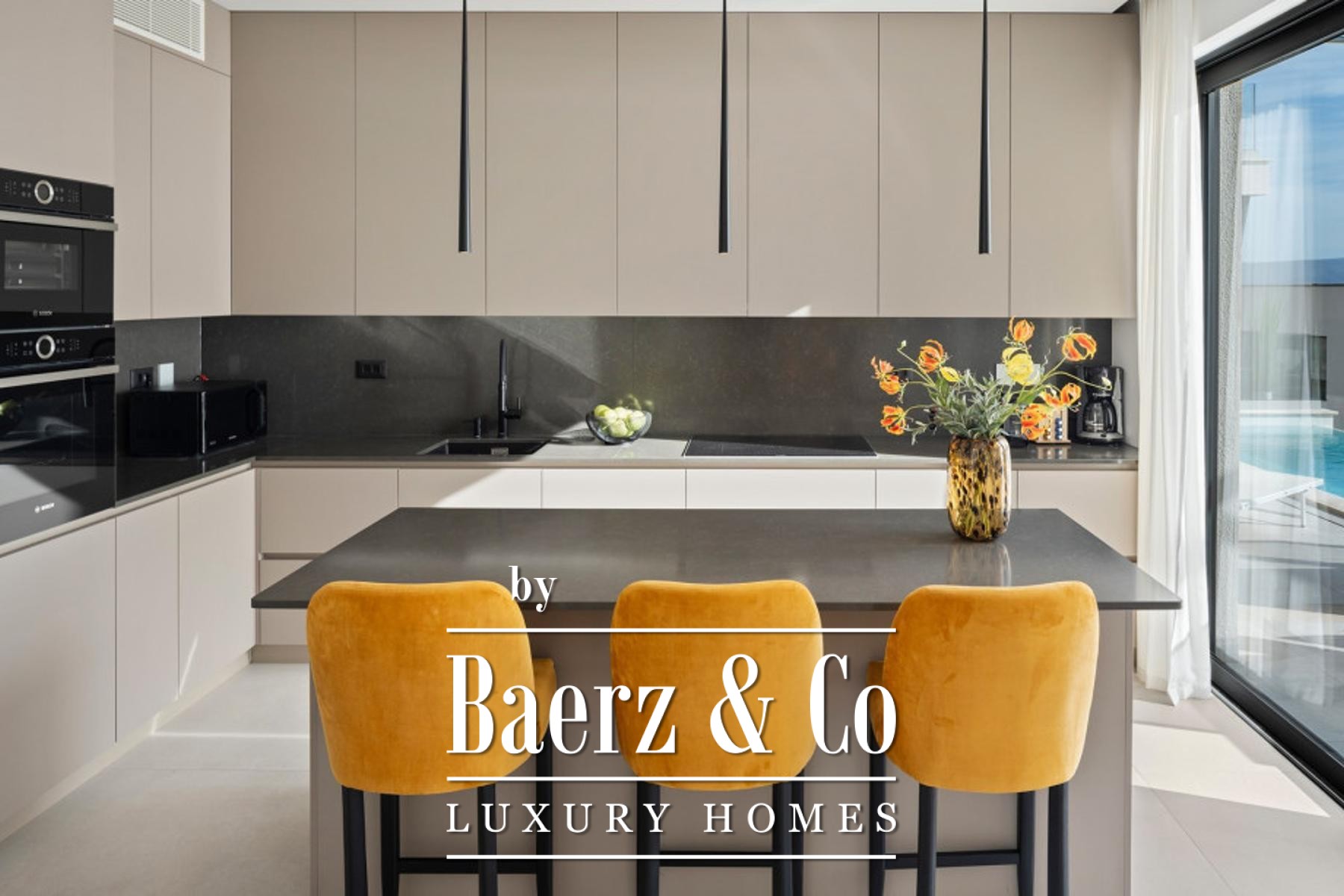 De villa beschikt over drie slaapkamers, twee badkamers en een extra gastentoilet. Alle ruimtes onderscheiden zich door strakke lijnen en een serene sfeer, versterkt door vloerverwarming en smart-home-technologie. Buiten bieden een privézwembad en zonneterras een discrete plek om te ontspannen, terwijl twee eigen parkeerplaatsen het dagelijks comfort verhogen.