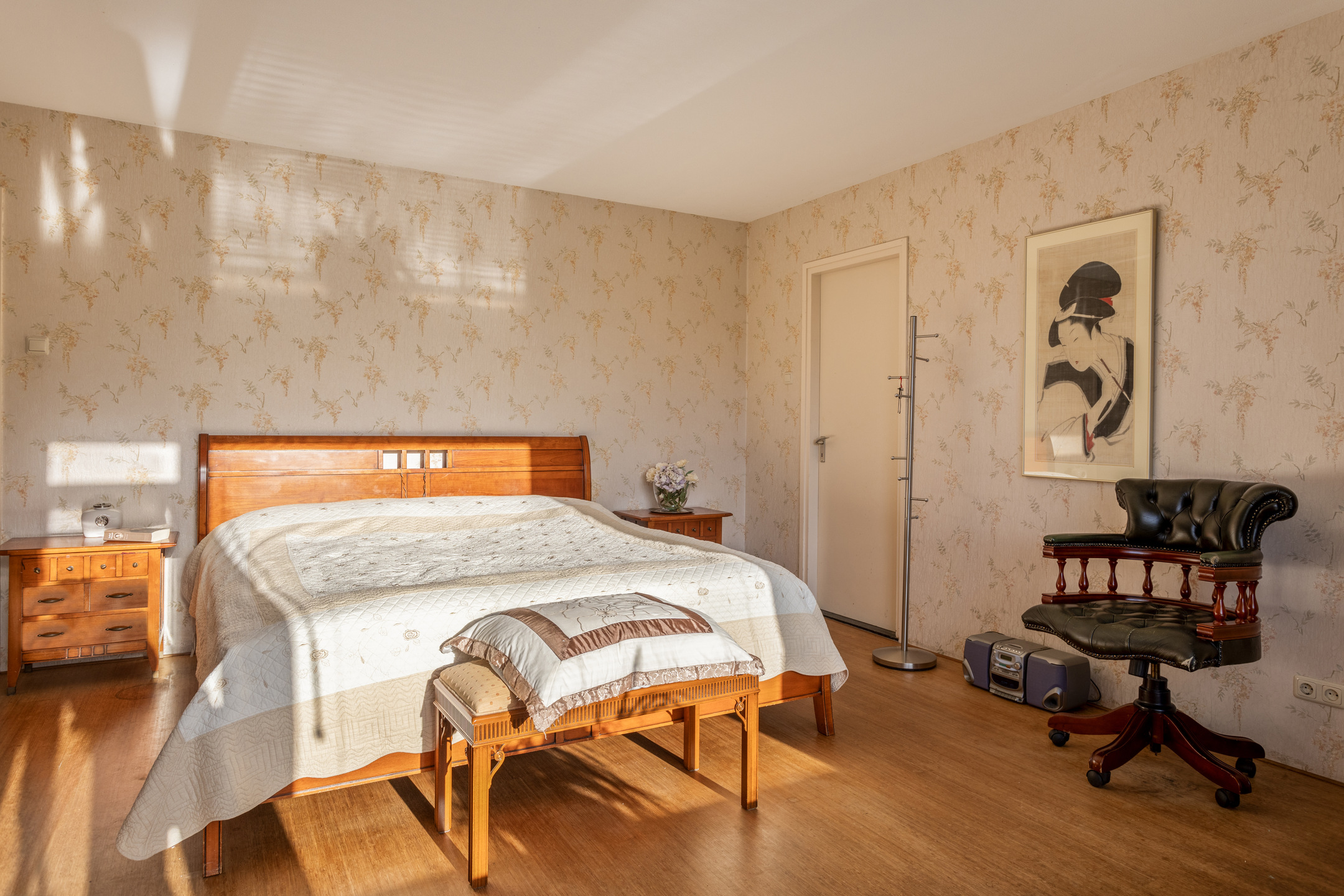 De in 2001 toegevoegde verdieping herbergt een grote slaapkamer, perfect als master suite of thuiskantoor. Twee ruime kapellen zorgen voor een aangename lichtinval. De verdieping beschikt verder over op maat gemaakte kasten en een bergkamer met dakkapel, met potentieel voor uitbreiding naar extra slaapkamers of een badkamer.