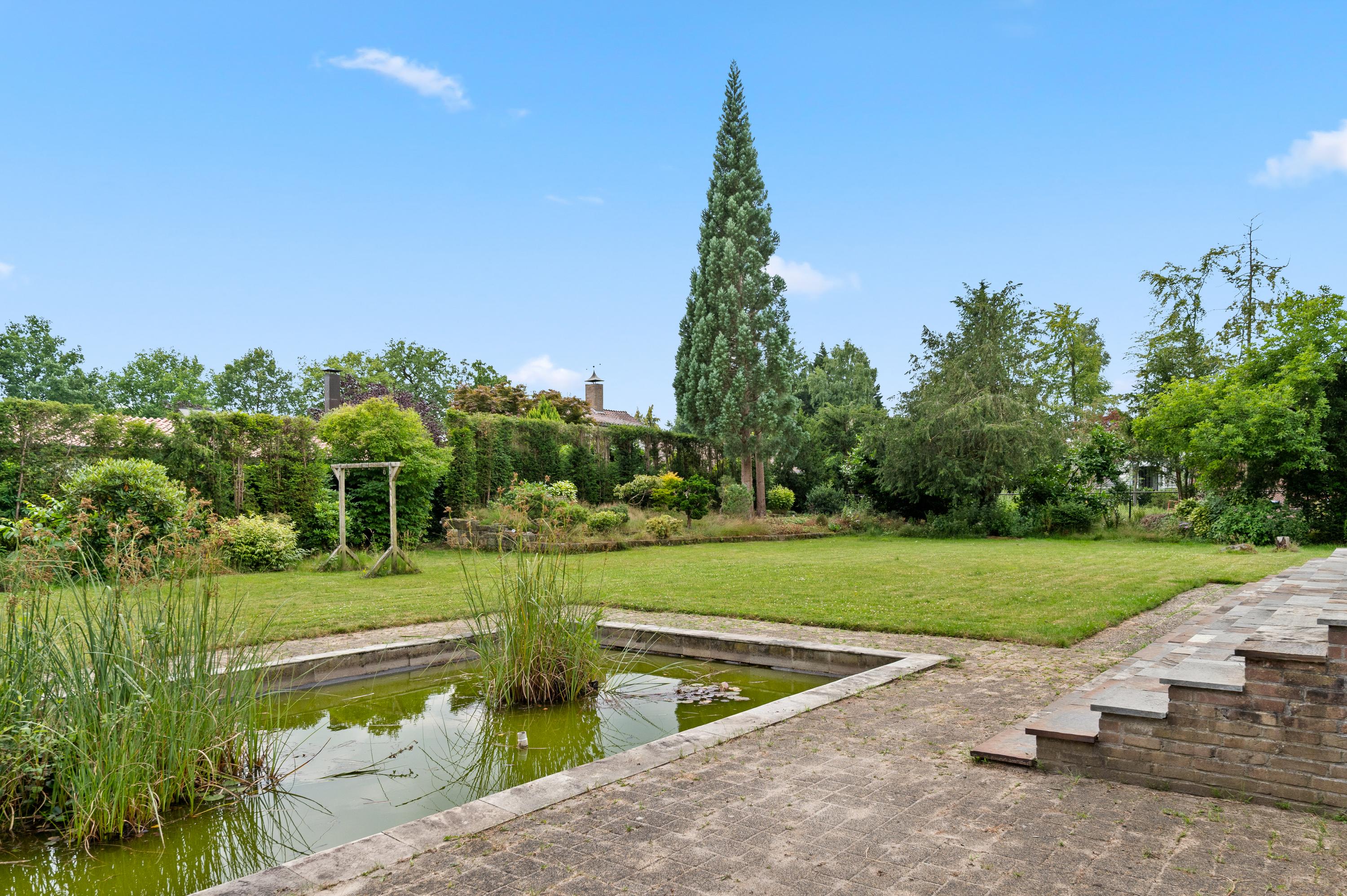 De villa ligt op een royaal perceel, aan de rand van de villawijk en buitengebied met veel privacy en geflankeerd door andere ruime kavels. Een stijlvol hek met elektrische sierpoort vormt de chique entree. De botanische tuin – ontworpen door Harry Menkenhorst – biedt elk seizoen een uniek decor met exotische planten, een vijverpartij en bronzen fontein. Er is ruimte voor een zwembad zonder concessies aan zicht of rust. Het overdekte terras maakt het buitenleven compleet.