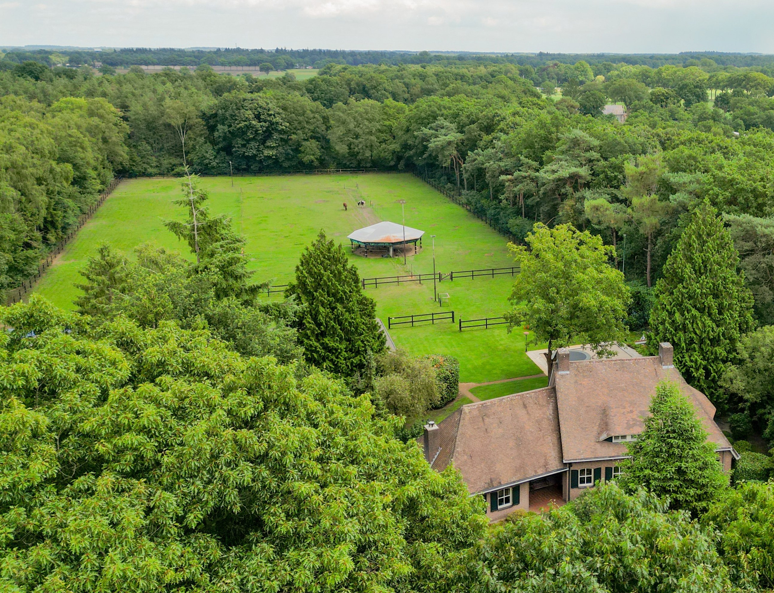 •	Privébos, volledig omheind weiland en veel bergruimte
