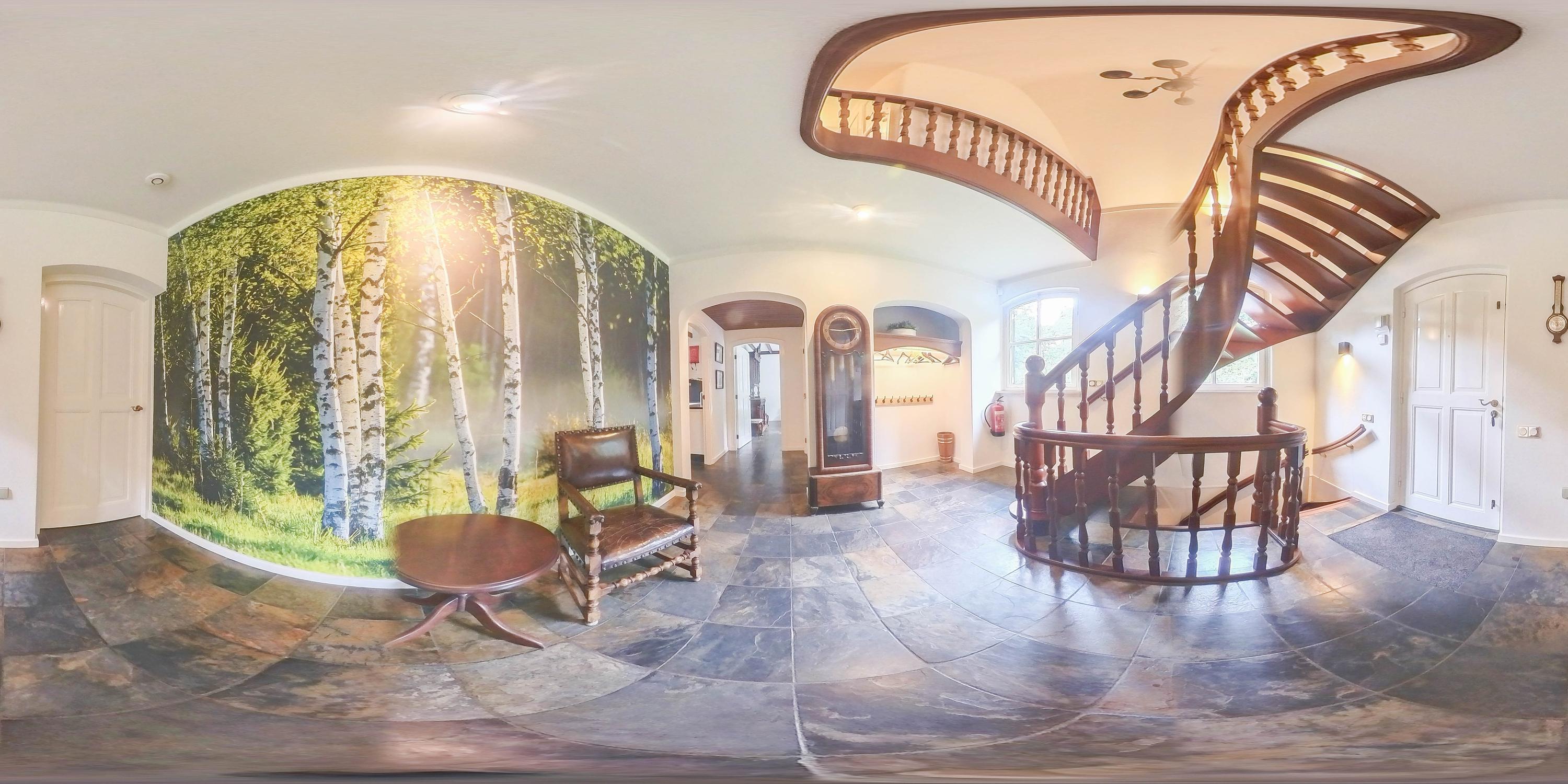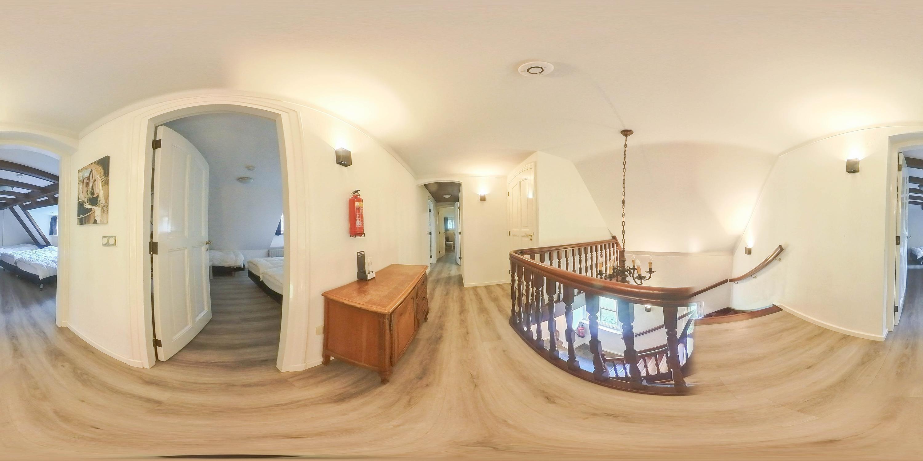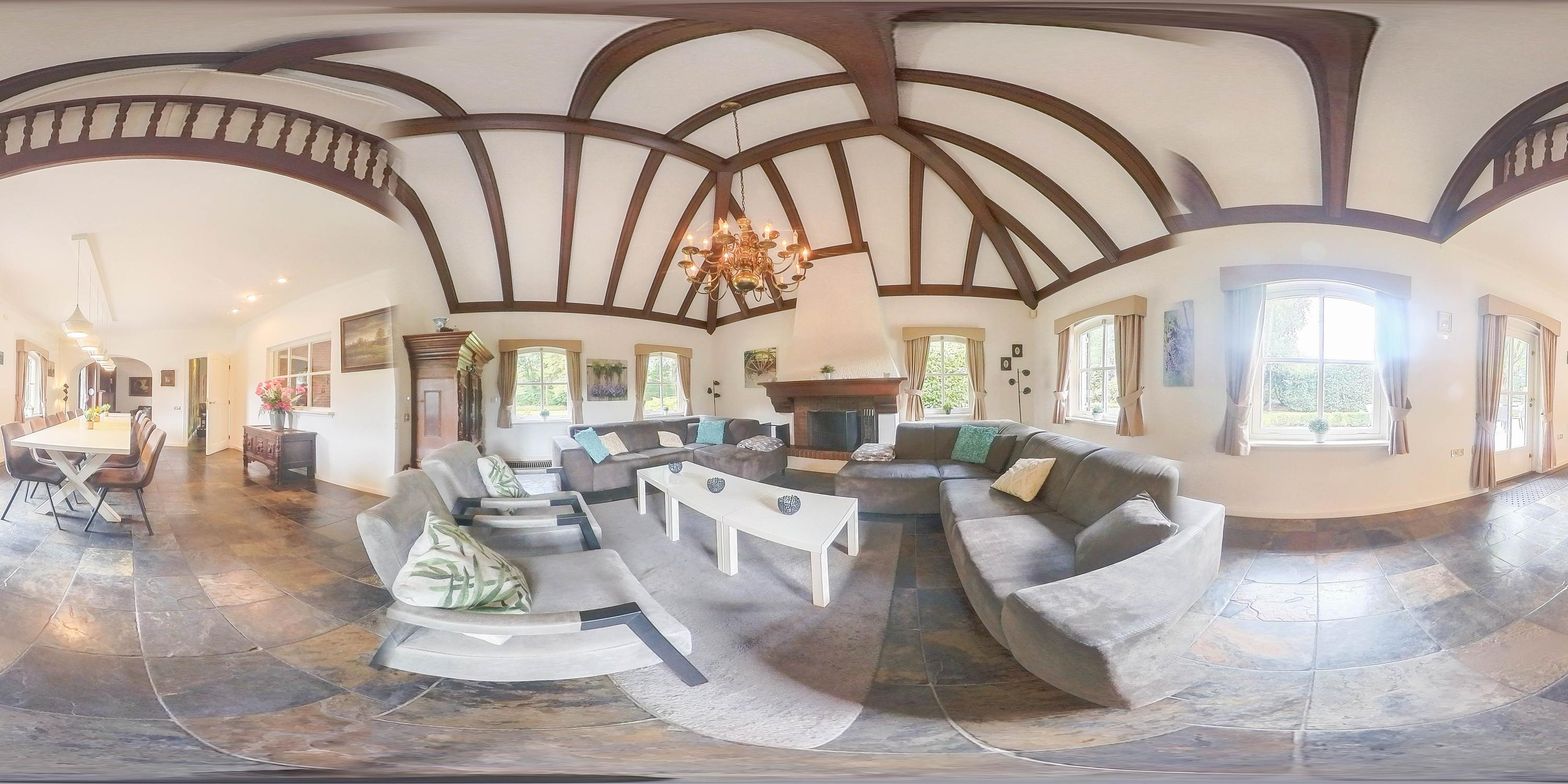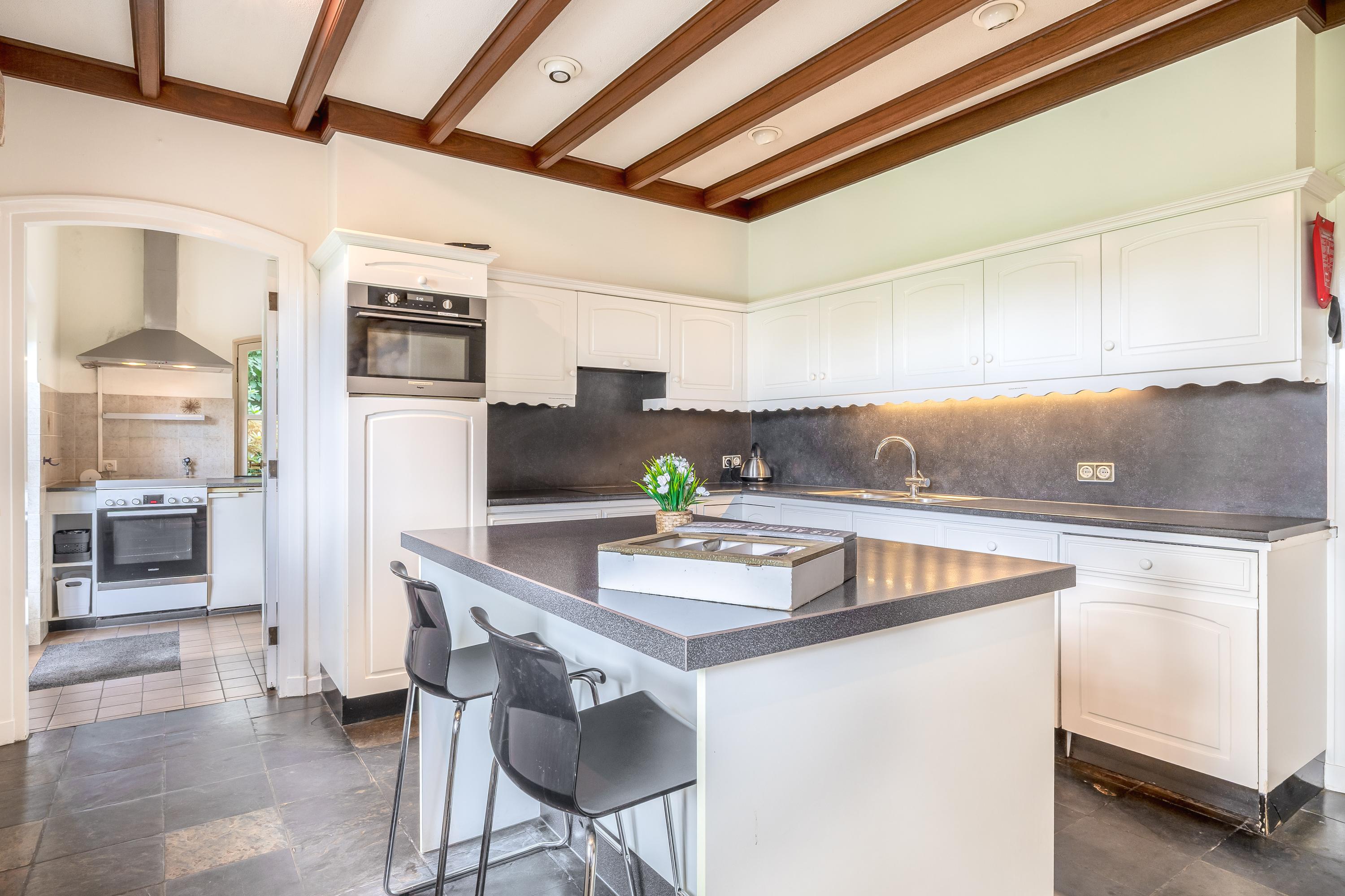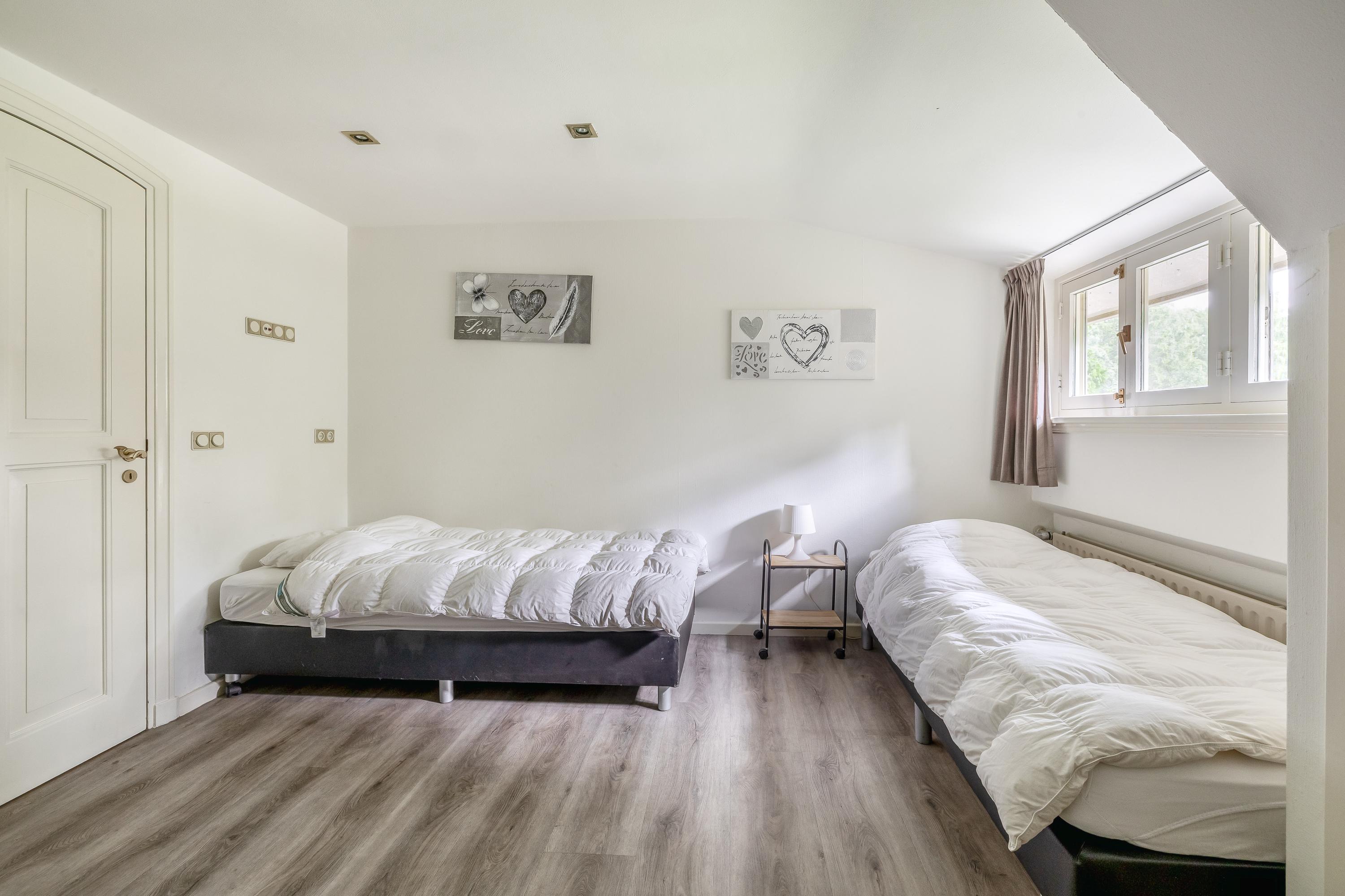 Het landhuis ademt sfeer en comfort. Op de begane grond treft u onder meer een indrukwekkende ontvangsthal met vide, een royale woonkamer met een zithoek met sfeervolle open haard, eetgedeelte en een aparte televisiekamer, een ruime leefkeuken, bijkeuken en een slaapkamer met en-suite badkamer. De authentieke details zoals houten balkenplafonds en natuurstenen vloeren versterken het landelijke karakter. Op de eerste verdieping bevinden zich vier grote slaapkamers, waarvan één met en-suite badkamer, een tweede badkamer en een separaat toilet. Alle kamers zijn voorzien van daglicht, wastafels en twee slaapkamers hebben vaste opbergkasten – ideaal voor gastenverblijf of gezinsbewoning. In het souterrain vindt u nog meer ruimte: een extra slaapkamer, een recreatie-/feest-/hobbyruimte met bar, badkamer, berging, CV-ruimte en aparte ingang naar buiten. Dit maakt het souterrain uitermate geschikt als gastenverblijf of praktijkruimte.