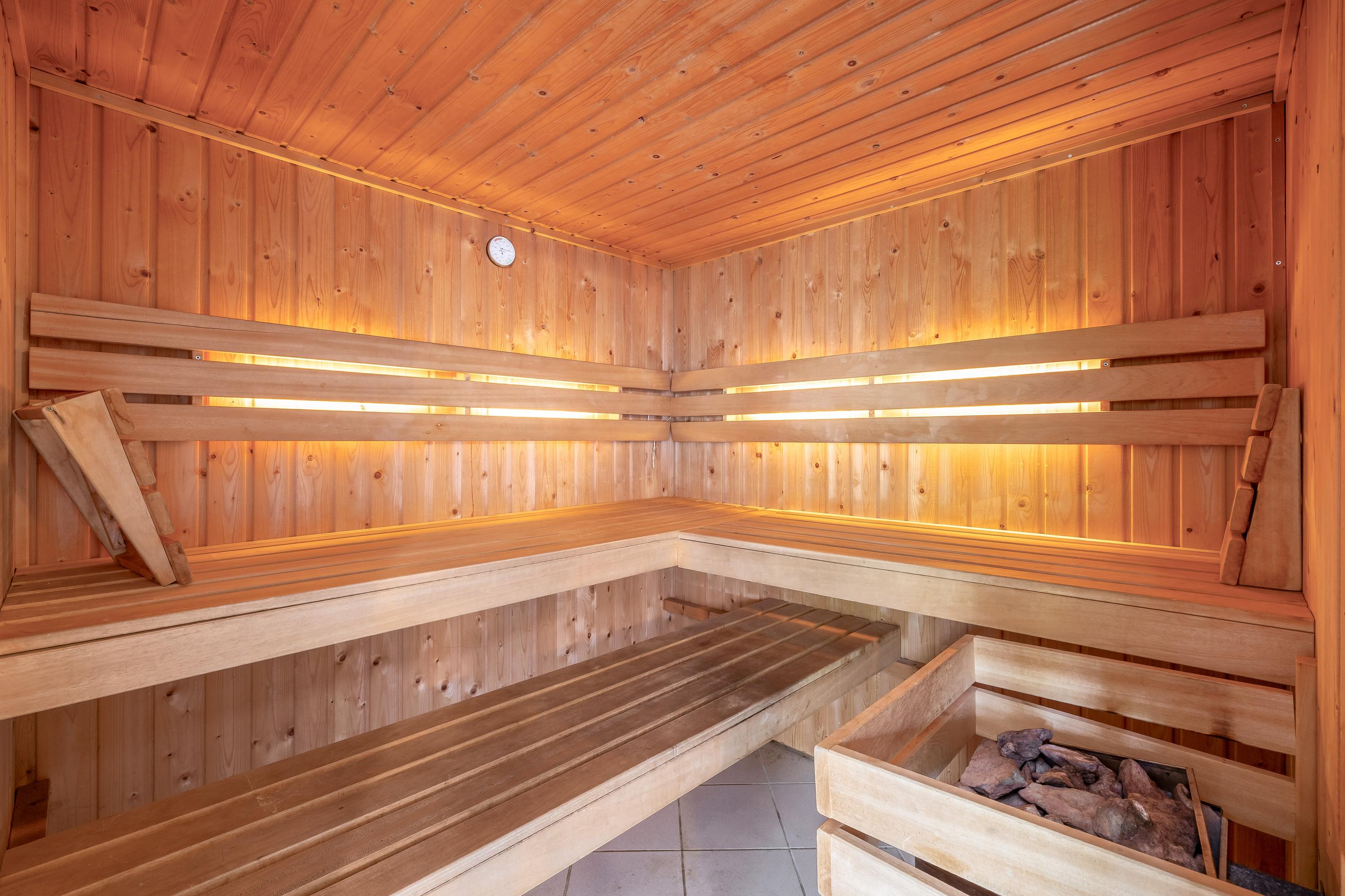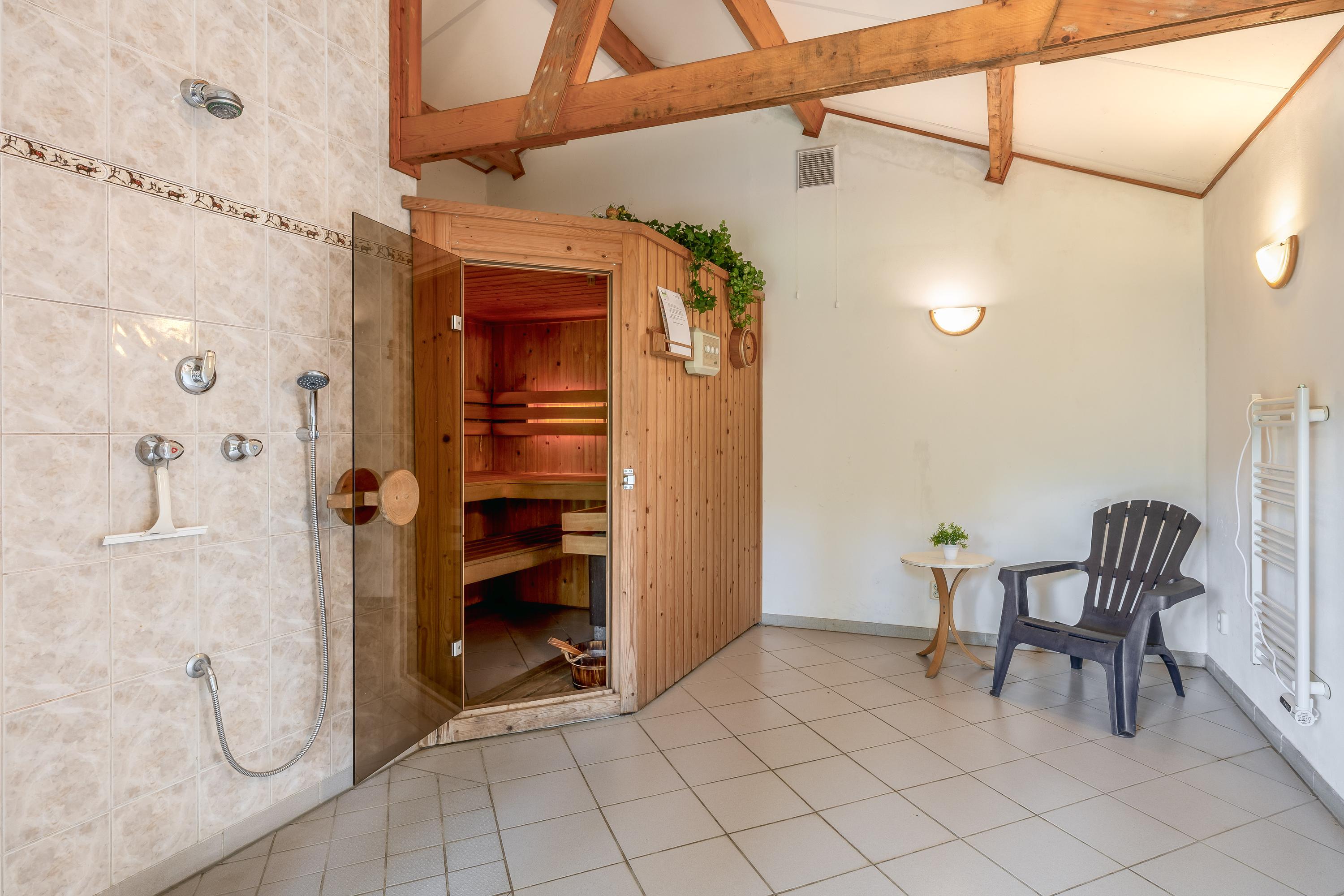 •	Wellness ruimte met sauna, relaxruimte en badkamer