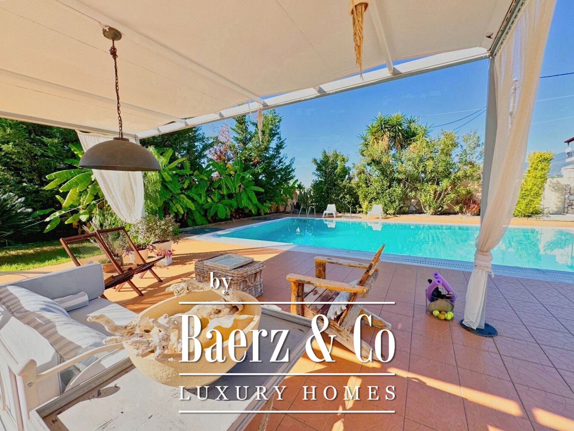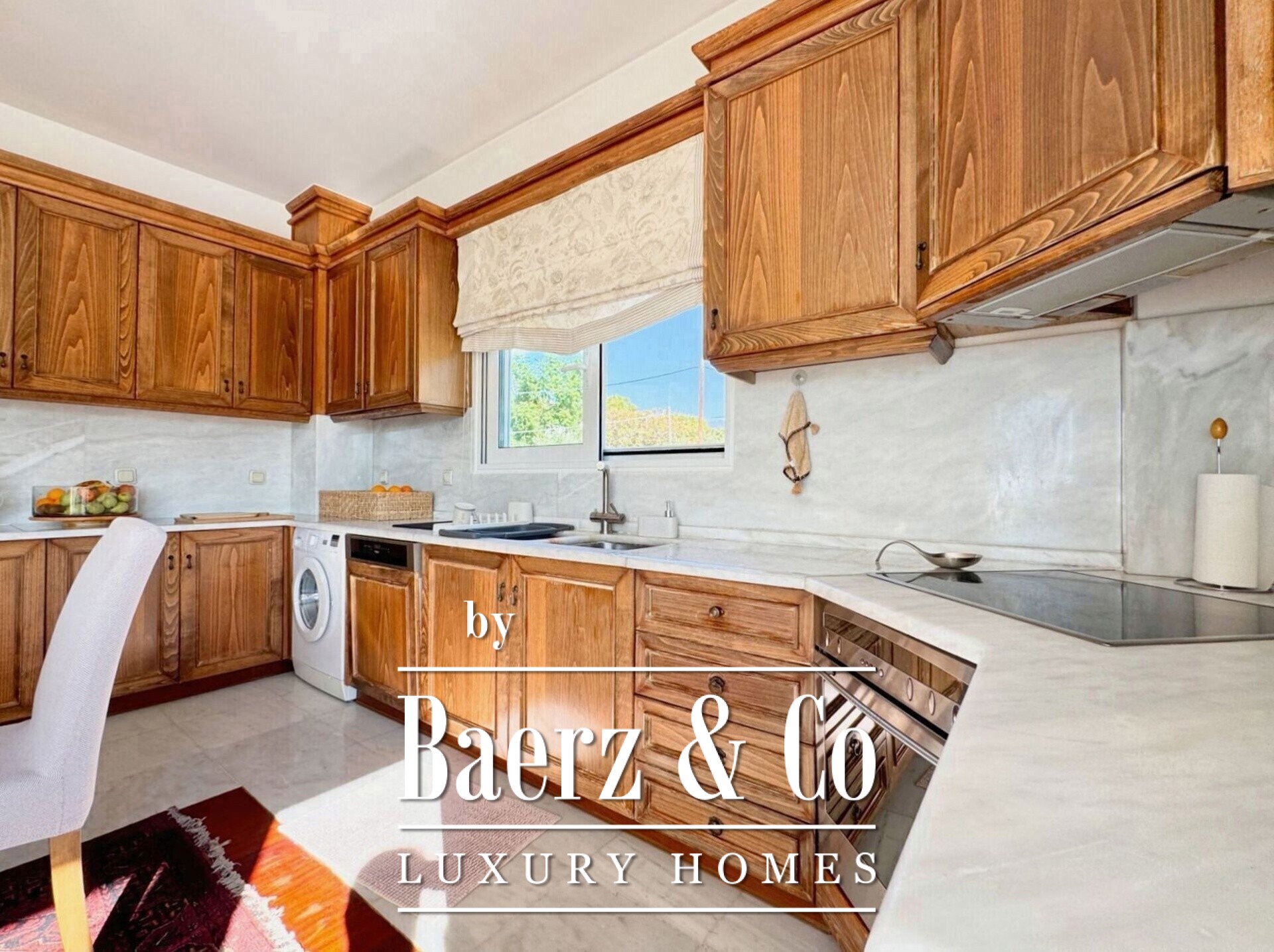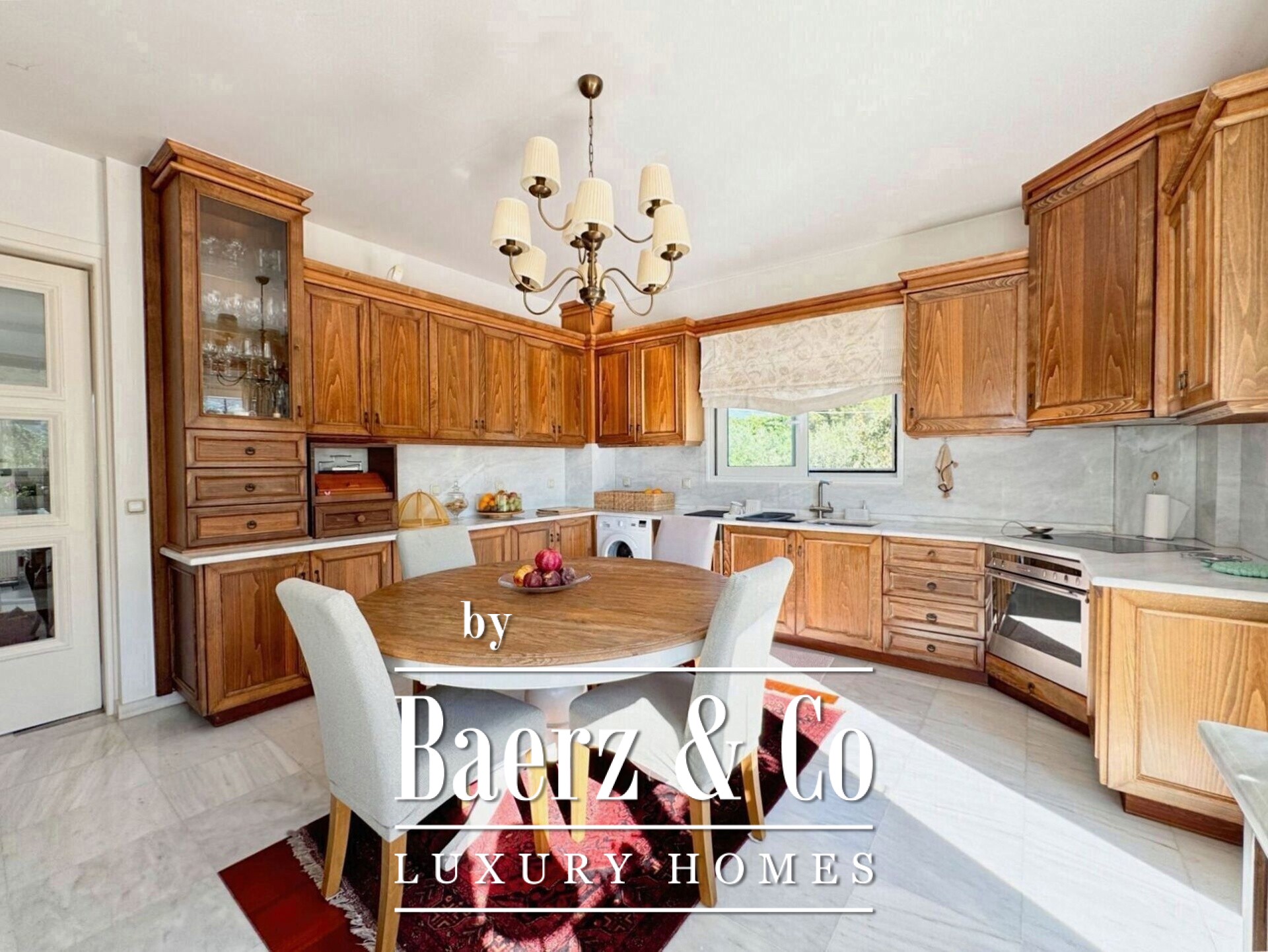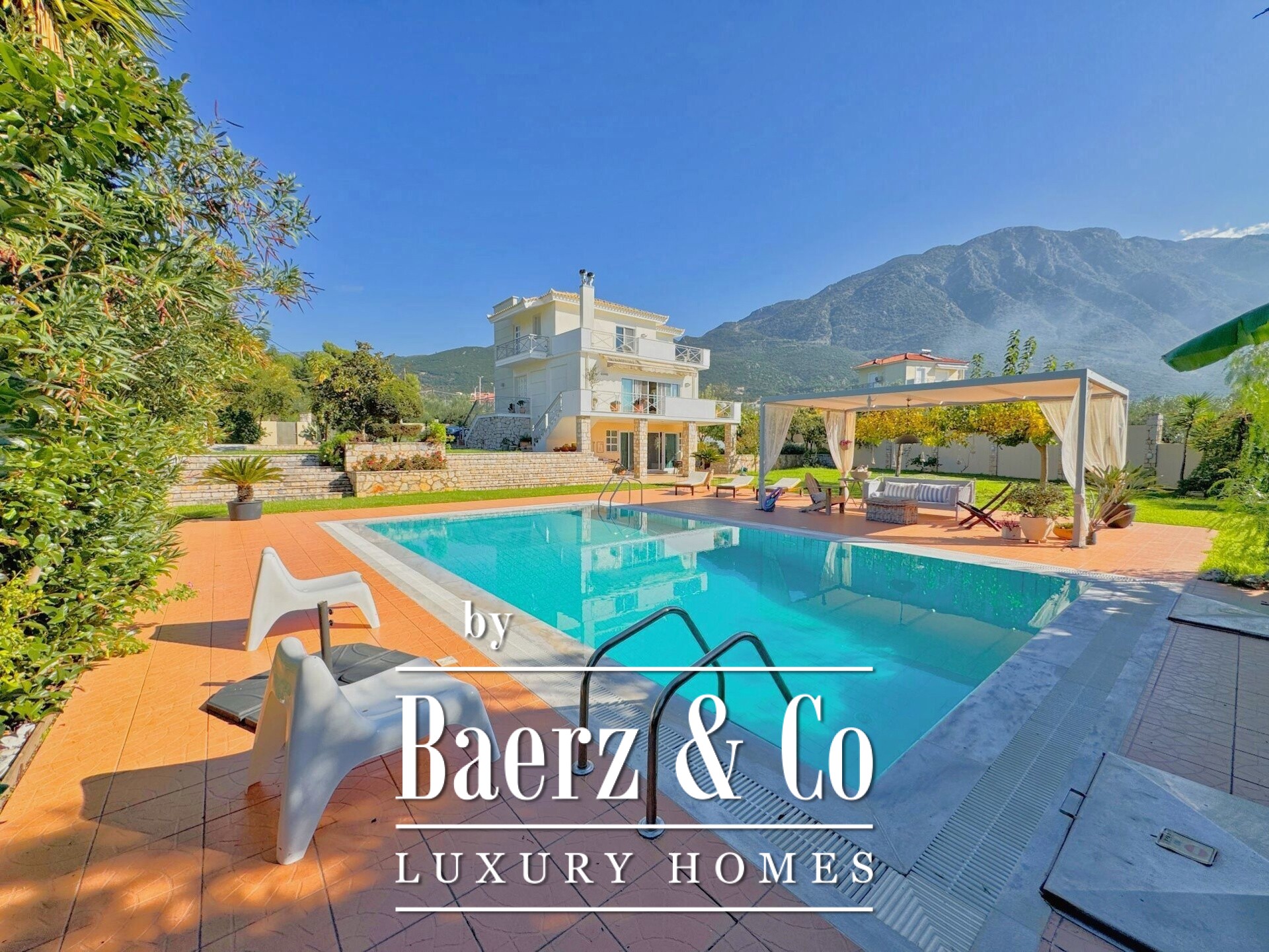 Vrijstaande woning in Kalamata biedt een indrukwekkend gevoel van ruimte en privacy over 370 m² en vier woonlagen. Het perceel van 2.000 m² voorziet in een perfecte balans tussen verfijnd comfort en een adembenemend panoramisch uitzicht op zee en bergen. Buiten nodigen het zwembad, de pergola en de compleet ingerichte barbecuezone uit tot ontspannen middagen of levendige bijeenkomsten, omgeven door weelderige tuinen en volwassen bomen. Er is voldoende parkeergelegenheid en een afgesloten garage, wat comfort en veiligheid waarborgt.