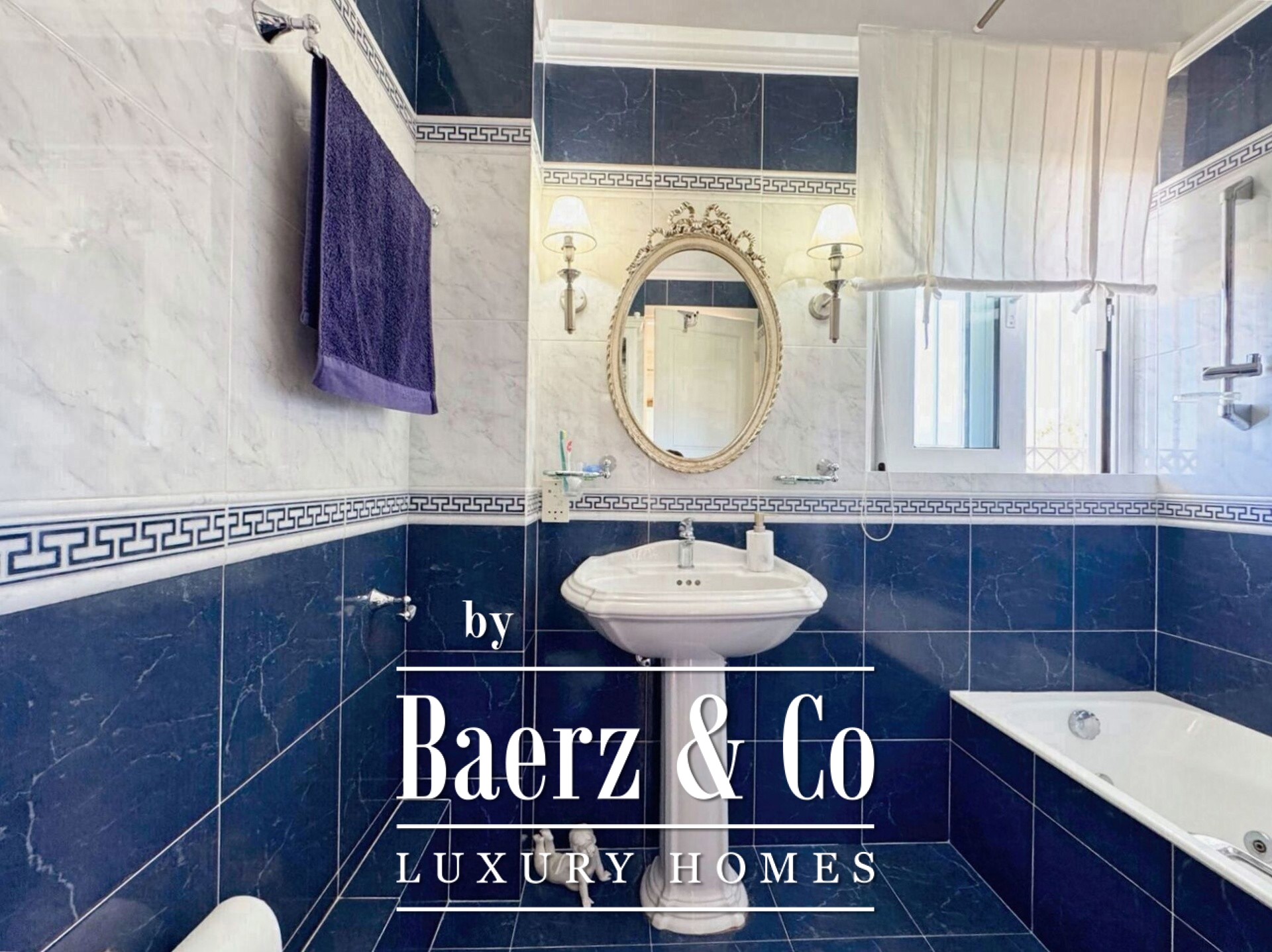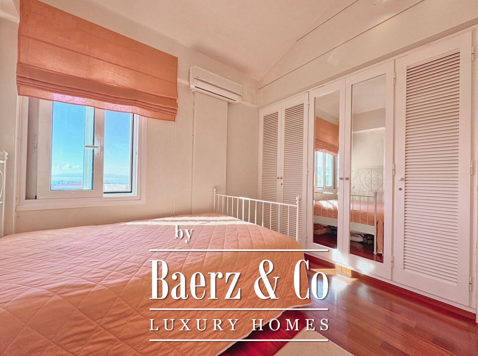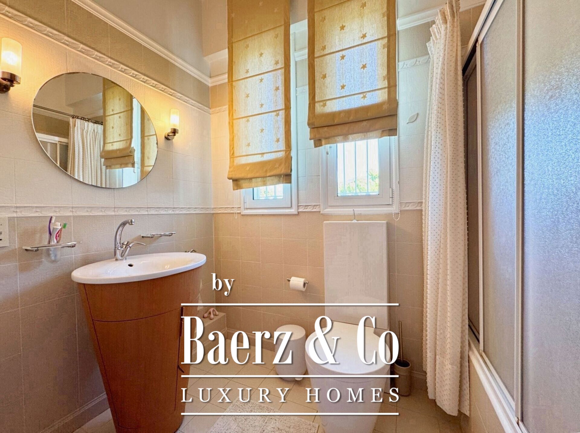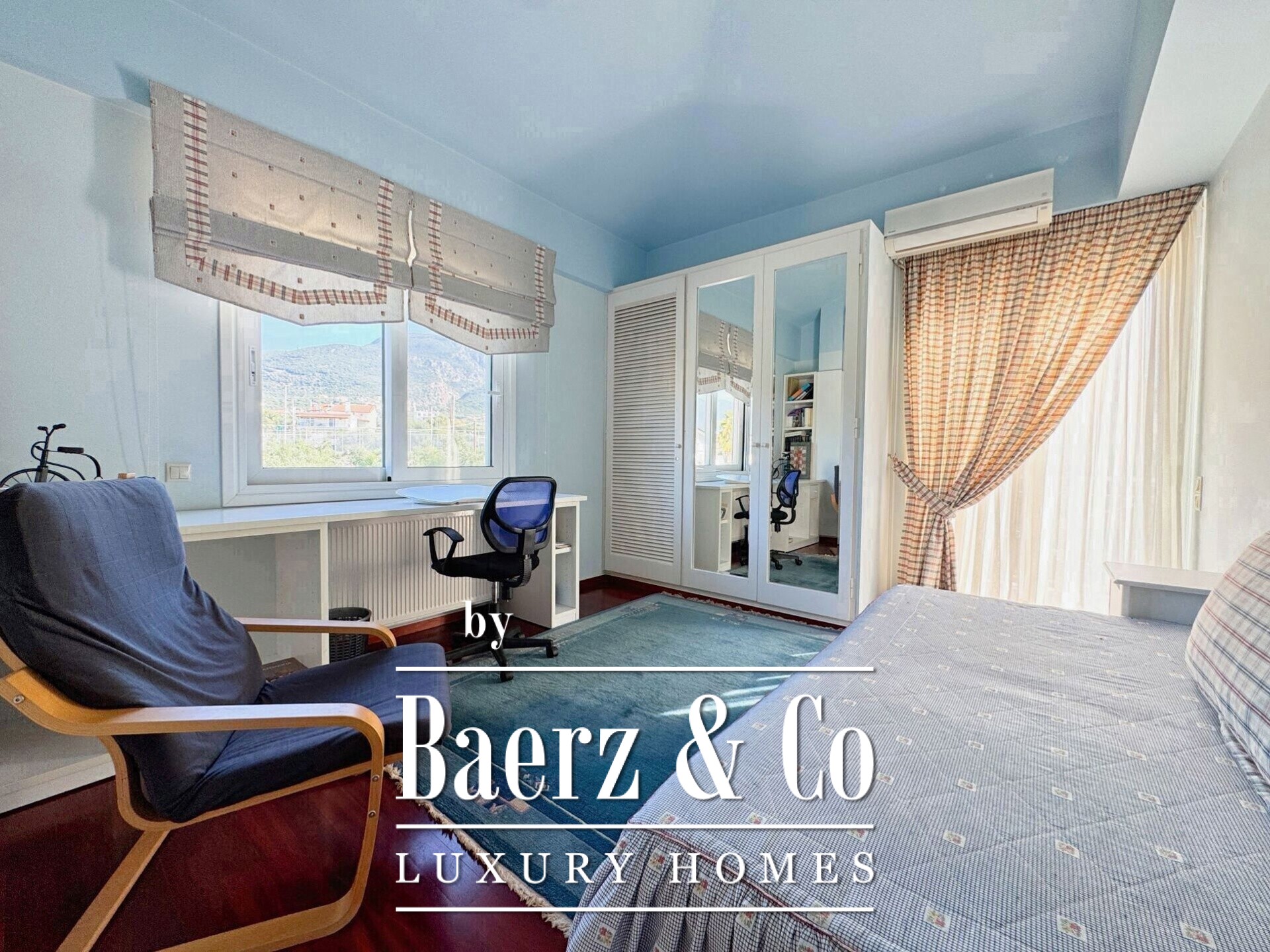 Binnen verwelkomt de woon- en eetkamer met de warmte van een traditionele open haard en grote veranda’s die een onbelemmerd uitzicht bieden op de baai van Messinia. De aparte keuken is ontworpen voor optimaal gebruiksgemak en functionaliteit, terwijl de hoofdverdieping een badkamer en aparte gastentoilet biedt. Op de bovenverdieping zijn drie lichte slaapkamers en twee badkamers aanwezig; de master bedroom geeft toegang tot een privéterras met berg- en zeezicht.