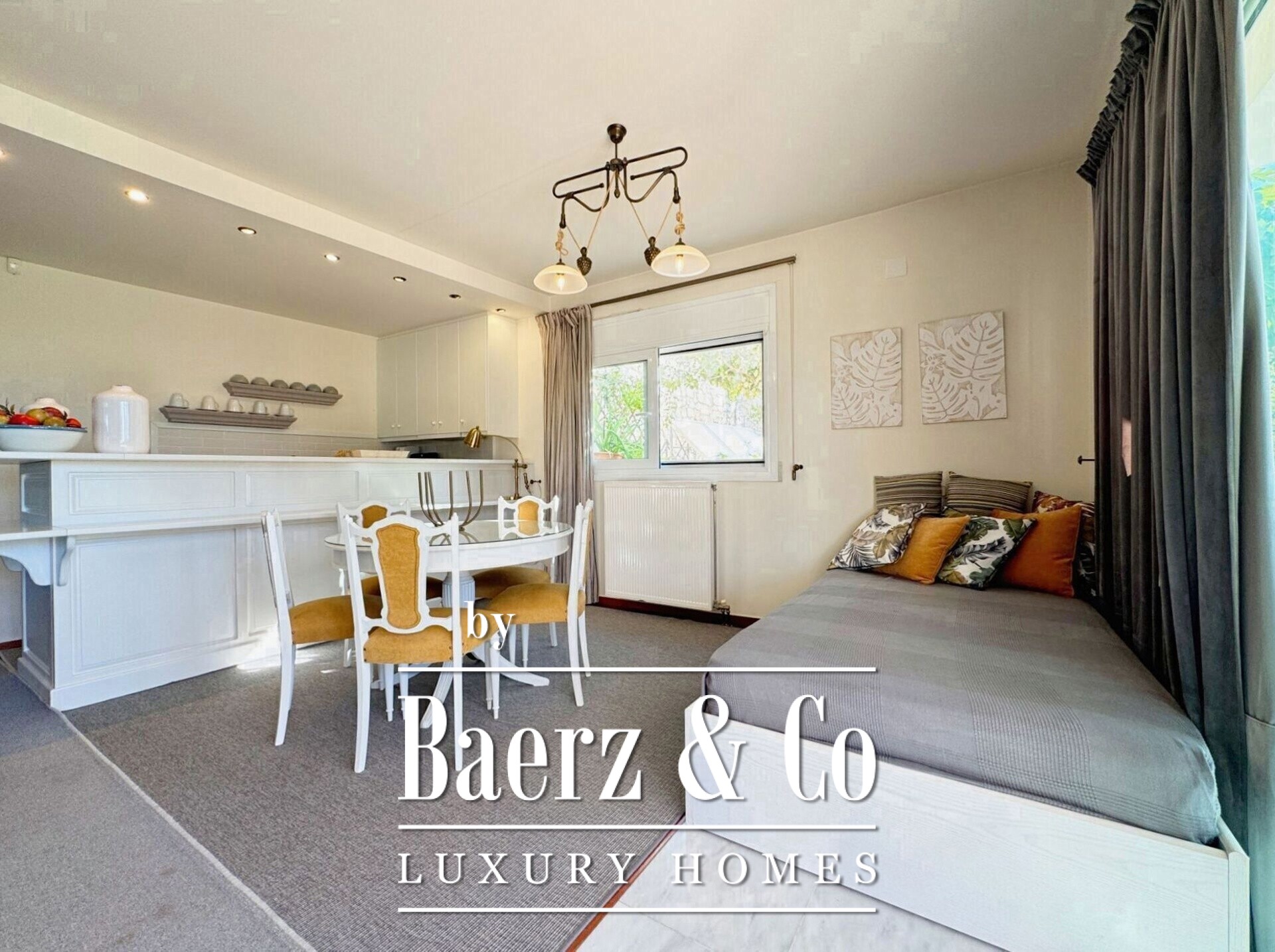 Op de begane grond bevindt zich een volledig zelfstandige woonruimte met lounge, badkamer, slaapkamer en een compleet uitgeruste keuken met bar, wat de veelzijdigheid van de woning vergroot. De kelder omvat een multifunctionele ruimte met sportapparatuur en opslag, voorzien in alle praktische behoeften, en is afgewerkt met dubbele beglazing, verwarming op olie en airconditioning, en energielabel C. Dankzij zelfstandigheid, hoogwaardige materialen, een rustige ligging en de mogelijkheid tot gemeubileerde aankoop, biedt deze vrijstaande woning in Kalamata een harmonieuze setting nabij stad en zee, met tevens potentieel voor een aantrekkelijk verhuurrendement.