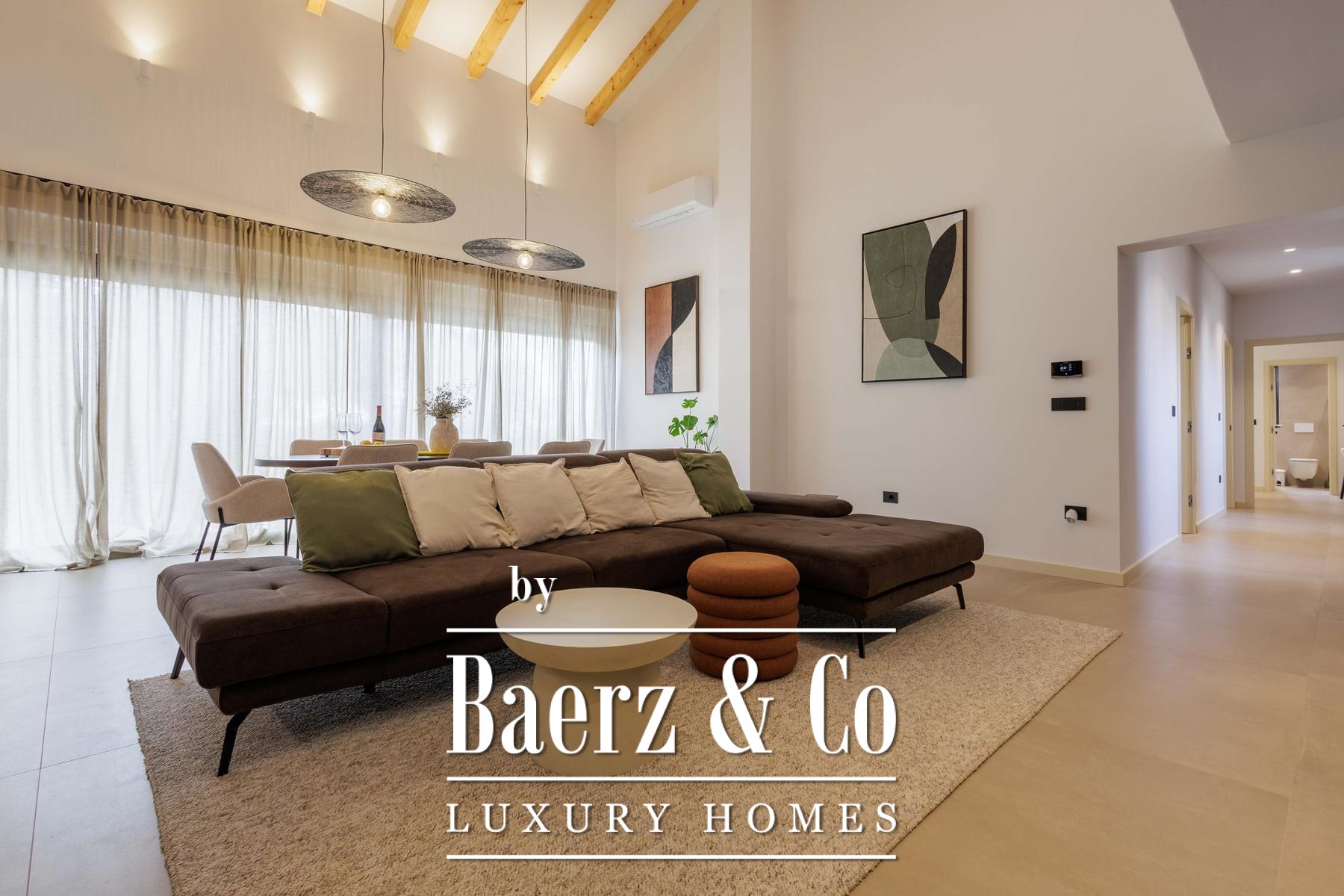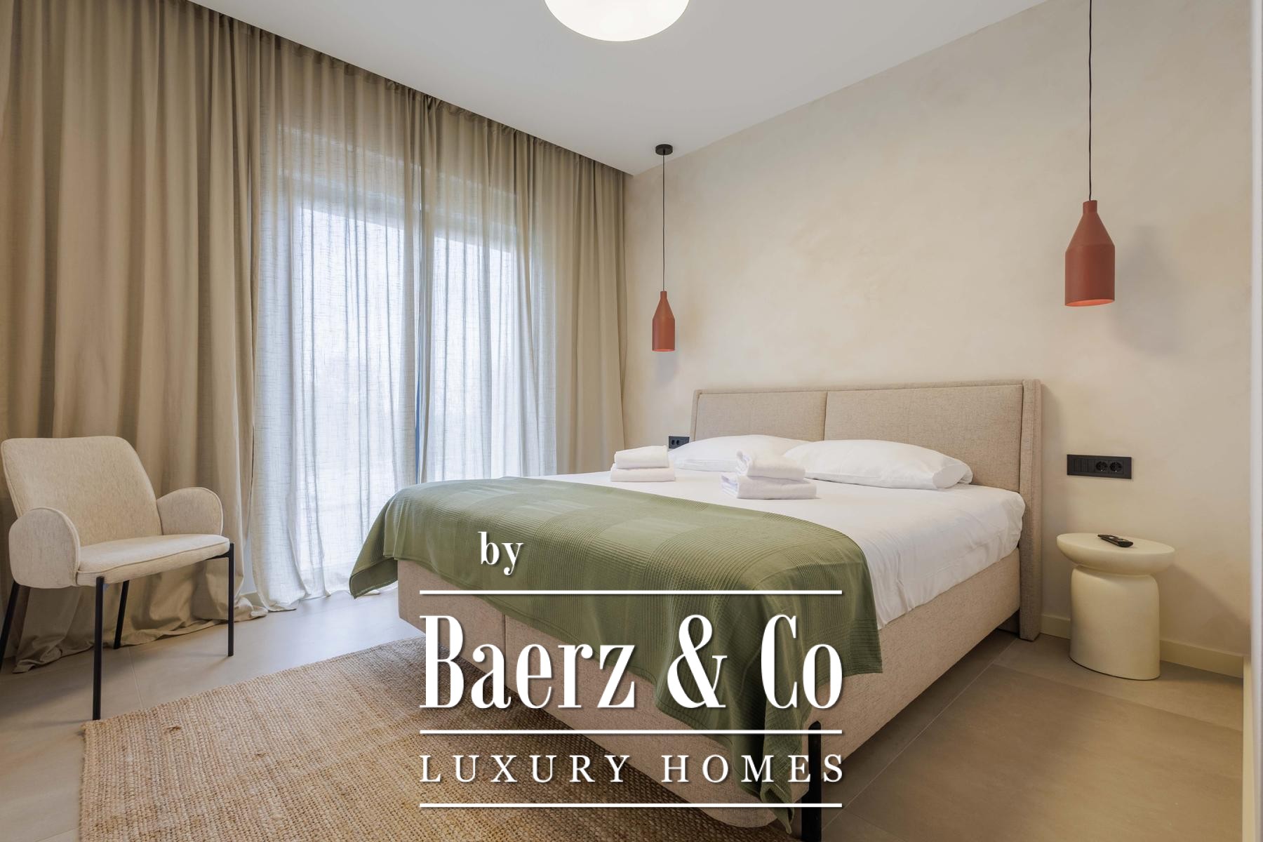 Deze villa, gebouwd volgens hoge standaarden en met een laag energieverbruik, is voorzien van vloerverwarming op basis van een warmtepomp en doorlopende airconditioning. Ook buiten zet het praktische ontwerp zich voort, want de vloerverwarming loopt door tot in de buitenkeuken. De indeling bevat verder twee aparte gastentoiletten voor extra gemak. Het perceel van 1.000 m² biedt optimale privacy dankzij een weelderig gazon, zes olijfbomen en een geautomatiseerd irrigatiesysteem voor eenvoudig onderhoud.