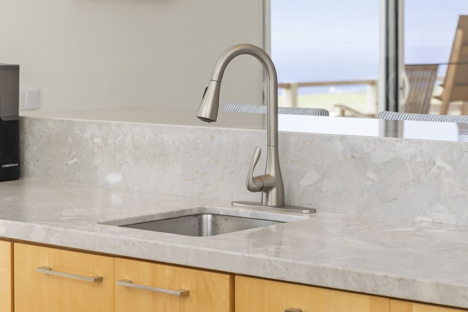 Natuurlijk licht speelt een centrale rol in Villa Crown West 239. Grote glazen schuifdeuren en ramen laten het zonlicht overvloedig binnen en omlijsten het panoramische uitzicht, waardoor de grens tussen binnen en buiten vervaagt.