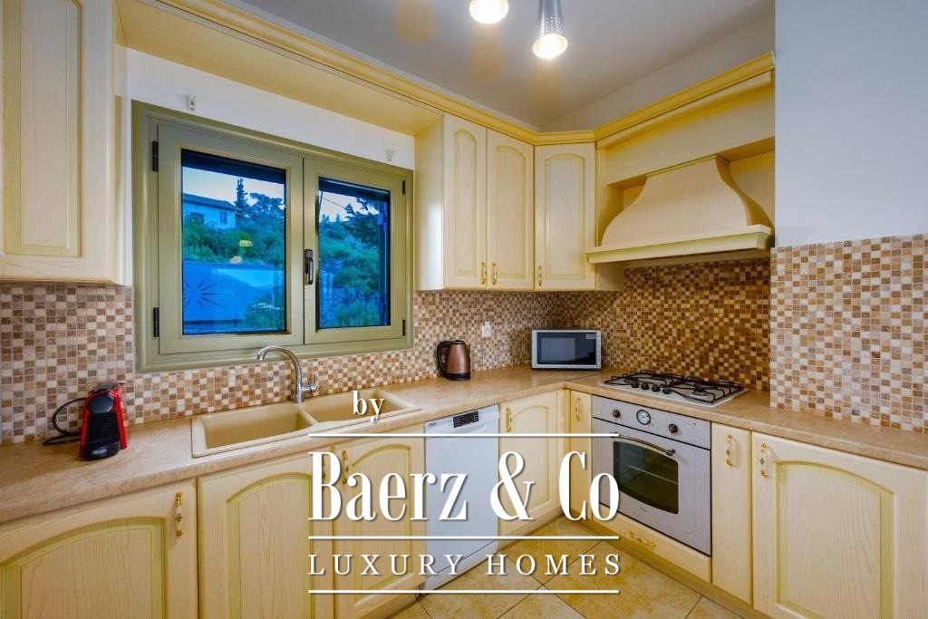 Buiten bieden het infinity zwembad, de barbecue, aromatische tuinen en diverse eet- en loungeplekken een setting om te genieten. Kenmerken zijn onder meer autonome verwarming met fan coil, airconditioning, een zonneboiler, dubbele beglazing in aluminium kozijnen en privéparkeerplaatsen voor twee auto's. Deze villa nodigt uit tot een leven van discrete verfijning, dicht bij het zeldzame natuurlijke erfgoed van Lefkada.