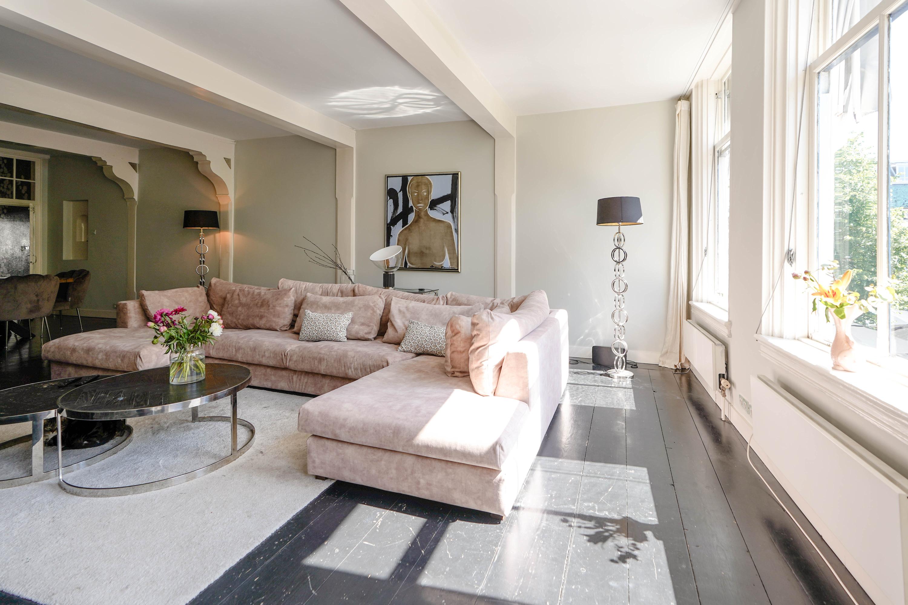 Het voorhuis is het oorspronkelijke hoofdhuis. Op de begane grond is een winkel gevestigd (kan in verhuurde staat worden gekocht) en hier vindt je nu op de 1e etage de woonkamer van maar liefst 70 m² van waar je uitkijkt over de Rijn en het Stadhuisplein. Aan de achterzijde ligt de woonkeuken met ruimte. Veel ruimte. Met 50 m², lange werkbladen en een eettafel met plek voor 12 is dit nu het hart van het huis. Vanuit hier is ook een van de doorgangen naar het achterhuis langs de binnenplaats wat voor veel lichtinval zorgt. Een etage hoger zijn de slaapverdiepingen. Hier is de woning afgepeld tot de structuur met de prachtige houten sporenkap vol in het zicht. Tussen de sporen zijn hoge Velux ramen aangebracht die zorgen voor een fraaie lichtinval op elk moment van de dag. Aan voorzijde vindt je verdeeld over twee verdiepingen drie slaapkamers, een badkamer en vooral veel bergruimte met inbouwkasten en een linnenkamer. Aan achterzijde beslaat de master bedroom met badkamer ensuite de gehele kap met een nok van maar liefst 8 meter hoog.