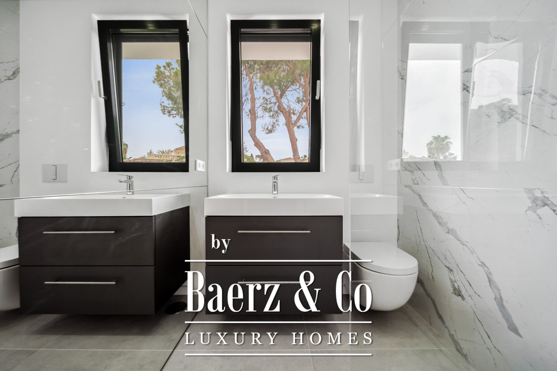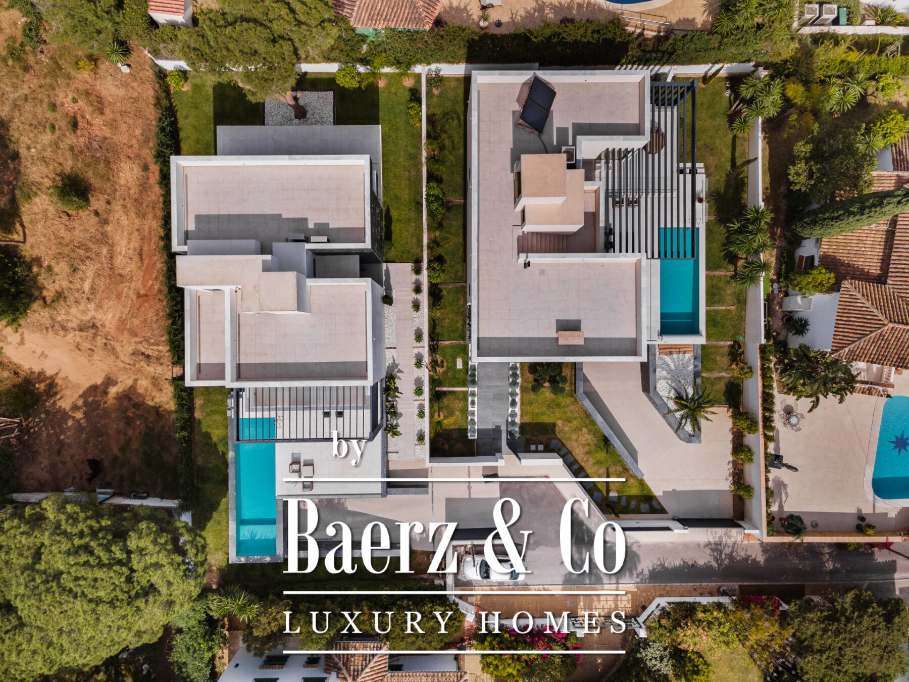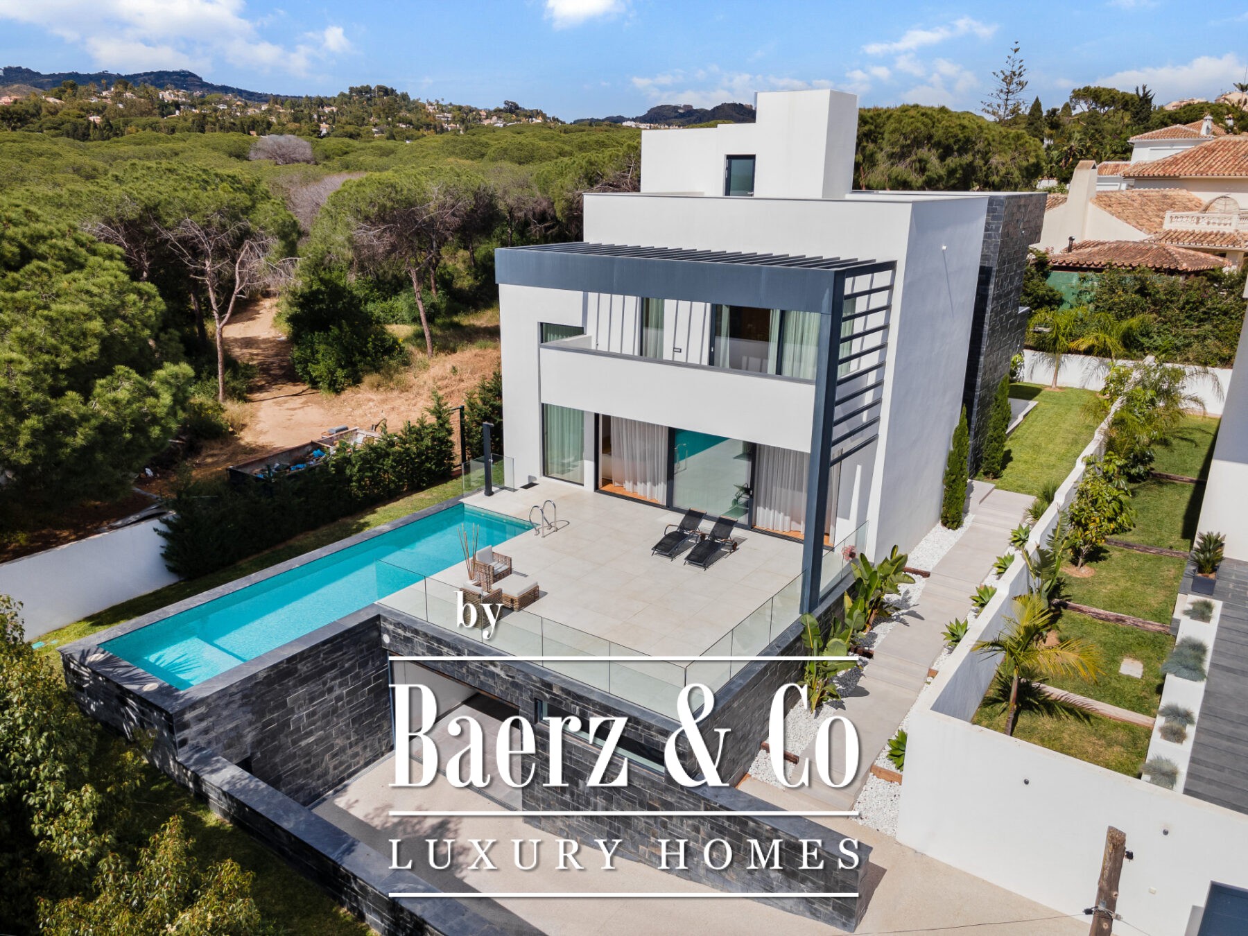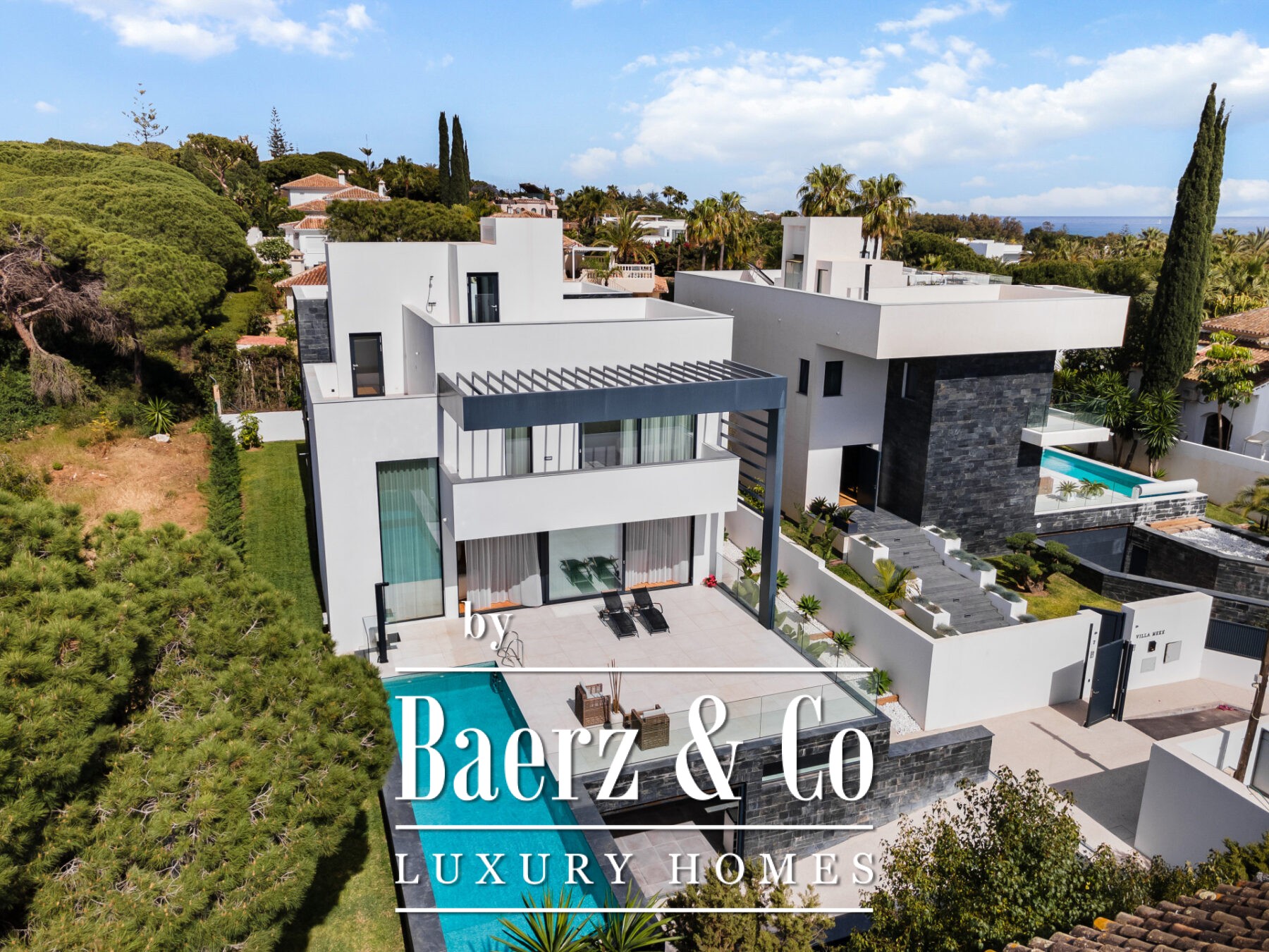 Moderne villa Marbella belichaamt verfijnd wonen aan de kust in Marbesa, verscholen in een rustige doodlopende straat op slechts enkele momenten van de Middellandse Zee. De villa meet 479 m² over drie verdiepingen en kenmerkt zich door strakke architectonische lijnen, eikenhouten vloeren en ramen van vloer tot plafond die natuurlijk licht in elke hoek brengen. Zes slaapkamers en zes badkamers zijn met subtiele elegantie en privacy geordend; iedere ruimte is zorgvuldig afgestemd op comfort het hele jaar door.