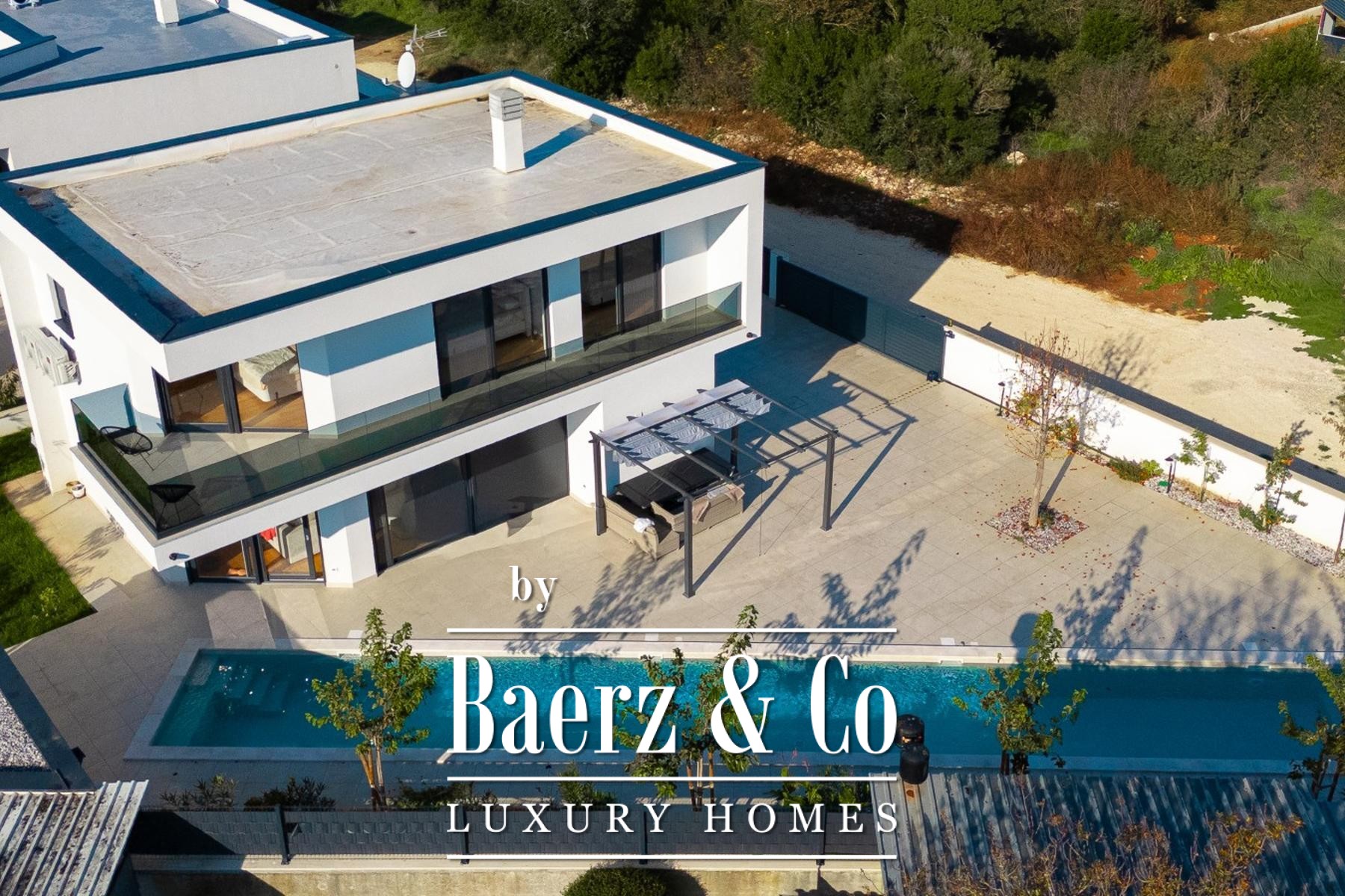 Buiten nodigen een pergola van 4 bij 4 meter, zomerkeuken, barbecue en camerabewaking uit tot ontspannen samenzijn, terwijl slimme systemen en parkeerplaatsen voor drie à vier auto's extra comfort en veiligheid bieden. Moderne villa Medulin is een uitzonderlijk aanbod voor wie op zoek is naar een luxueuze woonplaats of investering in een rustige kustomgeving.