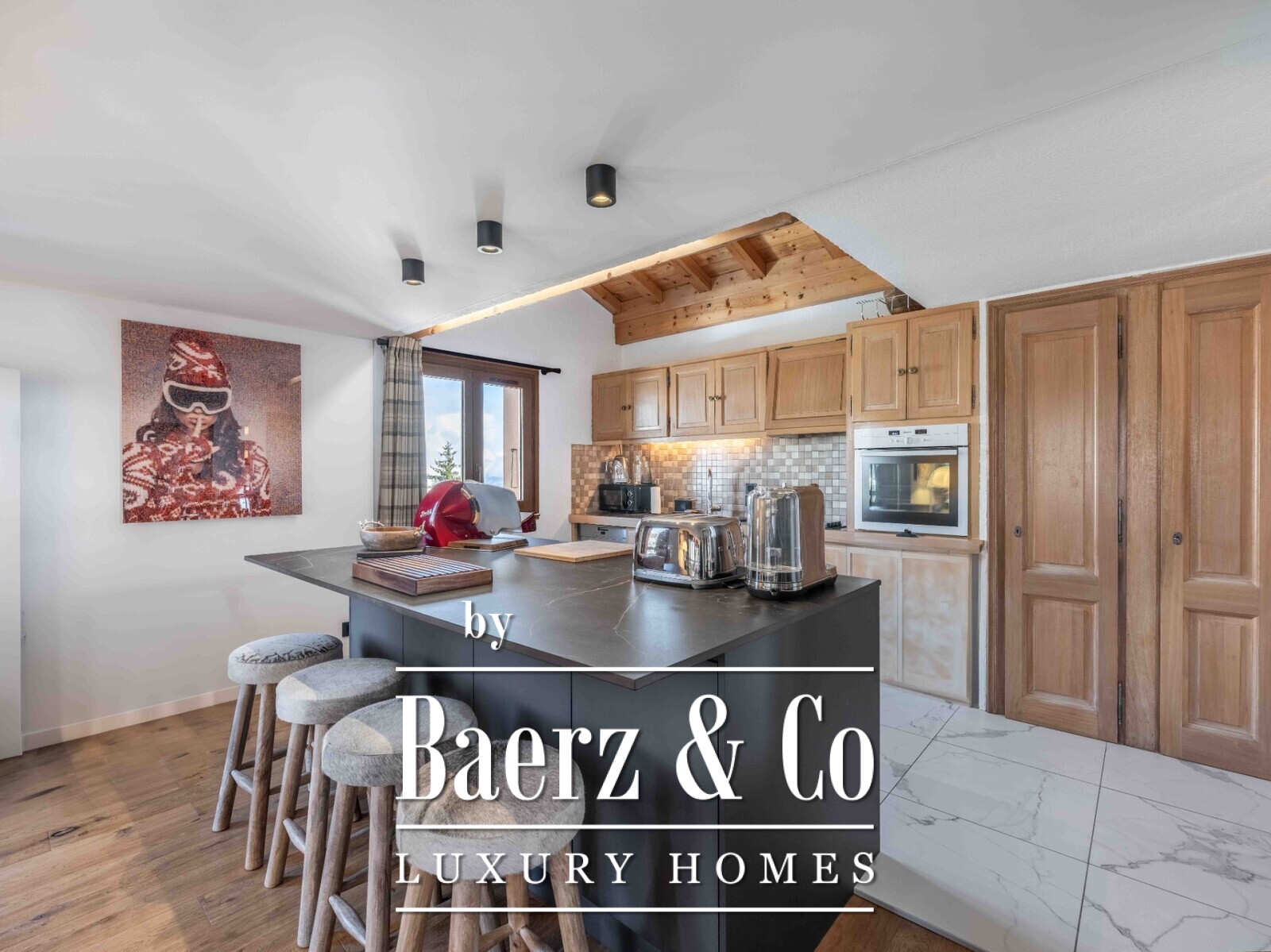 It features 4 bedrooms, a spacious living room with fireplace and a fully-equipped open kitchen with south/west-facing balcony.