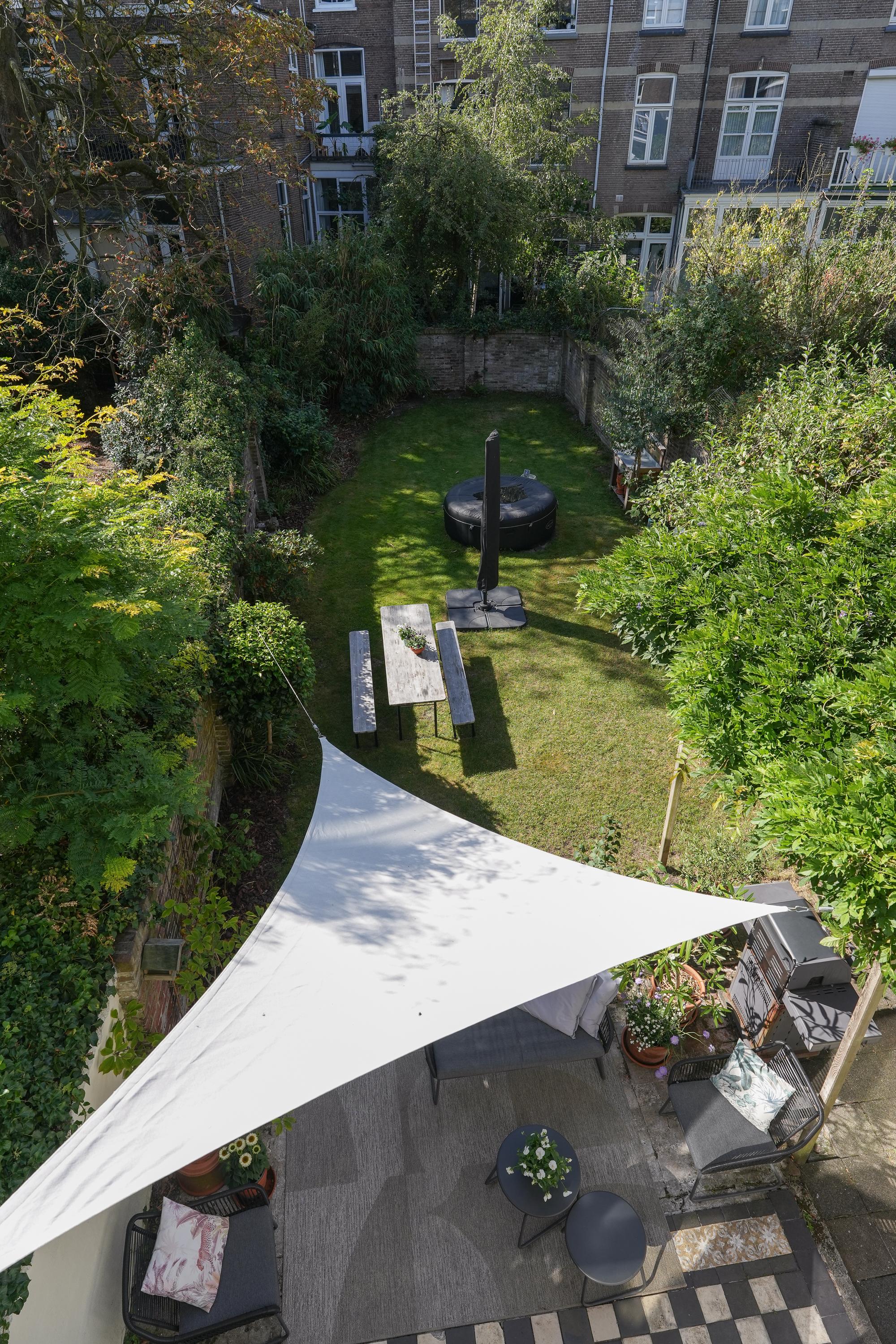 De woning beschikt over een ruime voortuin en een verrassend ruime achtertuin, rustig en groen, op het zuiden gelegen en daardoor zonnig. Het grote grasveld maakt de tuin ideaal voor ontspanning, spel of tuinactiviteiten. Twee vaste kasten bieden praktische opbergruimte voor tuinspullen.