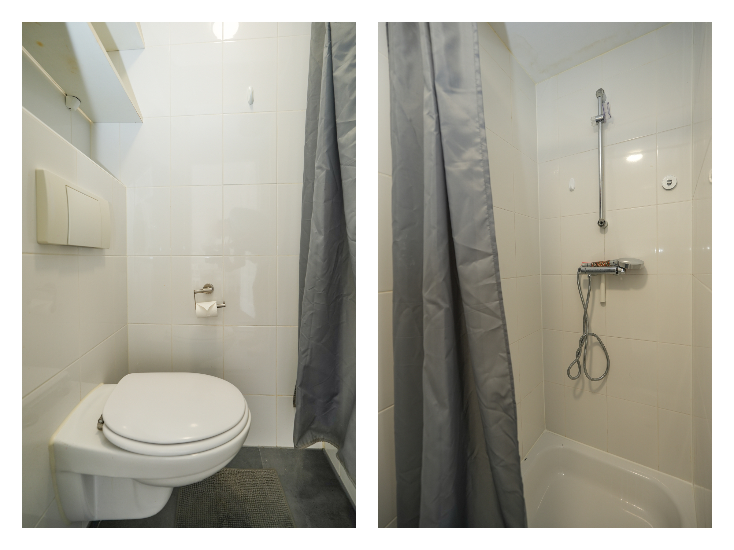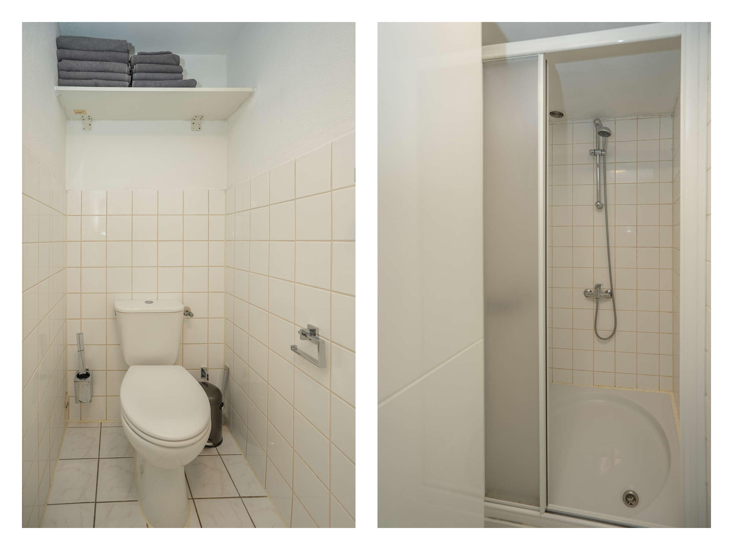 Middels een vaste trap is de bovenste verdieping bereikbaar, hier bevindt zich een ruime woonkamer met een bedstee. Tevens is er een moderne dichte keuken met witgoedaansluiting en er is een functionele badkamer met toilet en douche. Deze verdieping is sfeervol doordat de originele constructiebalken zichtbaar zijn gebleven en de ruimte is lekker licht door de dakramen. Bovendien is er veel bergruimte in vaste kasten.