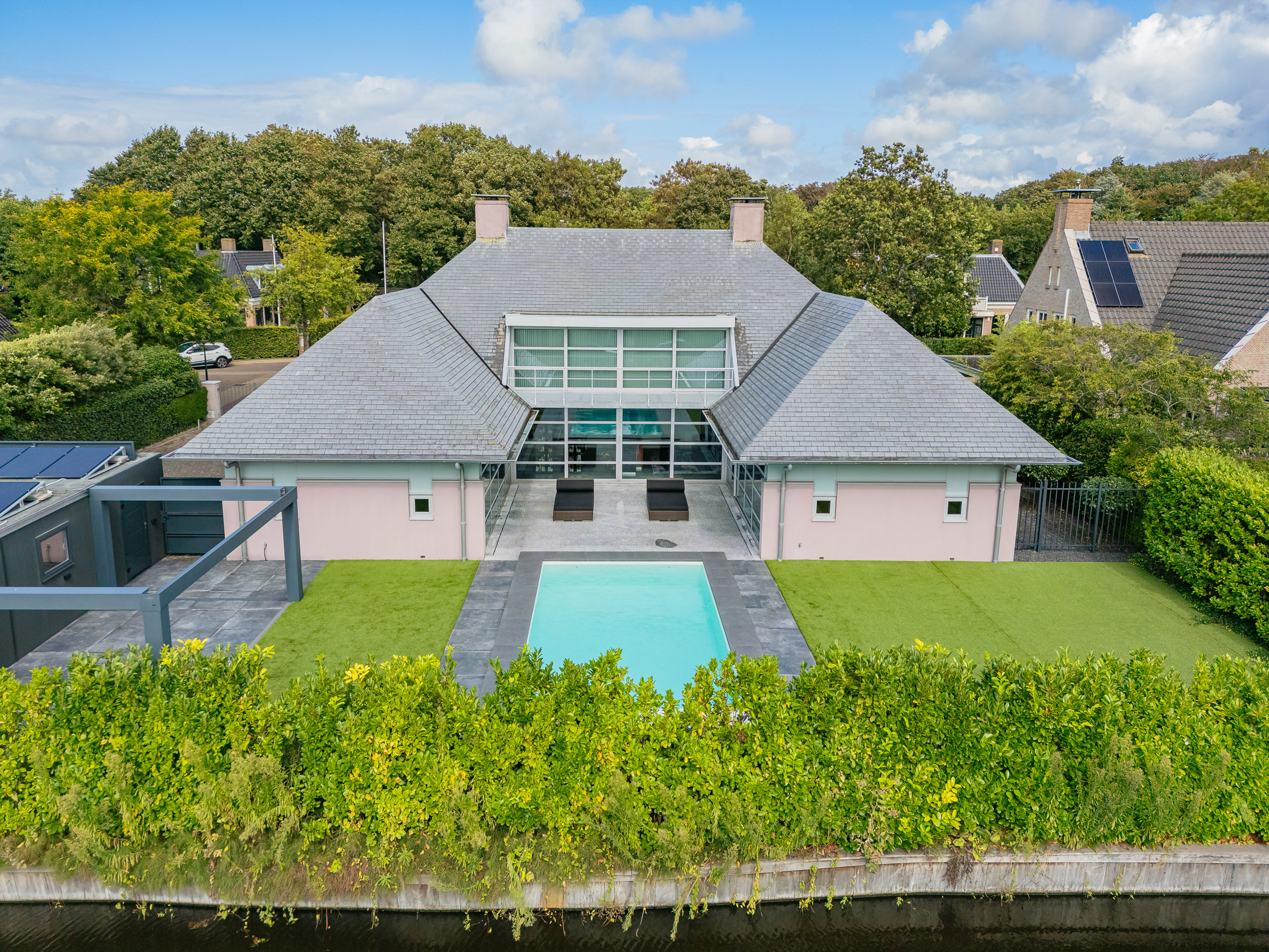 Luxe moderne villa met verwarmd zwembad, inpandige garage voor 5 auto’s en een vrijstaande garage voor 2 (elektrische) auto’s, gelegen op één van de mooiste locaties van Noordwijk. Kernwoorden van deze bijzonder vormgegeven villa zijn; privacy, maatwerk en symmetrie.
