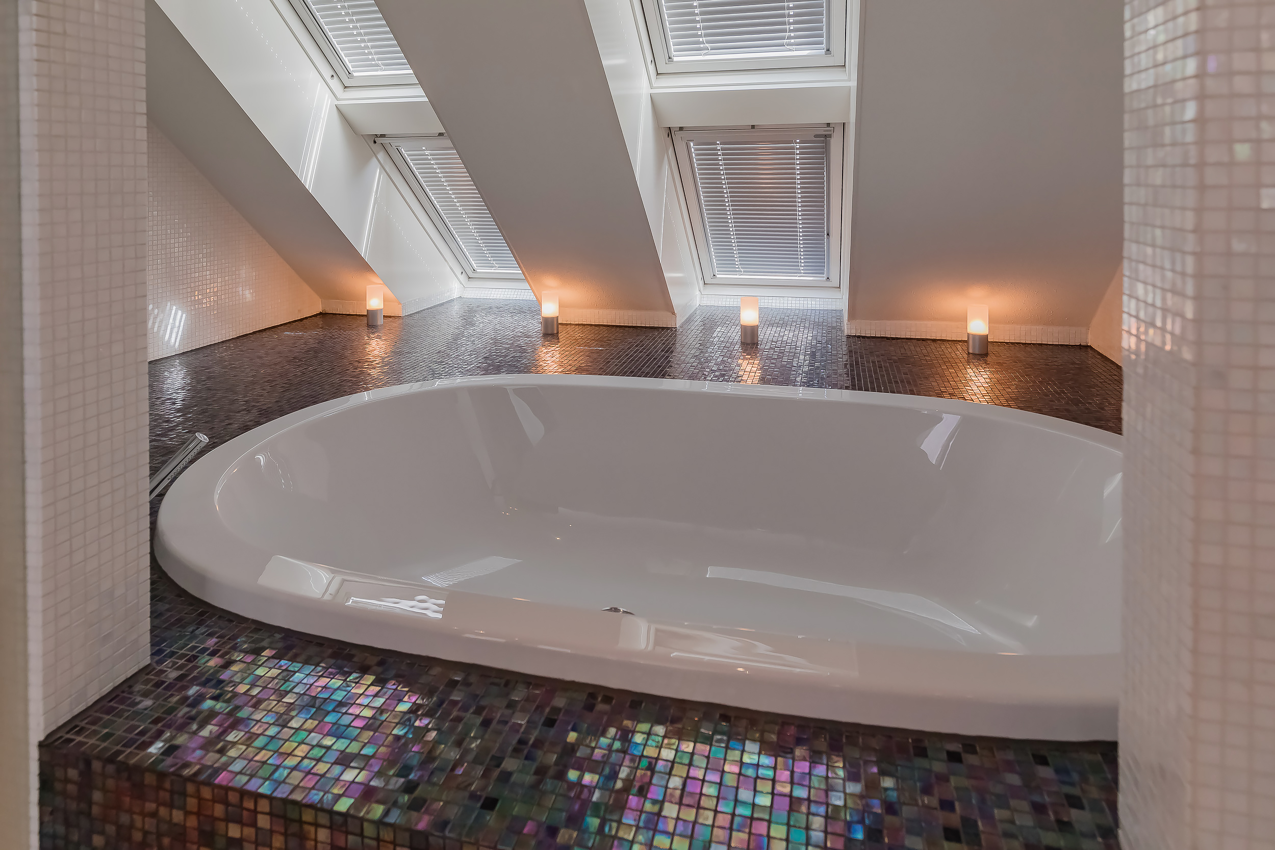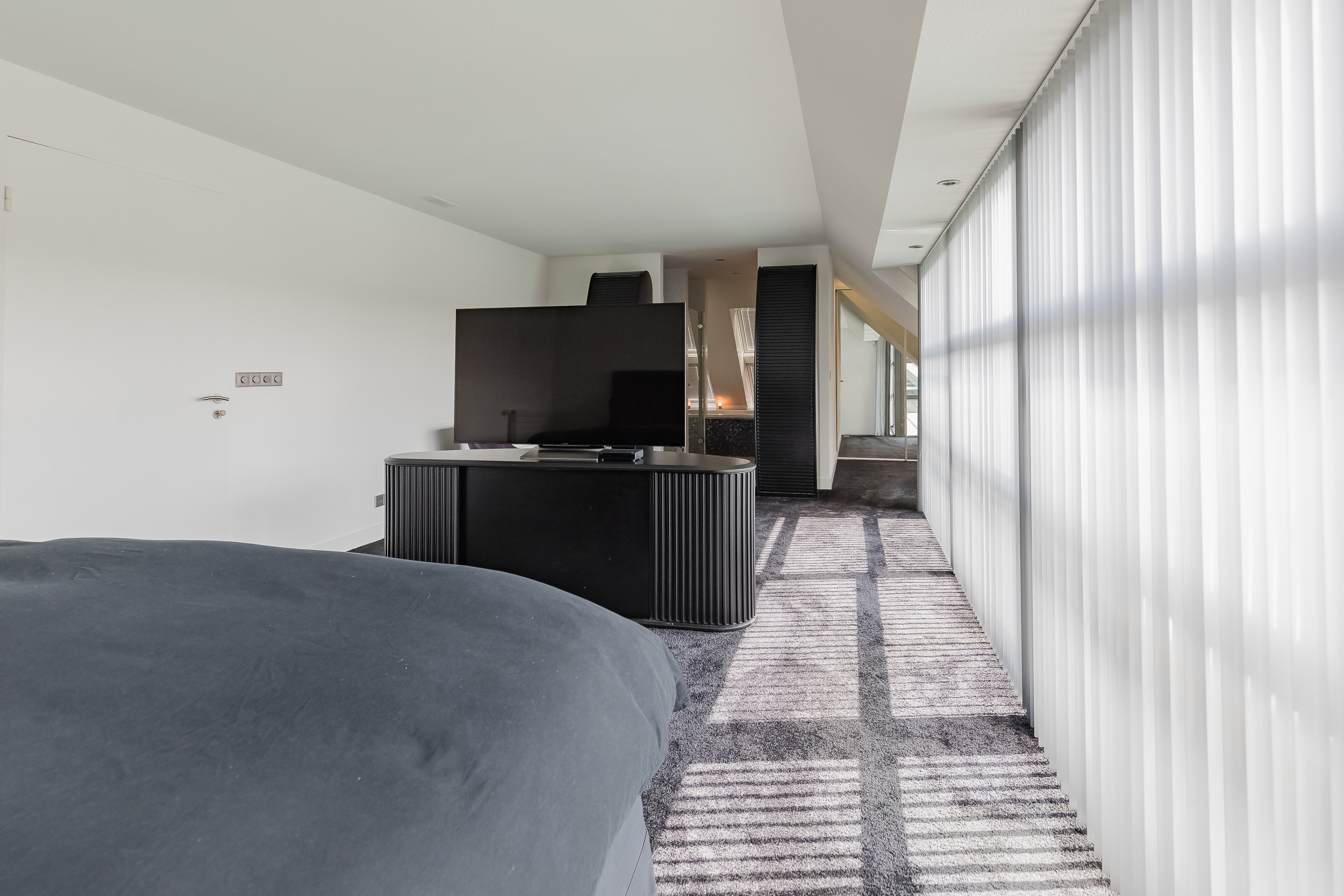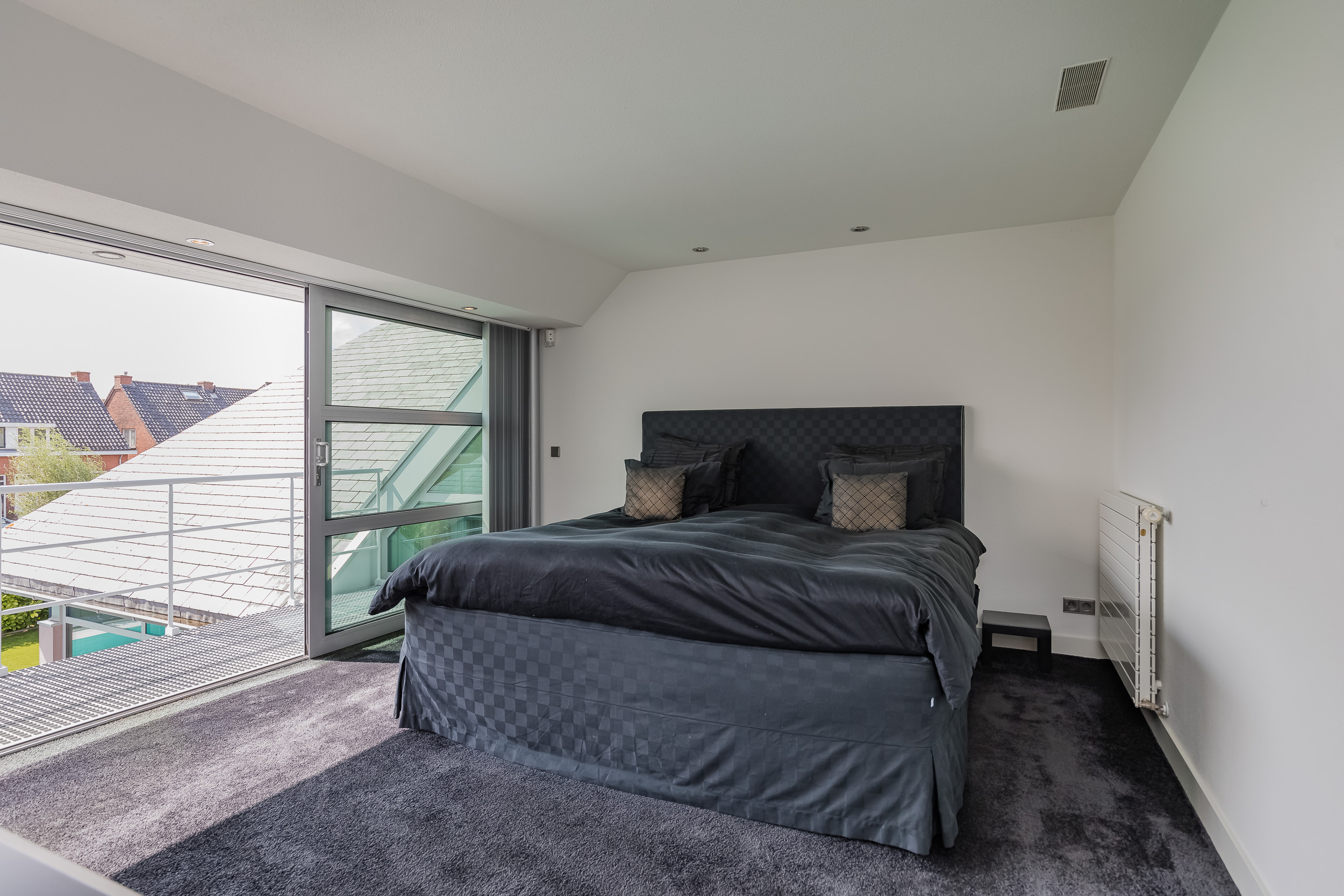 Op deze etage zijn 3 slaapkamers, 2 badkamers en een grote bergruimte. De zeer royale hoofdslaapkamer heeft een eigen luxe badkamer en een ruime kleedkamer. Het balkon is alleen vanuit deze kamer toegankelijk. 20 Dakramen zorgen voor extra lichtinval en ook hierin is de symmetrie doorgetrokken.