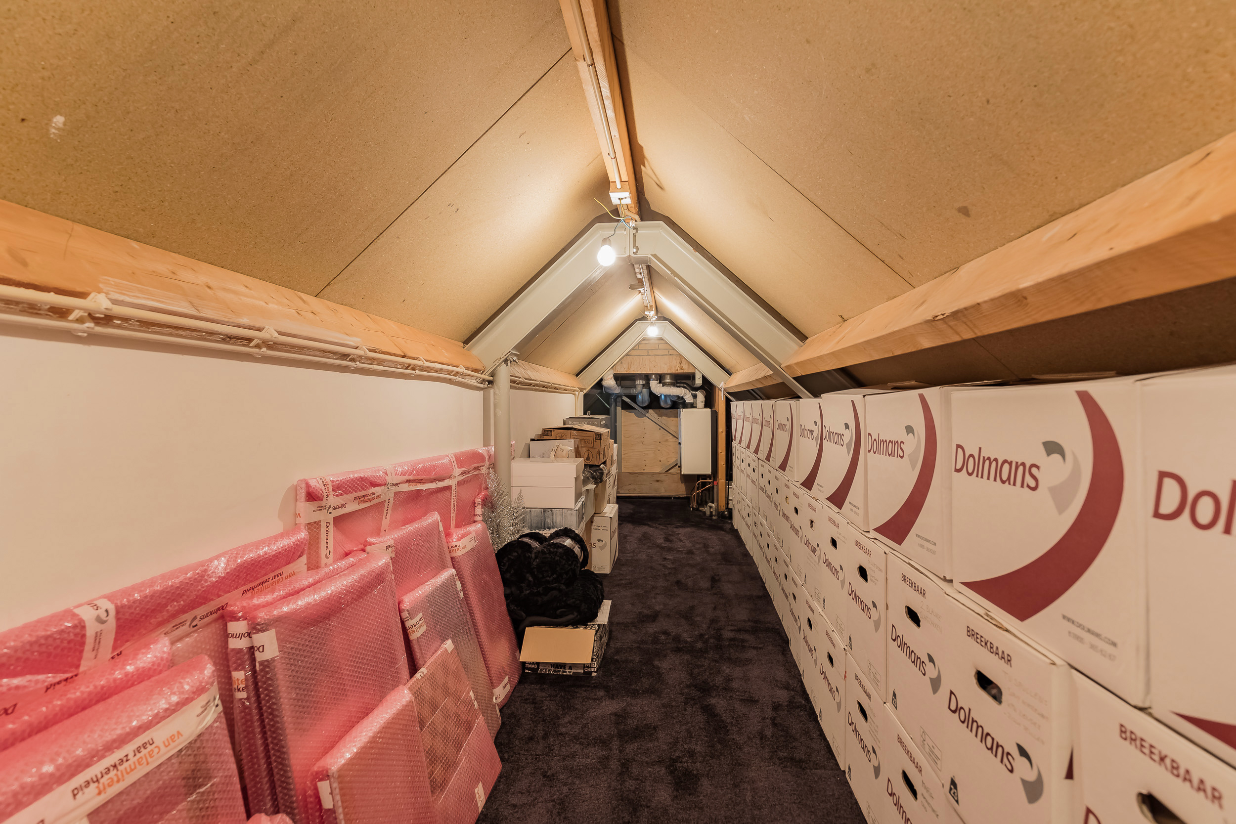 De bergzolder is bereikbaar met een Vlizotrap en hier staan de cv-ketel en de WTW installaties opgesteld.