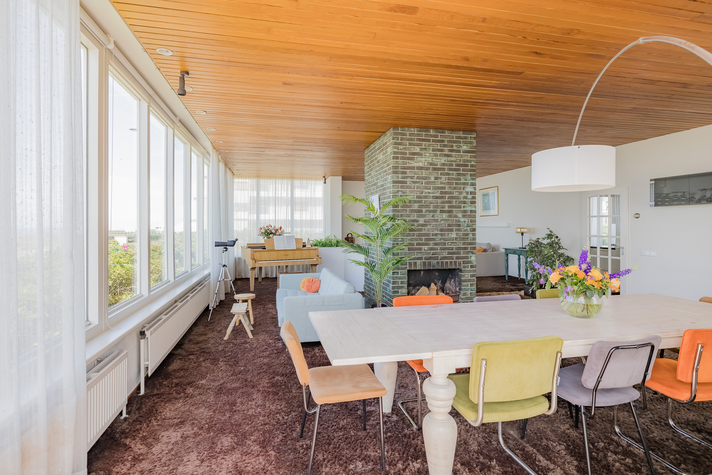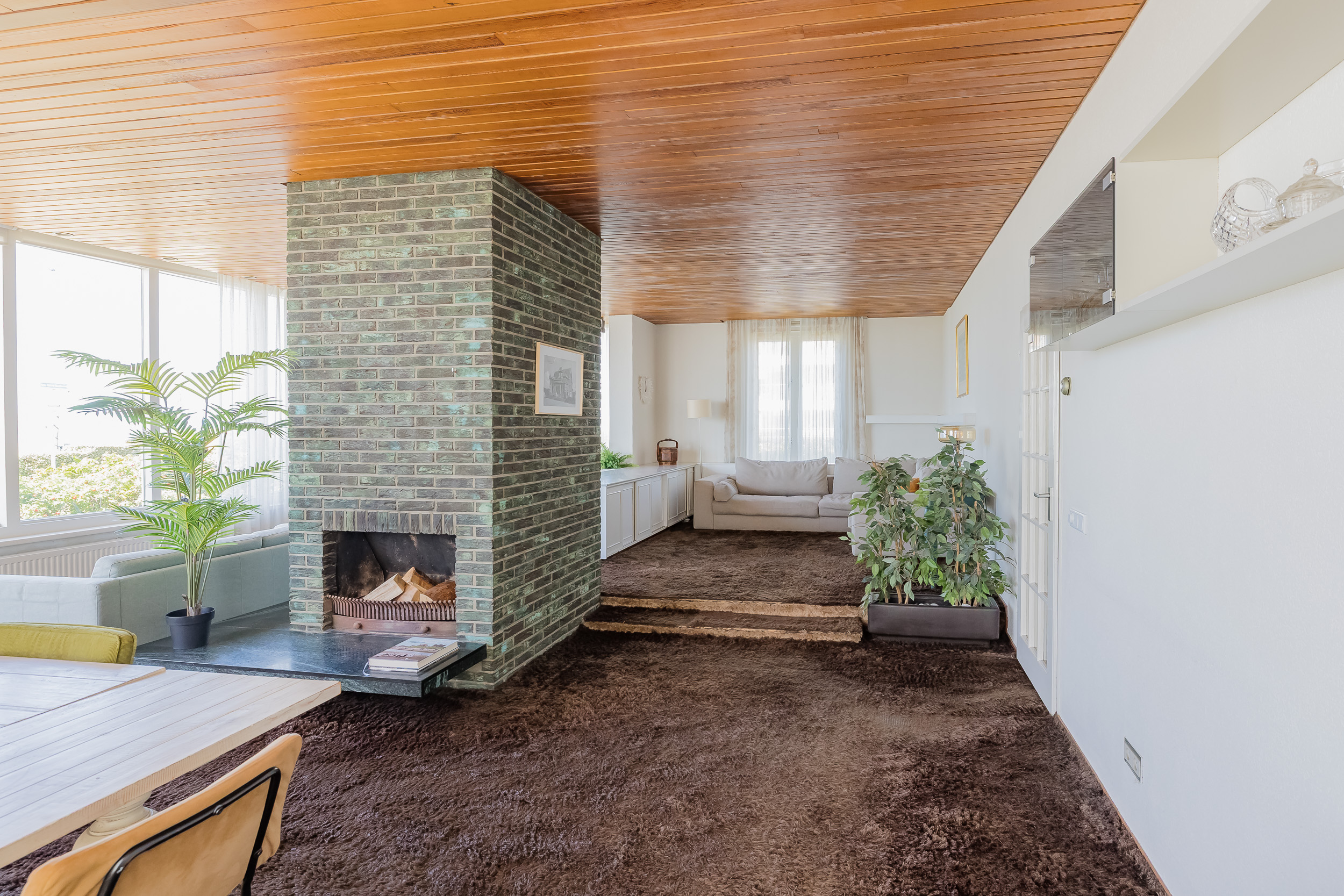 Door de grote raampartij in de living geniet je hier elke dag van het fenomenale uitzicht en geeft de open haard extra warmte en sfeer op koudere dagen.