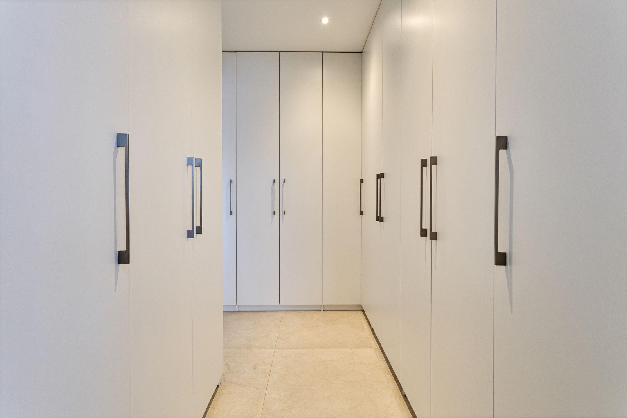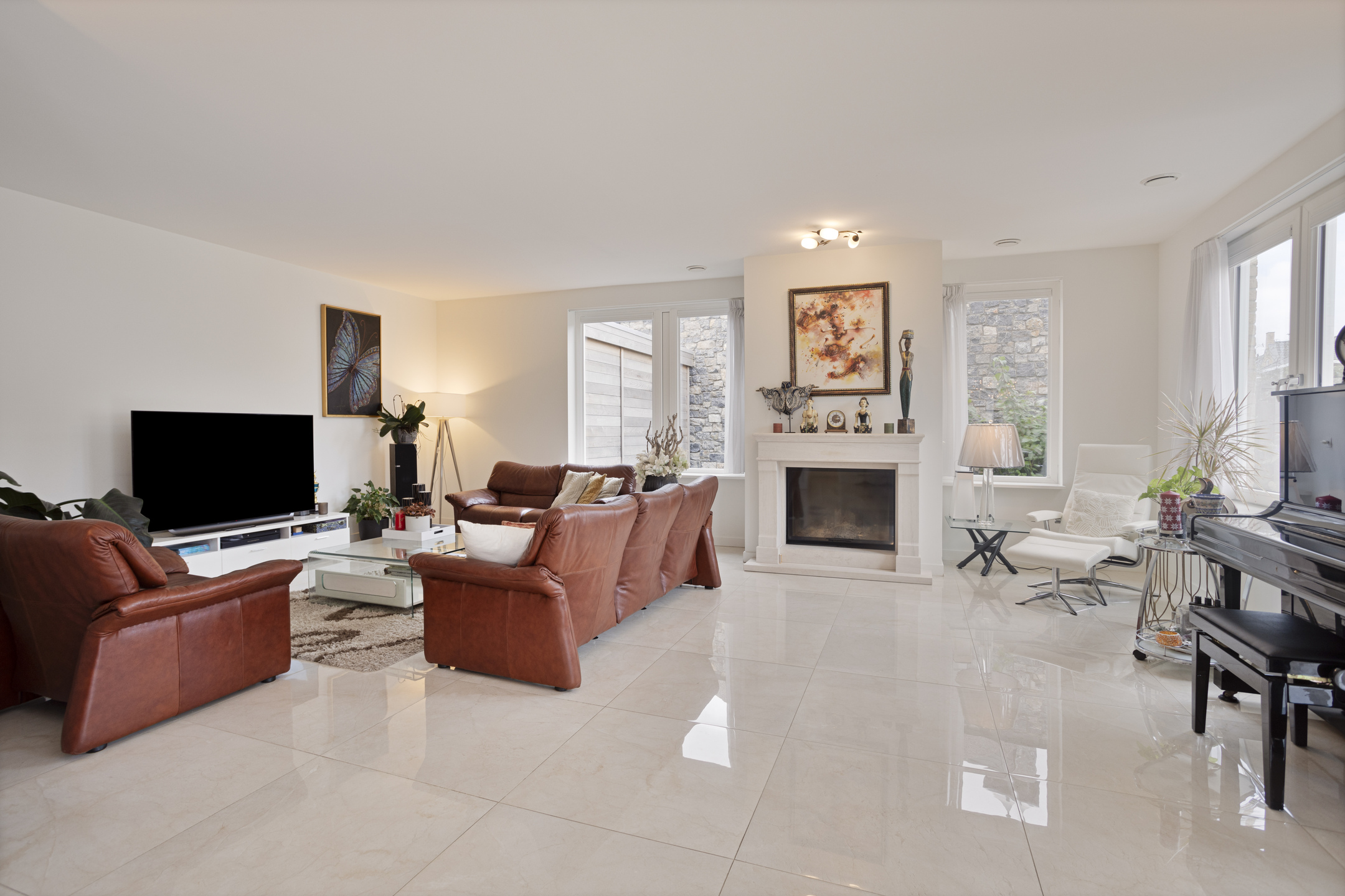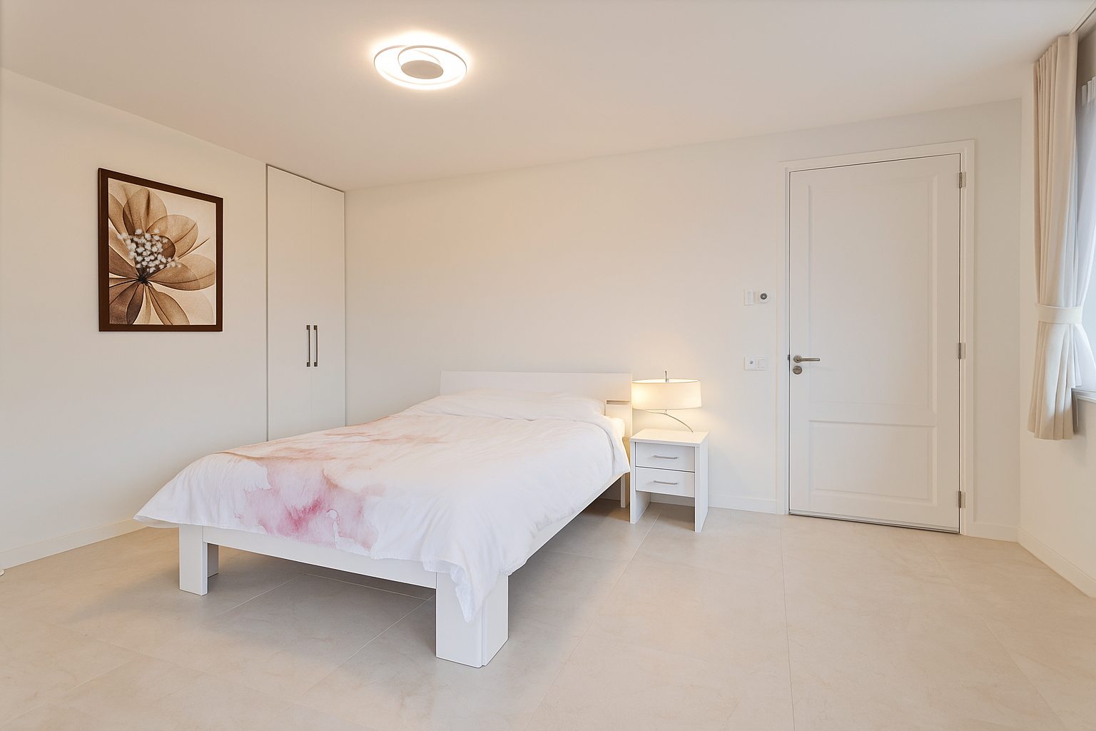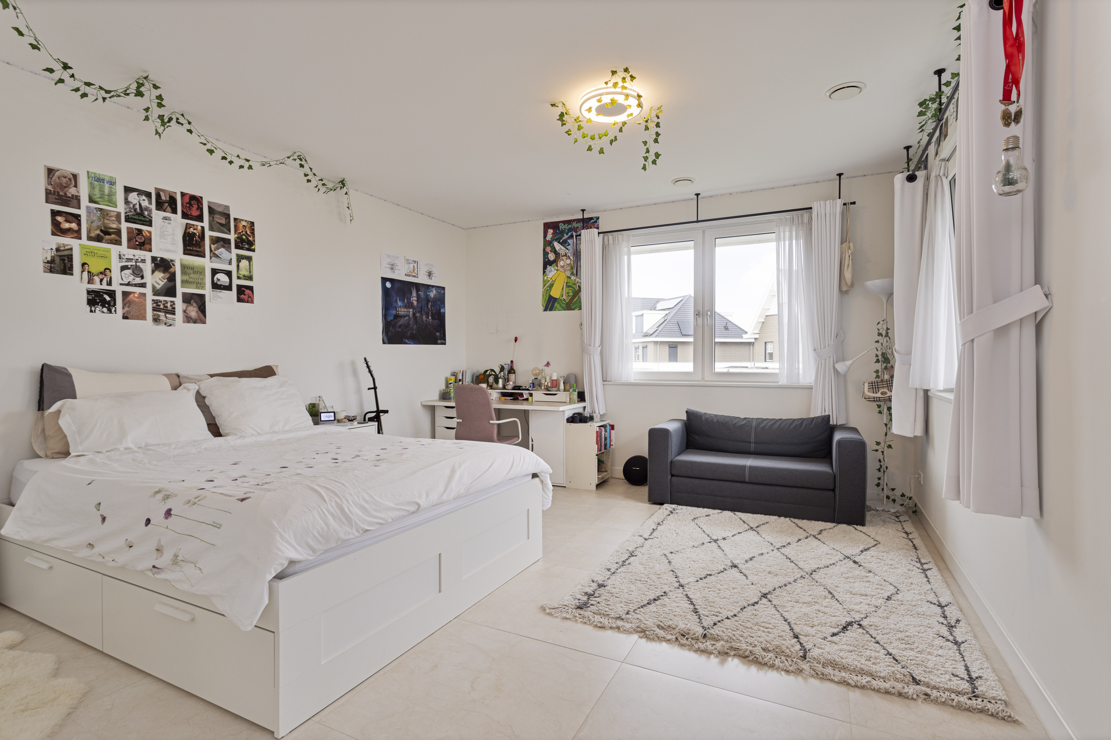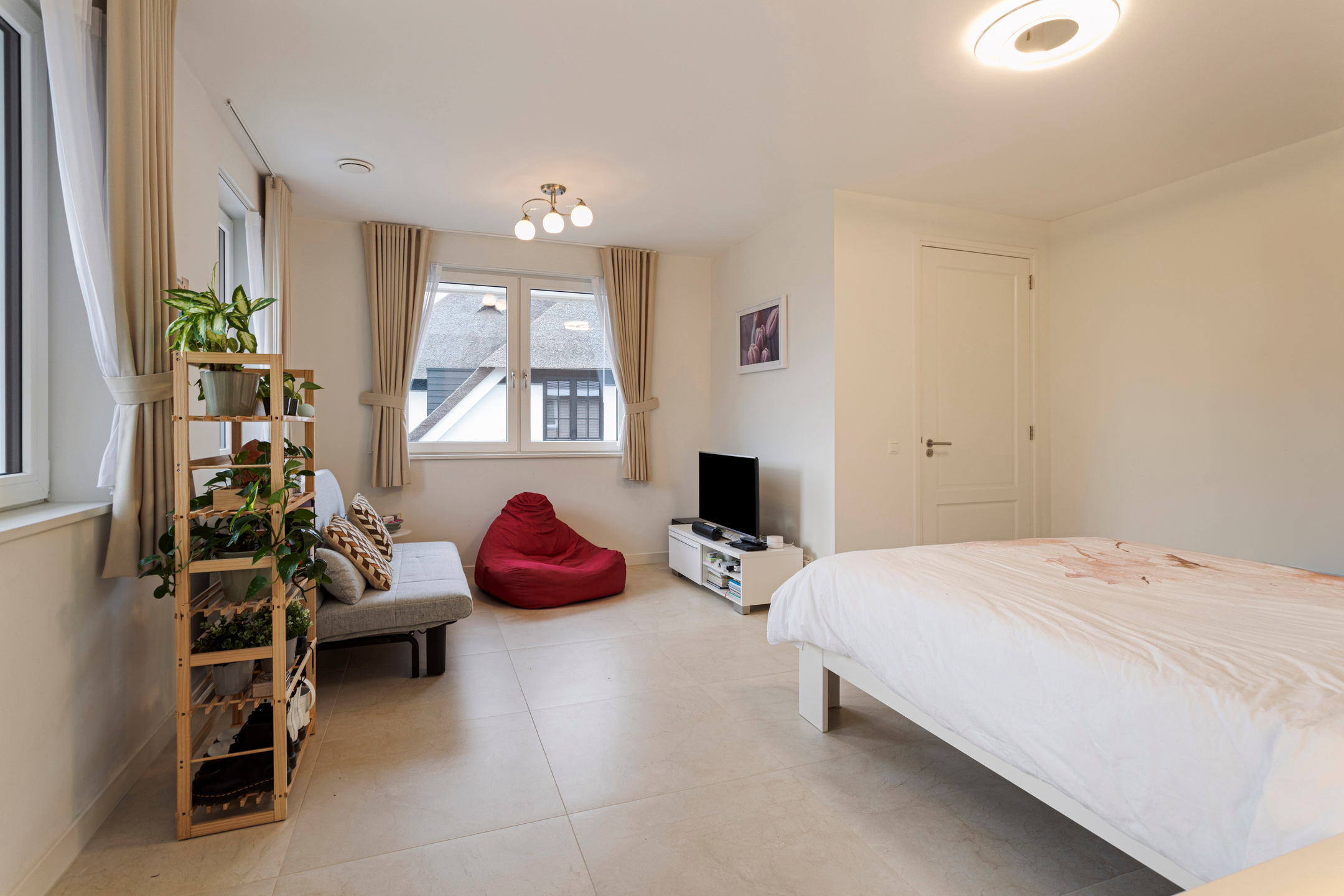 Ruime overloop met aparte wasruimte en technische ruimte. Verder treft u op deze woonlaag 4 zeer royale slaapkamers aan. De ouderslaapkamer beschikt over een zeer ruime inloopkledingkast met op maat gemaakte kasten en daarachter een luxe badkamer en suite voorzien van bad, douche, dubbele wastafel en toilet. Eén van de andere slaapkamers beschikt ook over een badkamer en suite (met douche, wastafel en toilet). De andere twee slaapkamers delen een prachtige ruime (3e!) badkamer met douche, dubbele wastafel en toilet. Een luik op de overloop geeft toegang tot een zeer ruimte bergzolder.