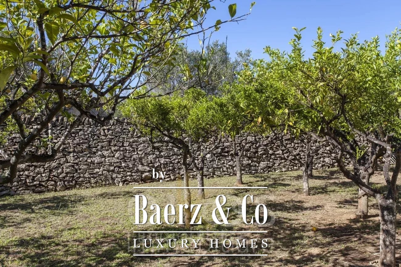 Het pand ligt in een uitgestrekte tuin van 17.158 vierkante meter, omheind voor veiligheid en privacy, en beschikt over een charmante sinaasappelboomgaard, allemaal omgeven door traditionele stenen muren.