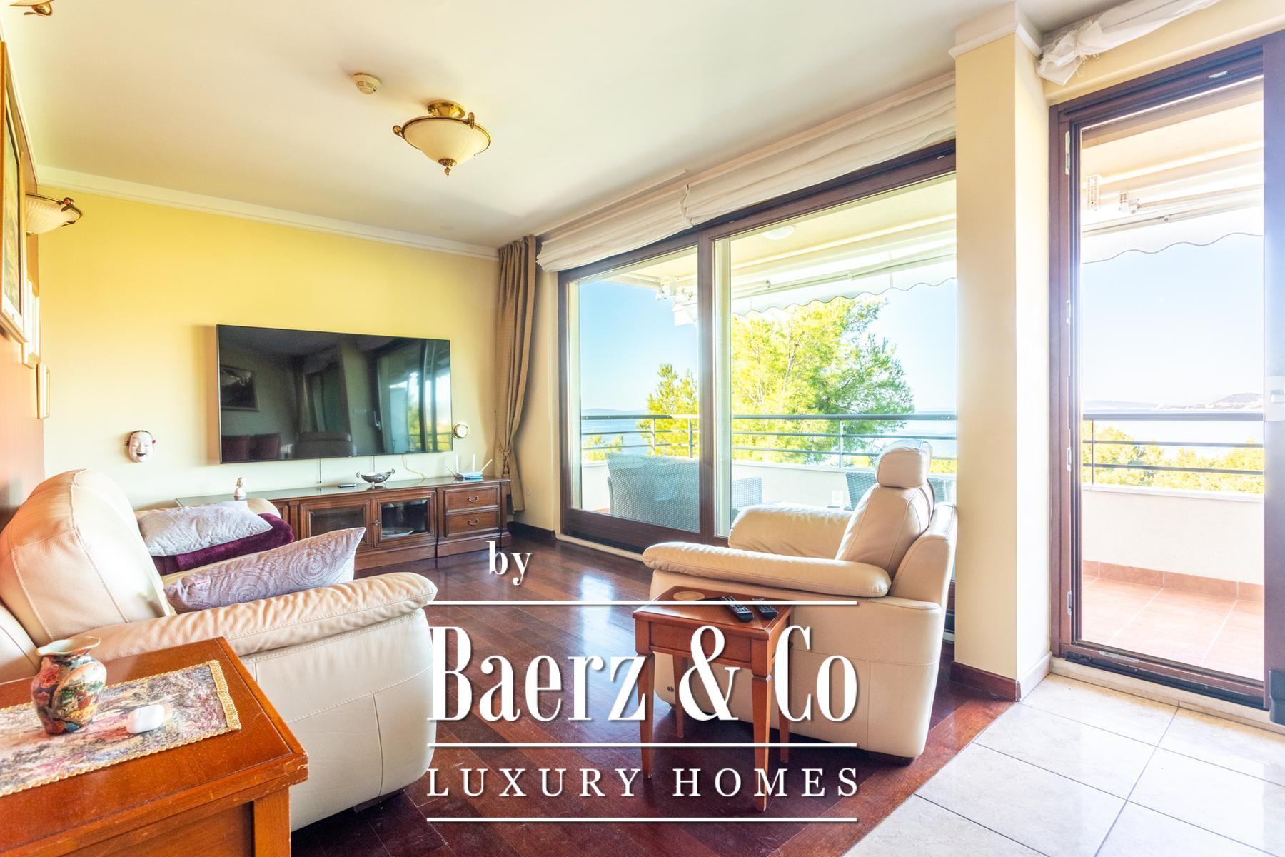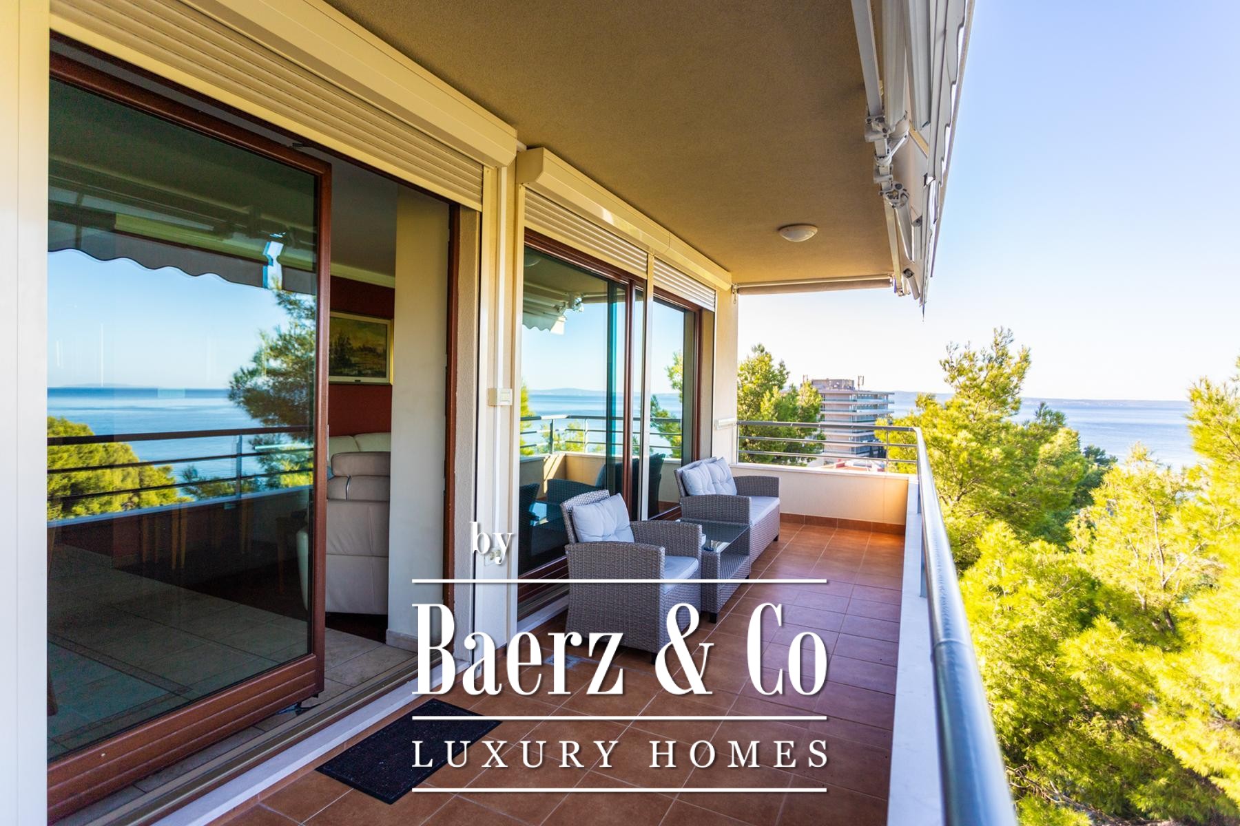 home. The apartment includes two spacious loggias, with areas of 3.85 m2 and an impressive 14.74 m2. These outdoor oases are perfect for relaxing with morning coffee or evening cocktails, enjoying the fresh sea air and the endless blue. The larger loggia provides an ideal space for outdoor furniture, creating a private sanctuary above the sea.The location in Podstrana, known for its beautiful beaches and proximity to Split, guarantees a peaceful life with easy access to all urban amenities. Restaurants, cafes, shops, and all necessary facilities for comfortable living are in the immediate vicinity. This apartment represents a perfect investment for those seeking an exclusive home or a luxurious holiday property, offering a blend of elegance, comfort, and an invaluable sea view. Do not miss the opportunity to become an owner of a piece of Adriatic paradise.
