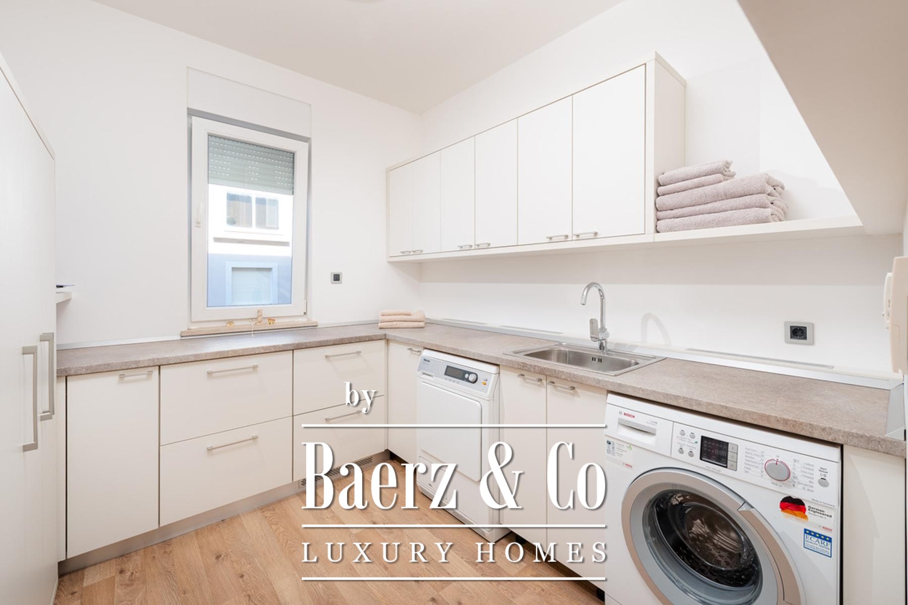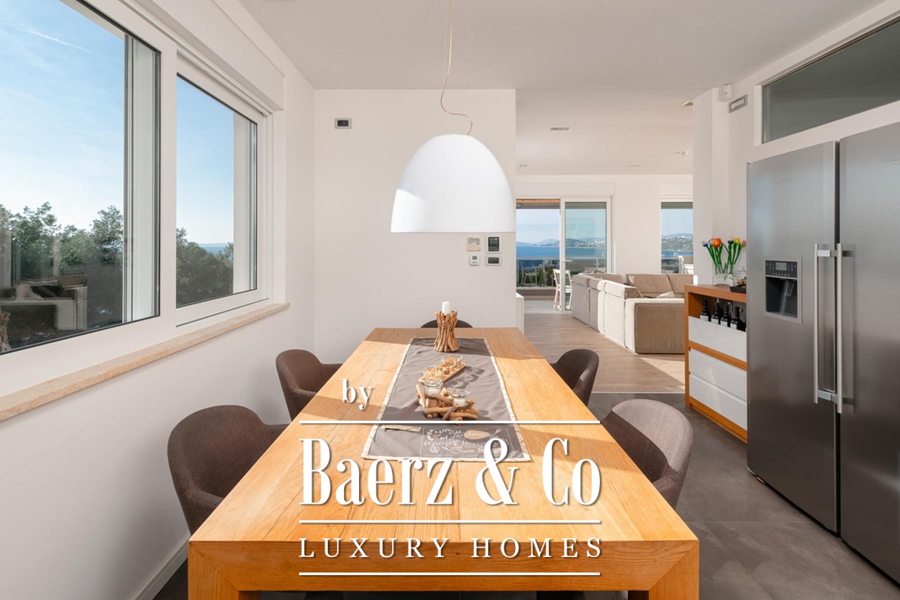 Drie terrassen met een gezamenlijk oppervlak van 18,38 m² bieden panoramische vergezichten over de Adriatische Zee, beschermd en blijvend. De leefruimtes worden overspoeld door daglicht, geaccentueerd door grote raampartijen en optimale oriëntatie. Een aparte werkruimte biedt plaats aan wasvoorzieningen en een afzonderlijke garderobe zorgt voor extra organisatie. Door het gehele appartement is een geavanceerd domoticasysteem aanwezig dat vloerverwarming, airconditioning, luchtverversing, brand- en rookmelders, een centraal stofzuigsysteem, zonnepanelen voor warm water, elektrische rolluiken en zonwering, en hoogwaardige apparatuur integreert. Op het terras nodigt een traditionele gemetselde open haard uit om buiten in de Dalmatische sfeer te vertoeven.