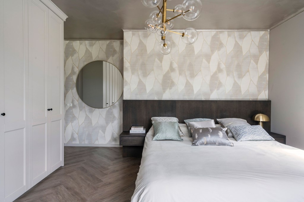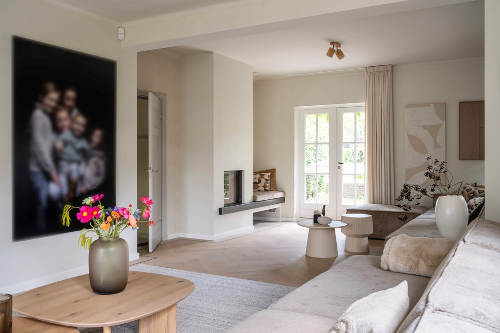 De woonkamer is een ware blikvanger met zijn visgraatvloer en elegante inrichting. Deze riante ruimte is slim ingedeeld en biedt meerdere gezellige zitplekken, waardoor u kunt genieten van de verschillende hoeken en uitzichten in de kamer. De overvloed aan ramen zorgt voor een prachtige lichtinval gedurende de dag, wat bijdraagt aan een lichte en open sfeer. Hier kunt u ontspannen met een goed boek of gasten ontvangen in een stijlvolle setting.