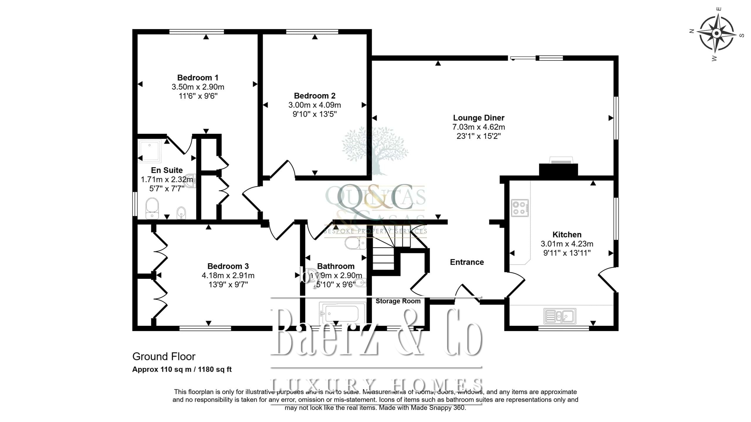 De entree leidt naar een evenwichtige hal die toegang biedt tot de keuken en de woonkamer, waar openslaande deuren het zuidelijke licht binnenlaten. De woonkamer is het hart van het huis met een open haard en houtkachel, ideaal voor koelere avonden. Er zijn drie slaapkamers, waaronder een master met en-suite badkamer en twee extra kamers met gedeelde badkamer; alle beschikken over airconditioning en ingebouwde kasten, waarbij comfort en functionaliteit centraal staan.