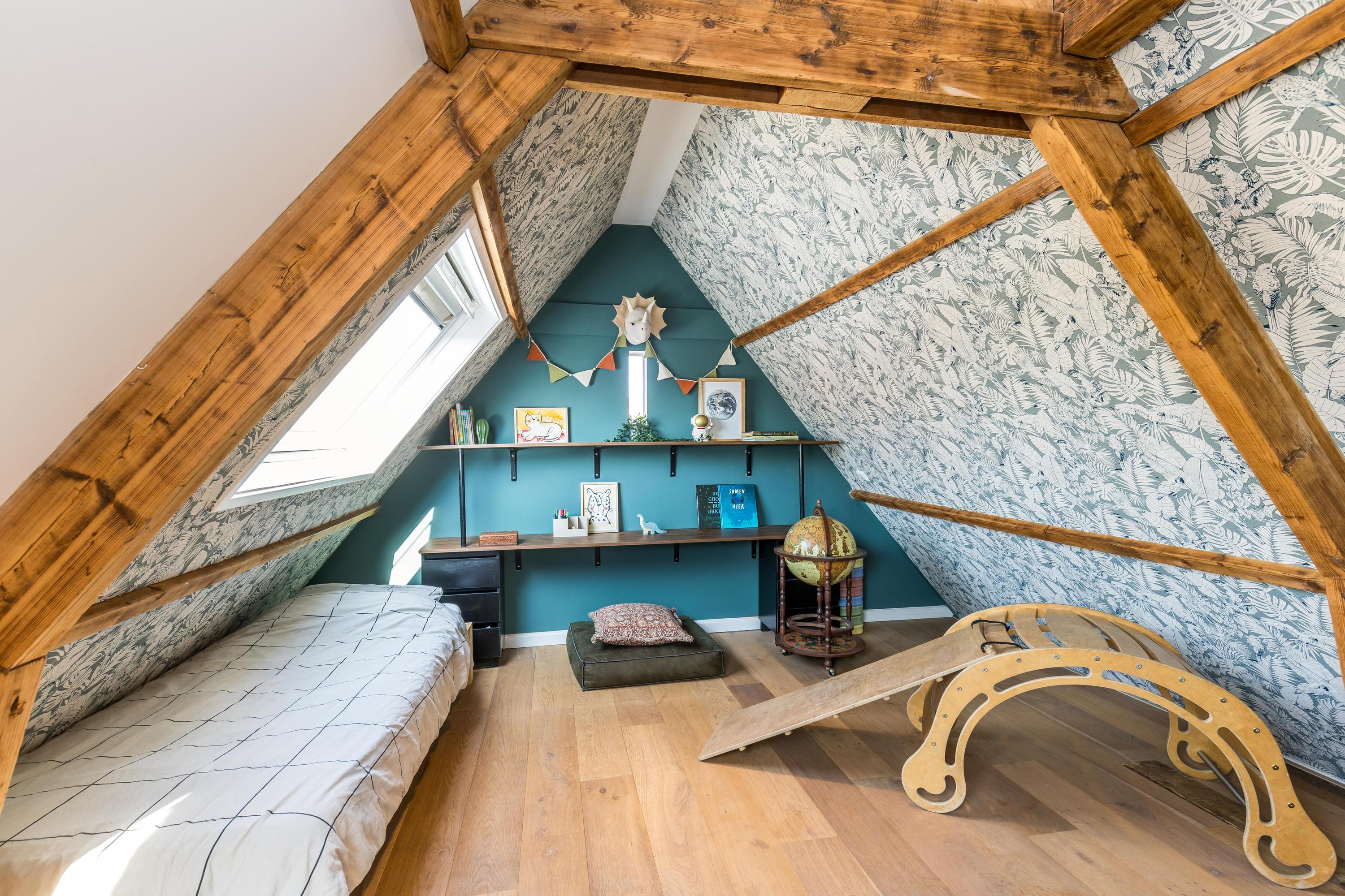 2e Verdieping: Ook deze verdieping is weer heel verrassend en speels ingedeeld. Met misschien wel een van de leukste kinderkamers die je maar kunt verzinnen, dakspant in het zicht, leuke verstopplekjes en genoeg ruimte om te spelen. In werkelijkheid is deze verdieping groter dan de plattegrond doet vermoeden. Het oppervlak wordt op papier door de schuine dakvlakken ‘gestraft’, terwijl er heel veel bruikbare ruimte is. Er bevindt zich tevens een badkamer met toilet, douche en wastafel.