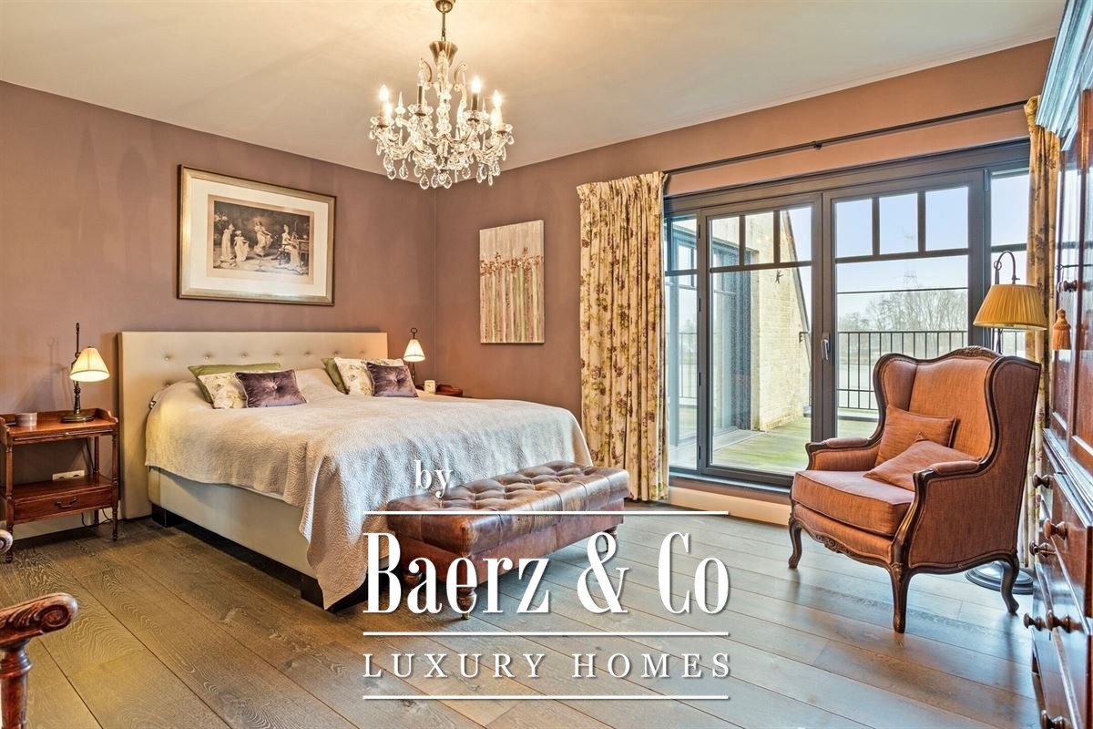 Op de bovenverdieping omvat de mastersuite een slaapkamer van 21 m² met toegang tot een zonneterras van 24 m² met panoramisch uitzicht over het water en het landschap, een privébadkamer, royale dressing en een ruime wasplaats. Twee bijkomende slaapkamers van 18 m² en 22 m² hebben parketvloeren; één kamer heeft eveneens toegang tot het terras. In het gehele duplexappartement in Schilde zijn details als vloerverwarming, airconditioning, automatische zonwering en vliegenramen aanwezig voor optimaal comfort, het hele jaar door.