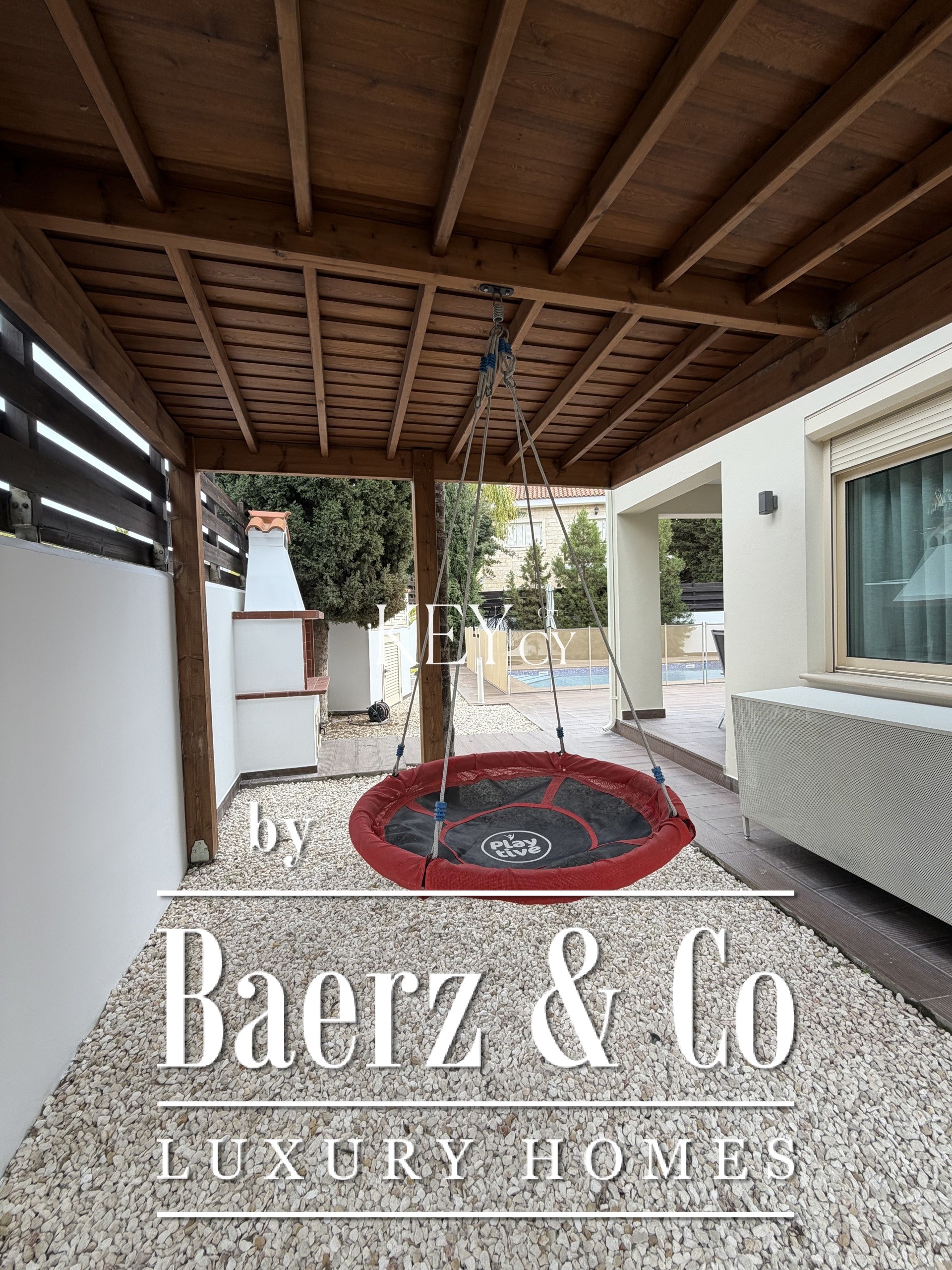 De woning is licht en luchtig, voorzien van airconditioning, centrale verwarming op diesel en energiezuinige, dubbel beglaasde aluminium ramen. Extra voorzieningen zijn onder meer een wasruimte en berging, wijnkoelkast, geavanceerde beveiliging met een veiligheidsdeur en camerabewaking, evenals geluids- en thermische isolatie. Buiten bevindt zich een privézwembad in de aangelegde tuin, harmonieus passend bij de rustige woonomgeving. Twee overdekte parkeerplaatsen maken het geheel compleet.