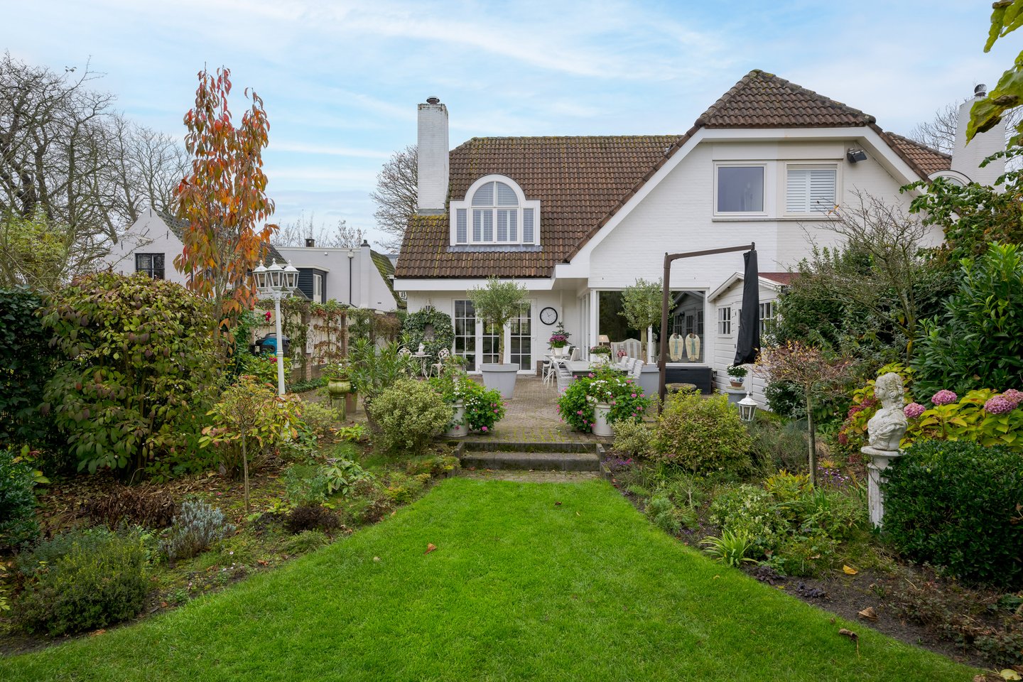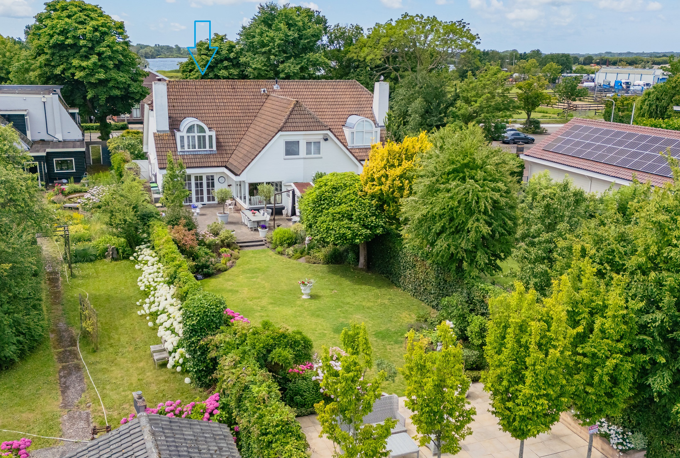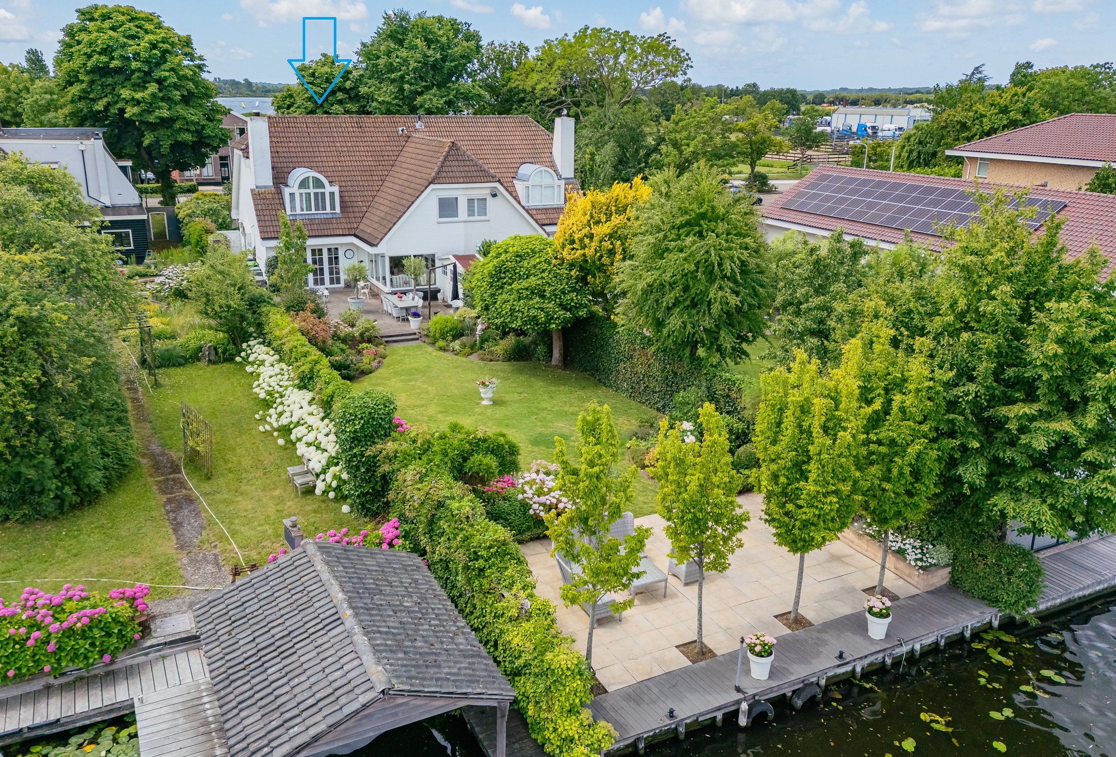 • Grote, zonnige tuin aan vaarwater