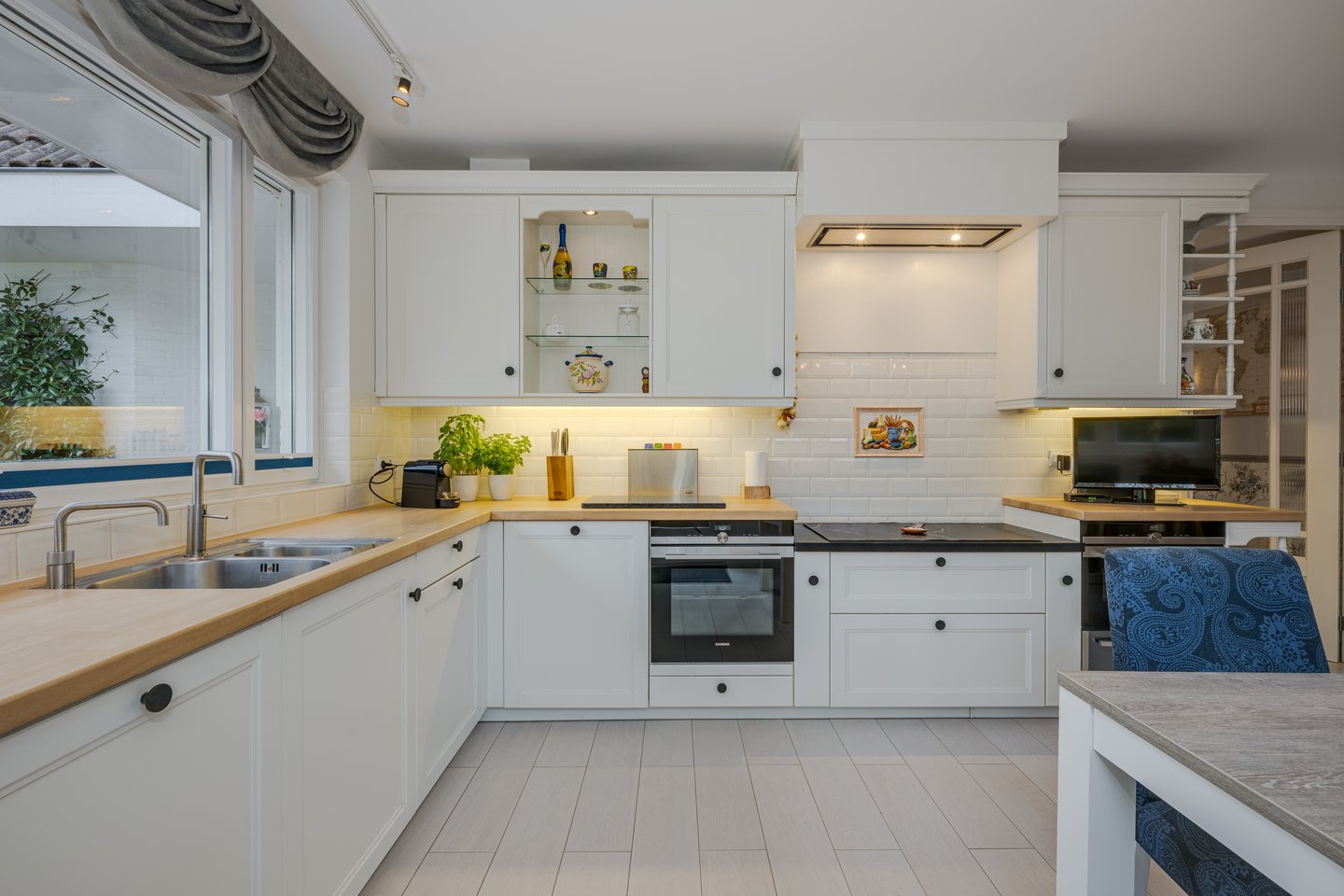 De ruime woonkeuken is voorzien van diverse inbouwapparatuur en biedt volop plek om samen te koken en te tafelen. Vanuit de hal heb je toegang tot de inpandige garage met elektrische deur, waar ook de aansluiting voor wasapparatuur is gerealiseerd.