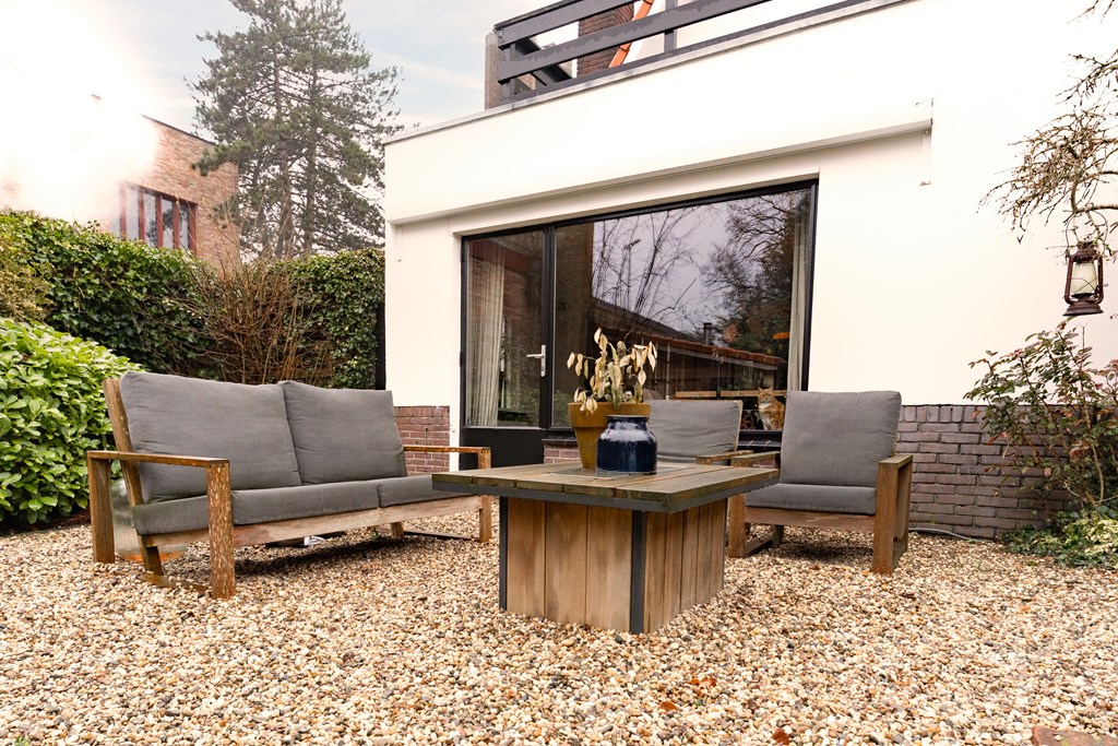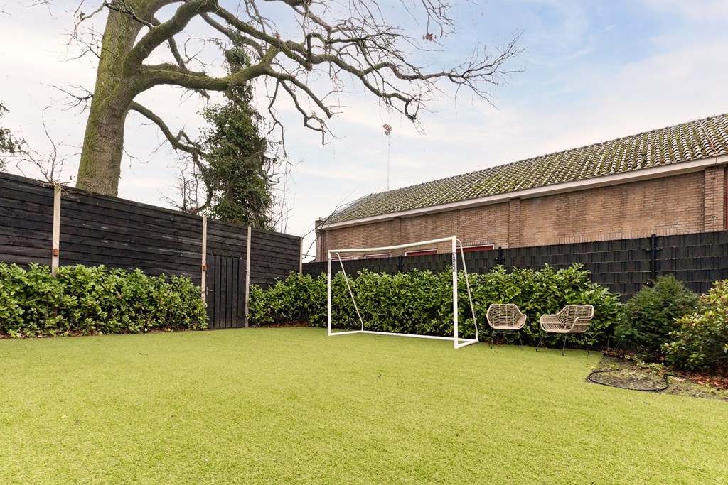 De woning is gelegen op een riant perceel van 1.043 m². Zowel aan de voor- als aan de achterzijde is de tuin groen, ruim en verzorgd en beschikt het over een ruime veranda met sfeervolle houtkachel. De in 2021 aangelegde achtertuin ligt op het zuidoosten en biedt veel privacy door hoge bomen en beschikt over een beregeningsinstallatie en fraaie tuinverlichting. Door de diverse terrassen, is er op elk moment van de dag een zonnige plek te vinden.