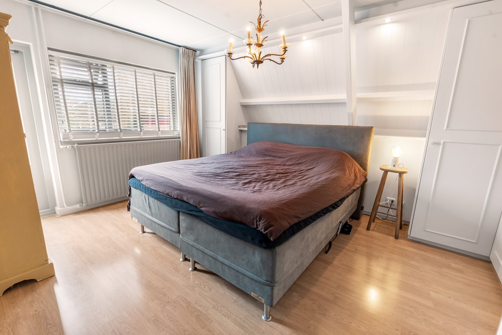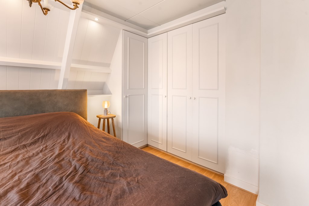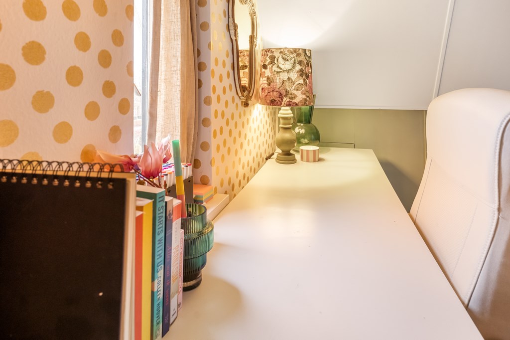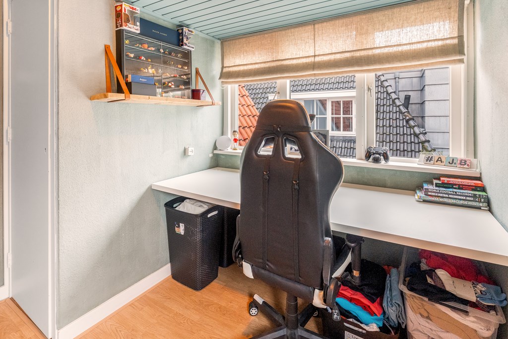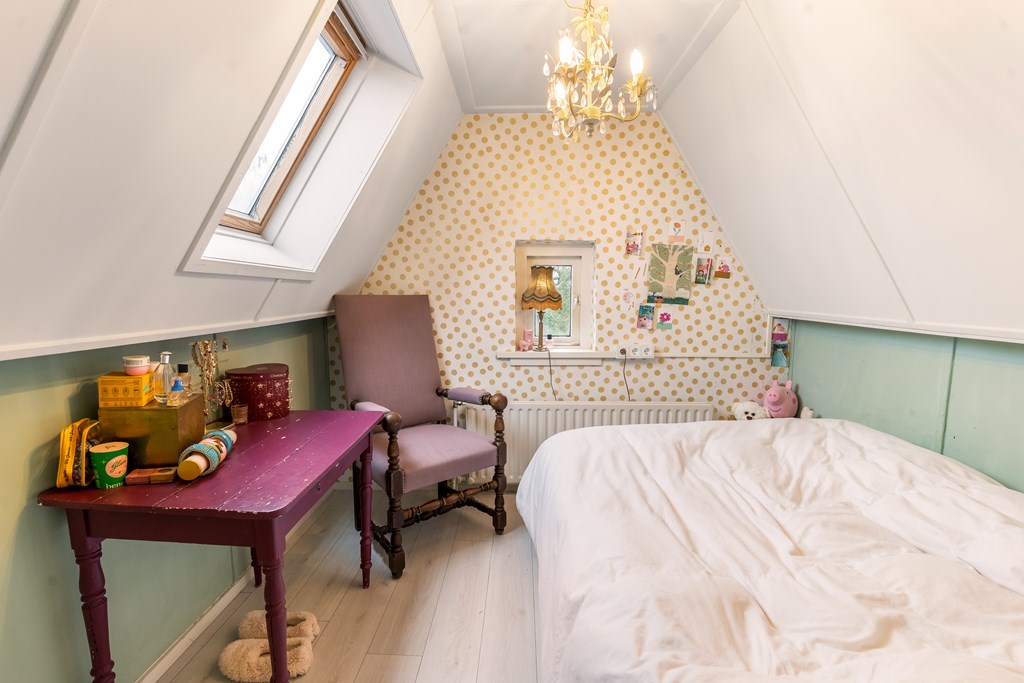 Op deze verdieping bevindt zich de vierde slaapkamer van ca. 7,3 m². De mogelijkheid bestaat om hier een vijfde kamer te realiseren. Achter de knieschotten zit verrassend veel bergruimte. Op deze verdieping én in de ouderslaapkamer op de eerste verdieping is een wastafel-aansluiting aanwezig.