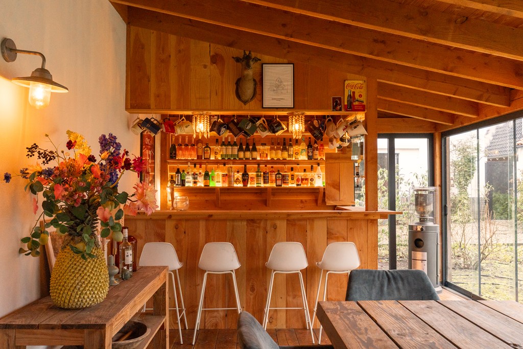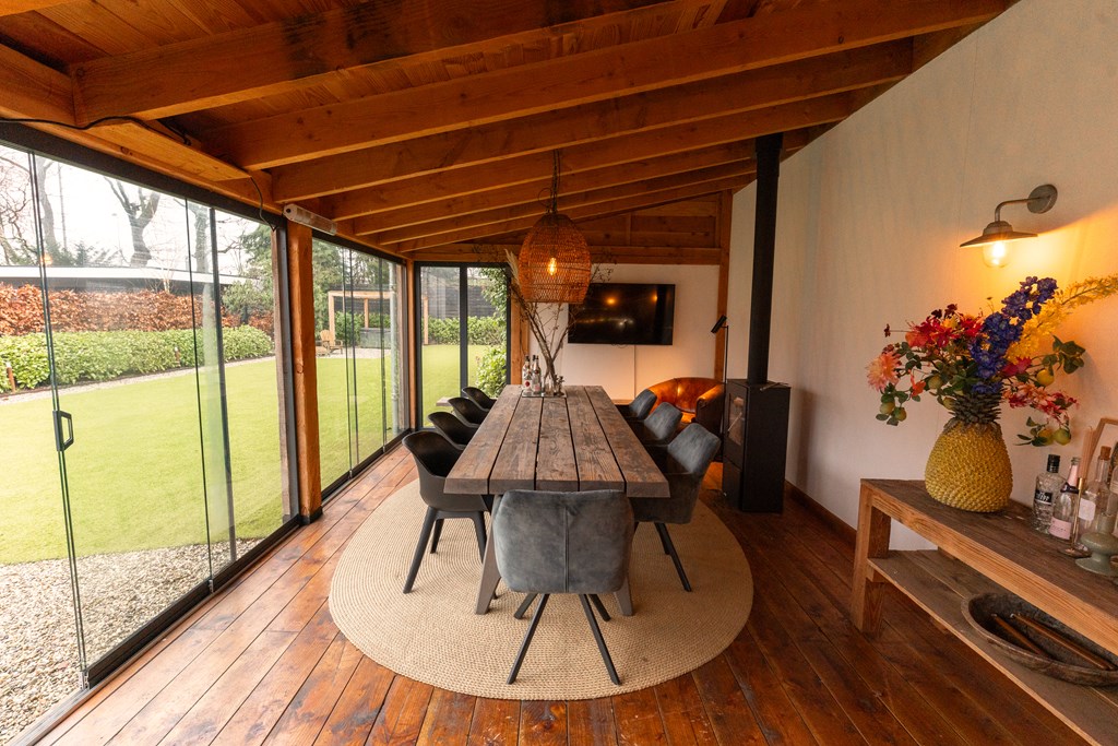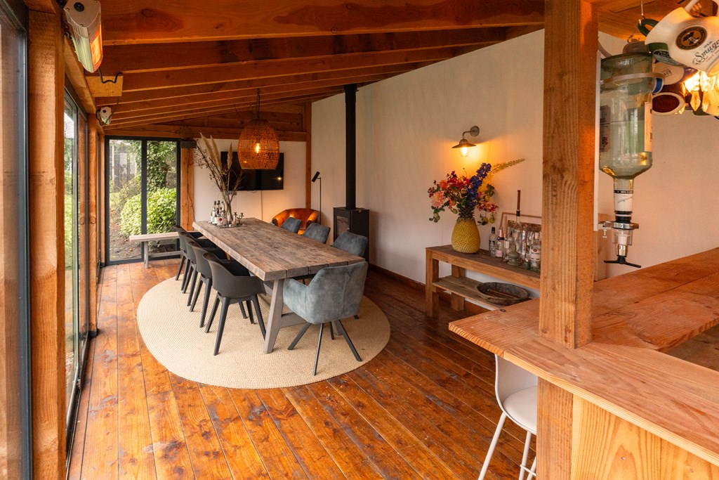 - luxe veranda met bar en houtkachel