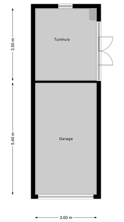 - in het achterste deel van de berging vind je een gezellige tuinkamer van ca. 10,5 m² met openslaande deuren.