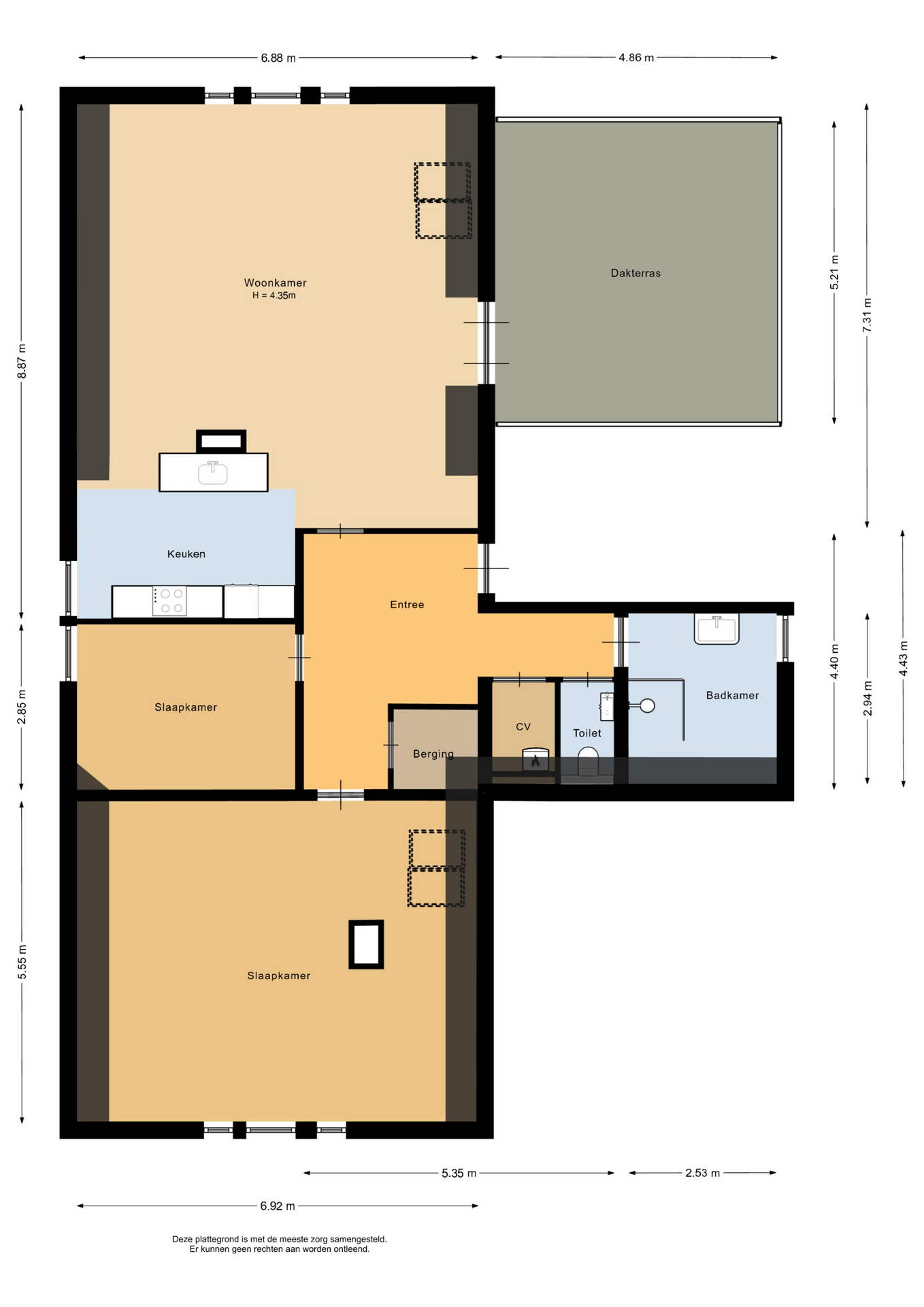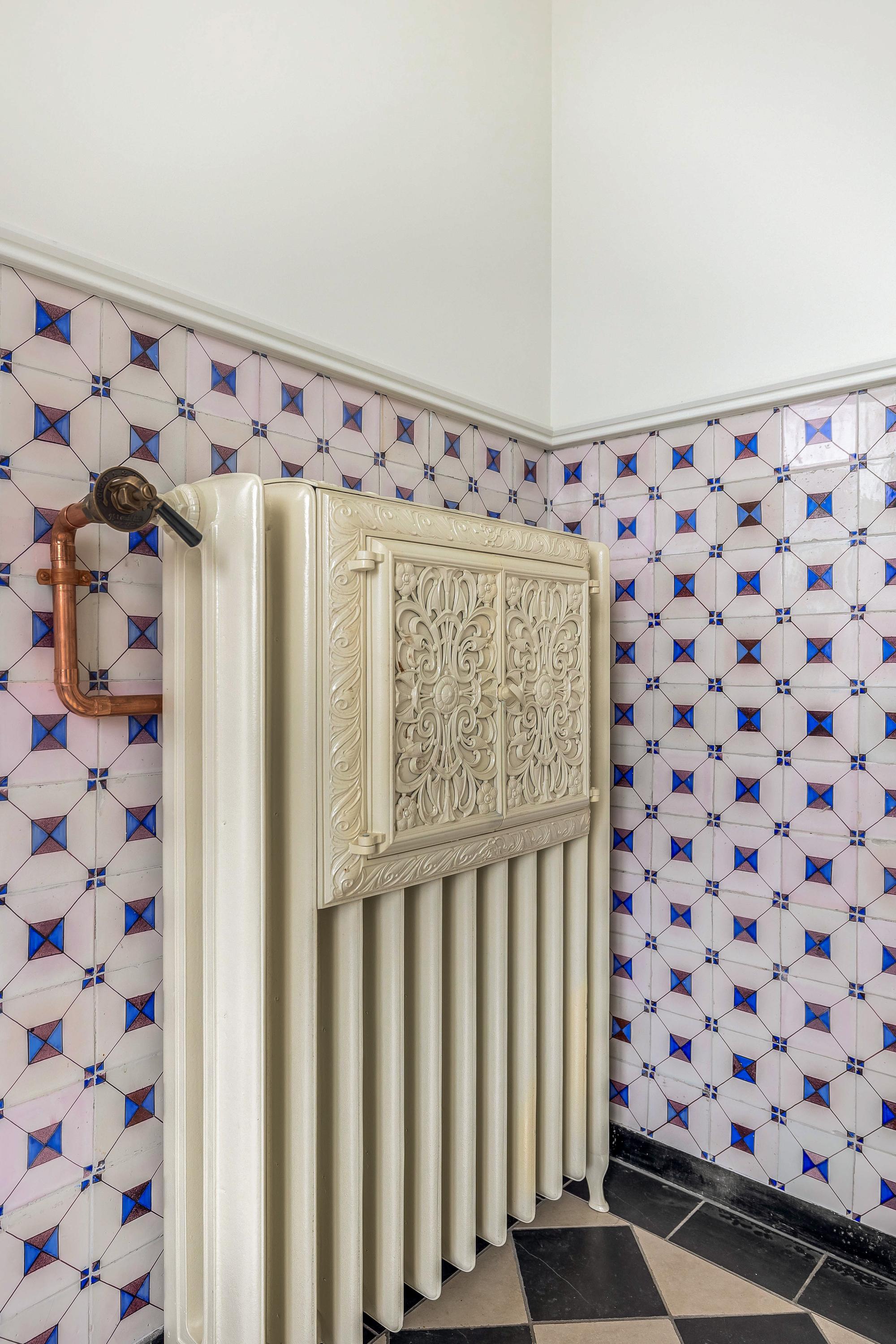 Via een eigen voordeur betreedt u de ruime ontvangsthal, die direct een gevoel van grandeur en elegantie oproept. De hoge plafonds zorgen voor een indrukwekkende ruimtelijkheid, terwijl de hoogwaardige afwerking met kwaliteitsmaterialen de exclusieve uitstraling van het appartement benadrukt. Vanuit de hal is de afzonderlijke, zeer royale, keuken toegankelijk welke is uitgevoerd met karakteristiek tegelwerk en voorzien van originele, historische details die het monumentale karakter van het pand tot zijn recht laat komen. Aangrenzend aan de keuken bevindt zich de bijkeuken. Deze is uitgerust met een wastafel en de benodigde aansluitingen voor het witgoed. In de hal is tevens een stijlvol separaat toilet gesitueerd.