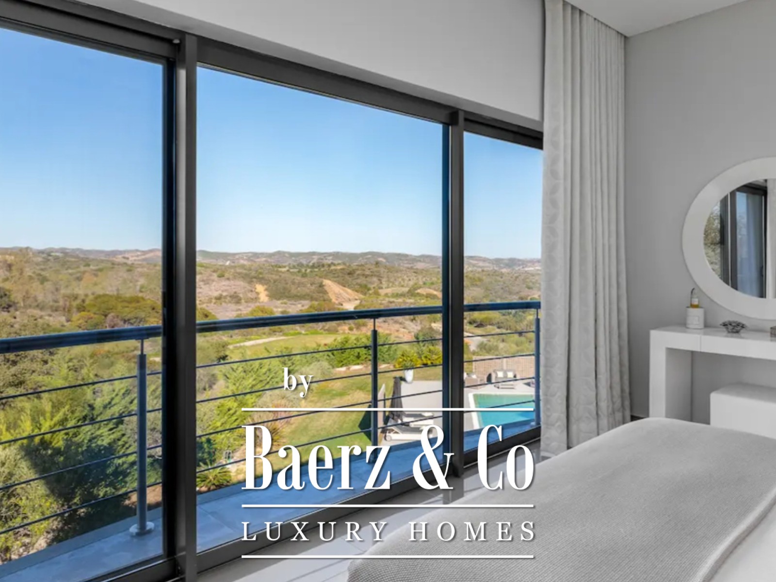 De mastersuite van ruim 70 m² beschikt over dubbele inloopkasten en een luxueuze badkamer, waarbij elk raam uitzicht biedt op de groene golfbaan. Op de eerste verdieping bevinden zich drie slaapkamers met eigen badkamer, naast een panoramische lounge en terras van 75 m², ideaal voor besloten bijeenkomsten of momenten van rust.