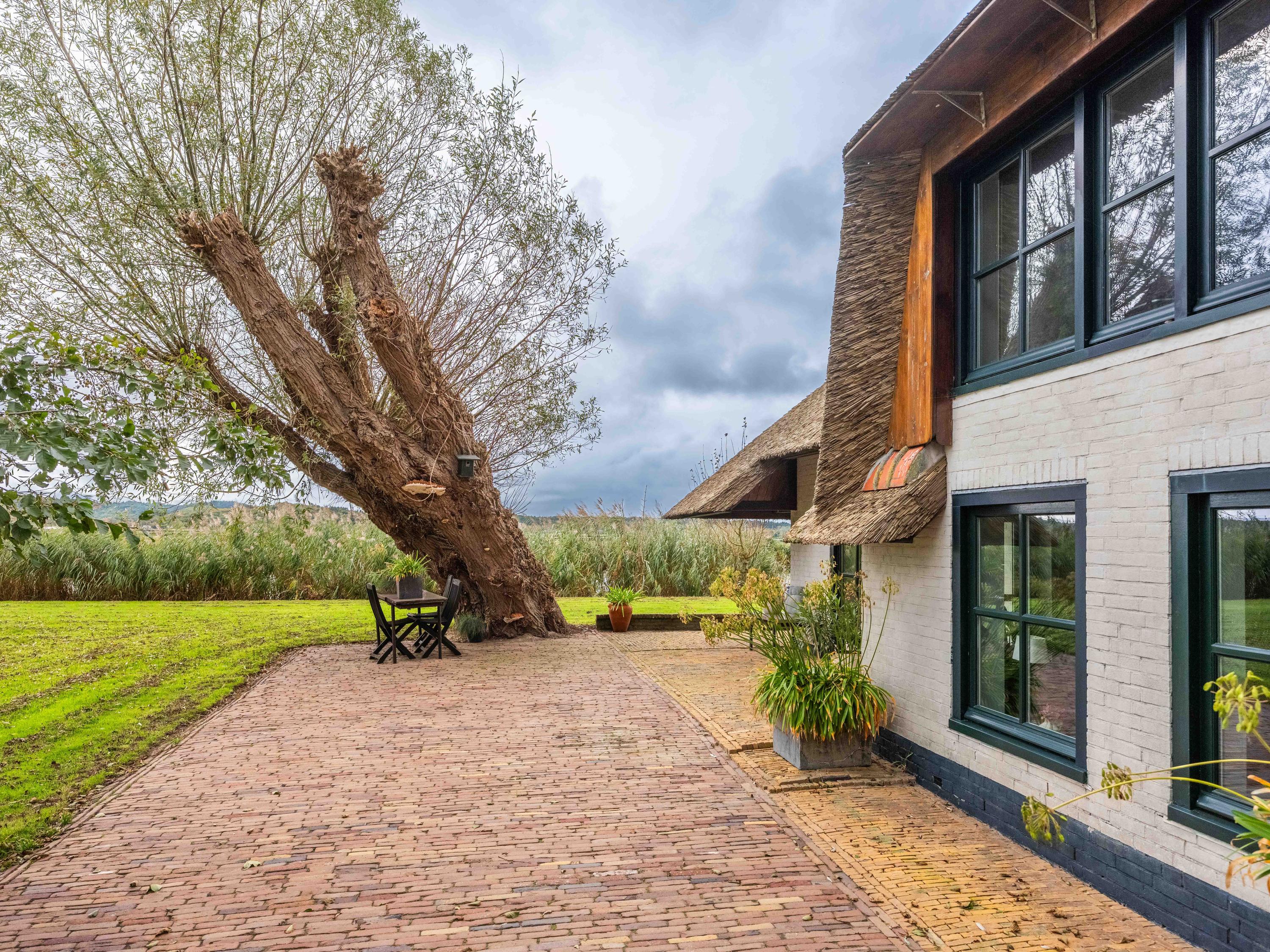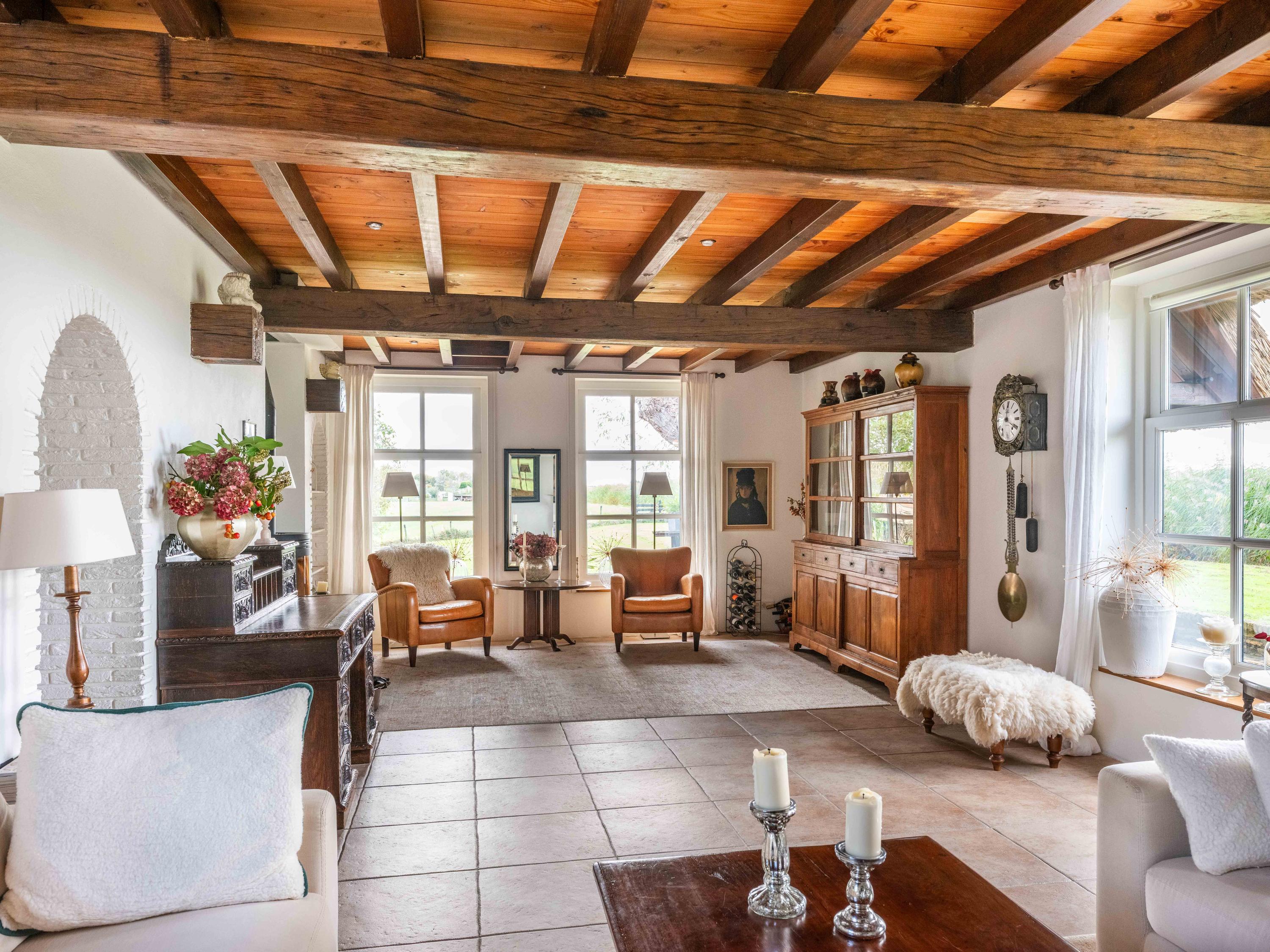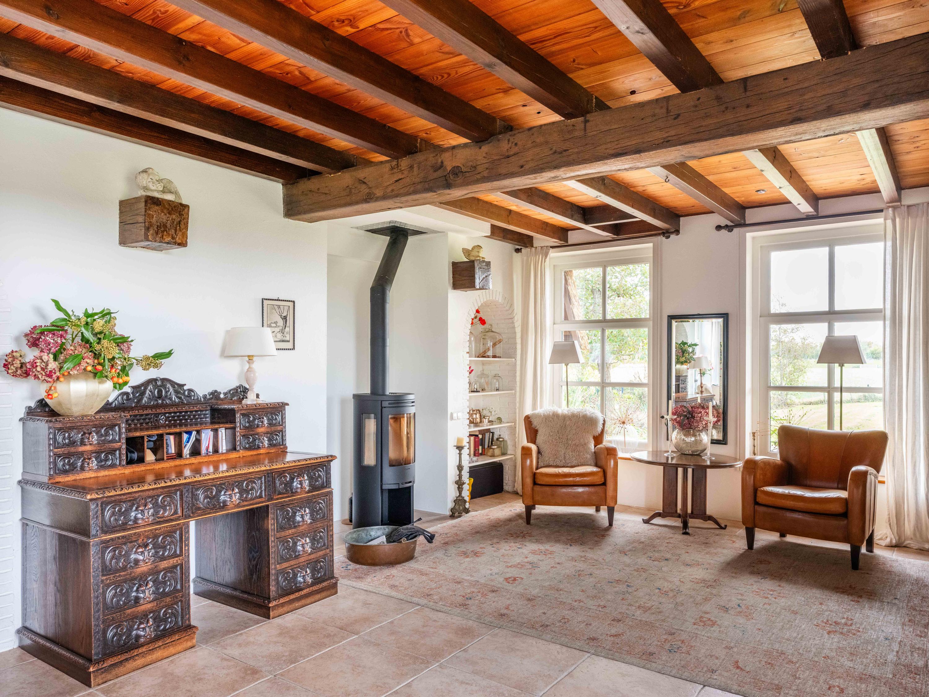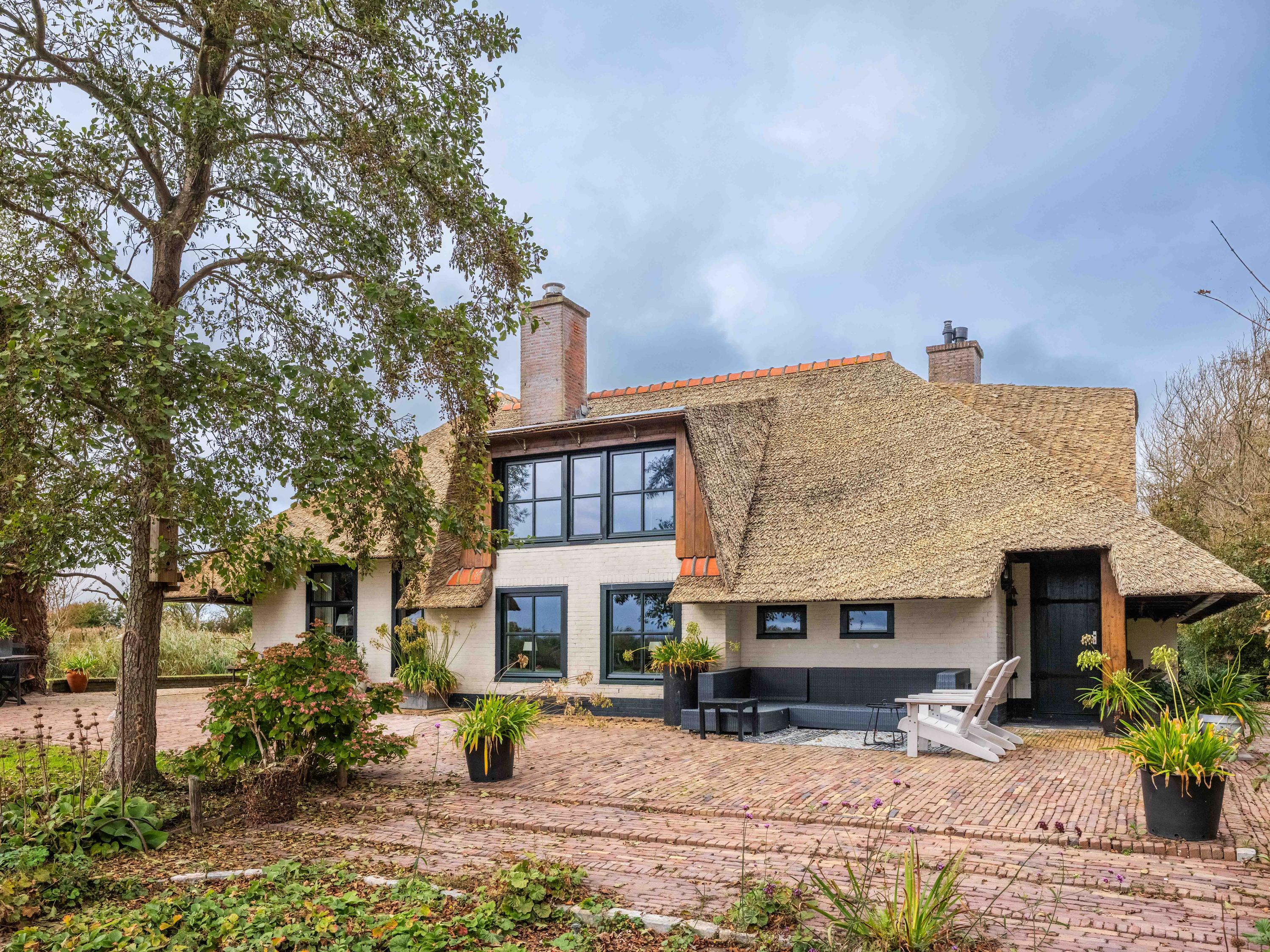 De woning heeft een warme, landelijke uitstraling met moderne gemakken zoals vloerverwarming, kunststof rieten dakbedekking en volledige isolatie.