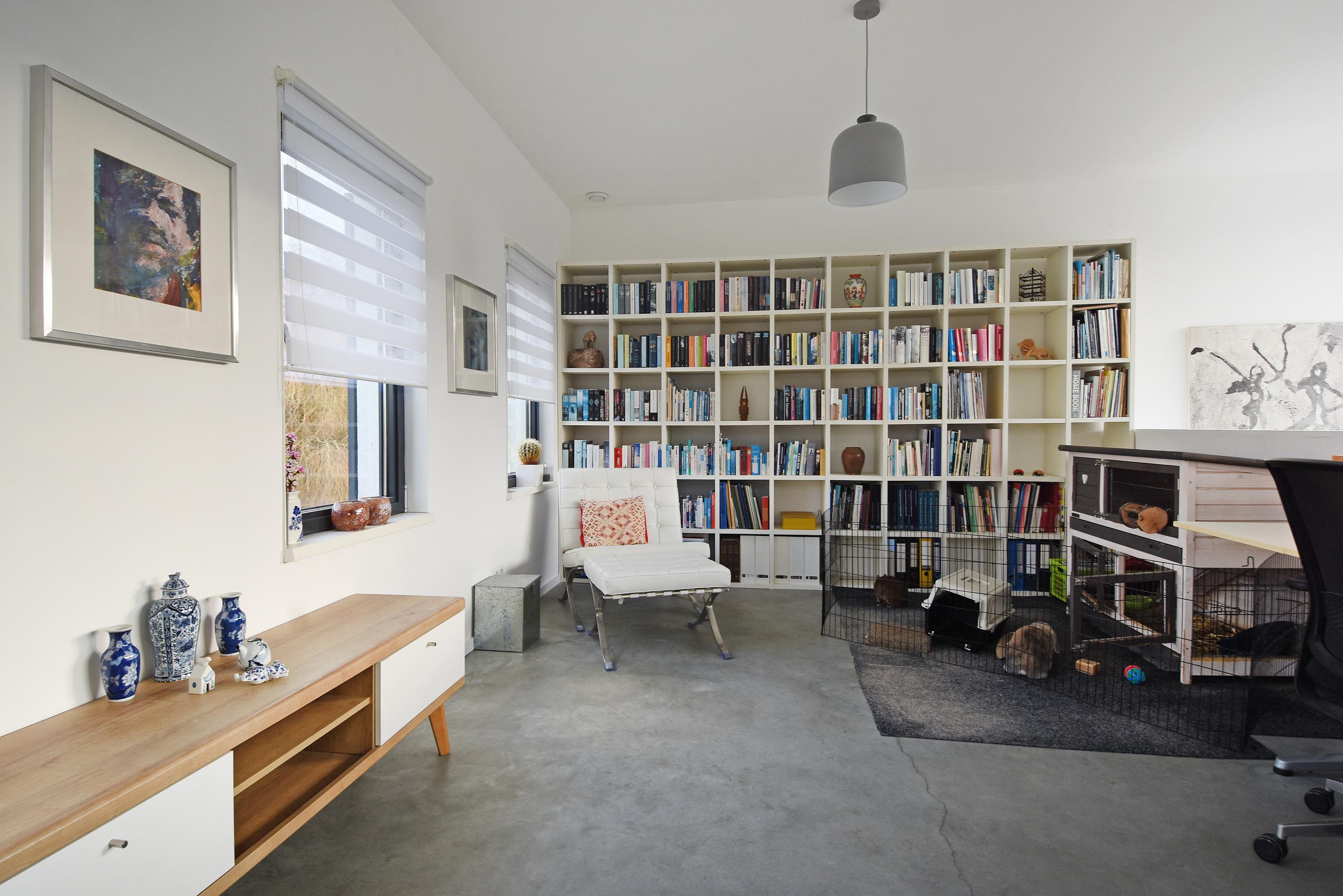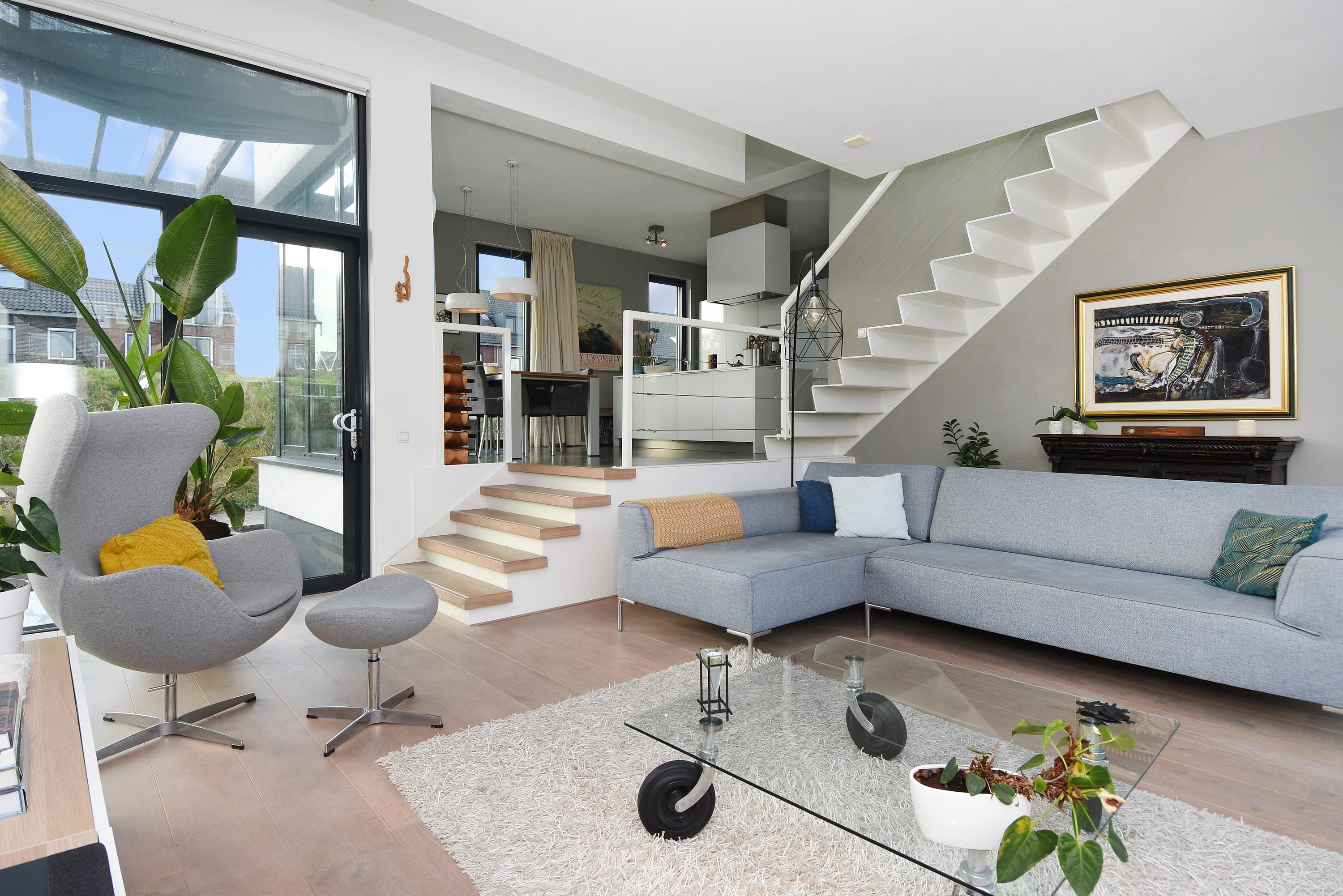 Планировка намеренно универсальна. На входе предусмотрено отдельное помещение для хранения велосипедов, откуда по стационарной лестнице можно подняться к главному входу. Прихожая открывает доступ к функциональной хозяйственной зоне и мастер-суйте с собственной ванной, душевой кабиной и двойной раковиной. На первом этаже пространство последовательно объединяет полностью оборудованную кухню с просторным островом и гостиную с панорамными окнами от пола до потолка, выходящими на водоем. Террасы как у воды, так и на крыше предлагают приватные уголки для отдыха на свежем воздухе. Антресоль, спроектированная как многофункциональная зона, идеально подходит для работы, досуга или размышлений под голландским небом.