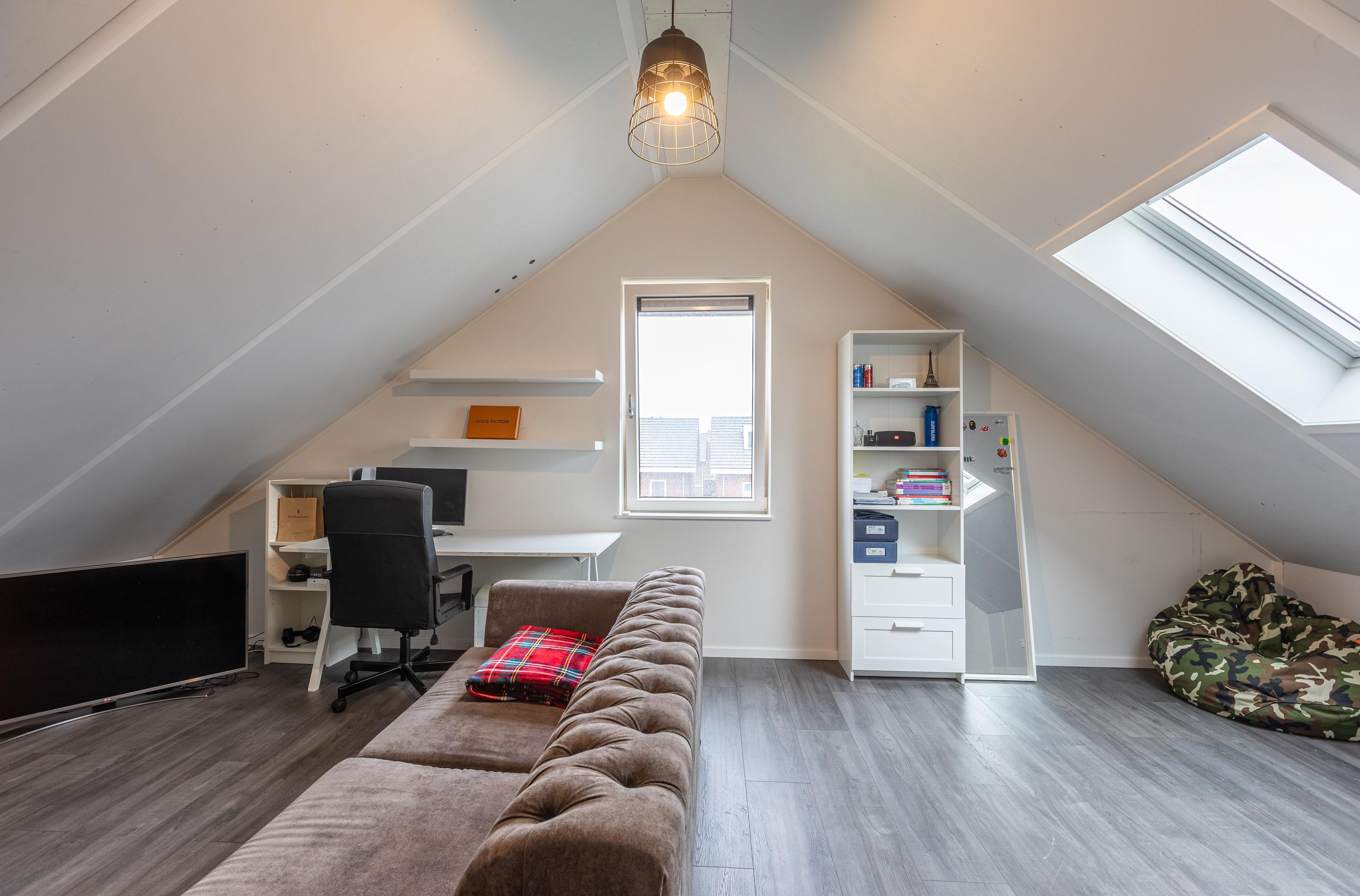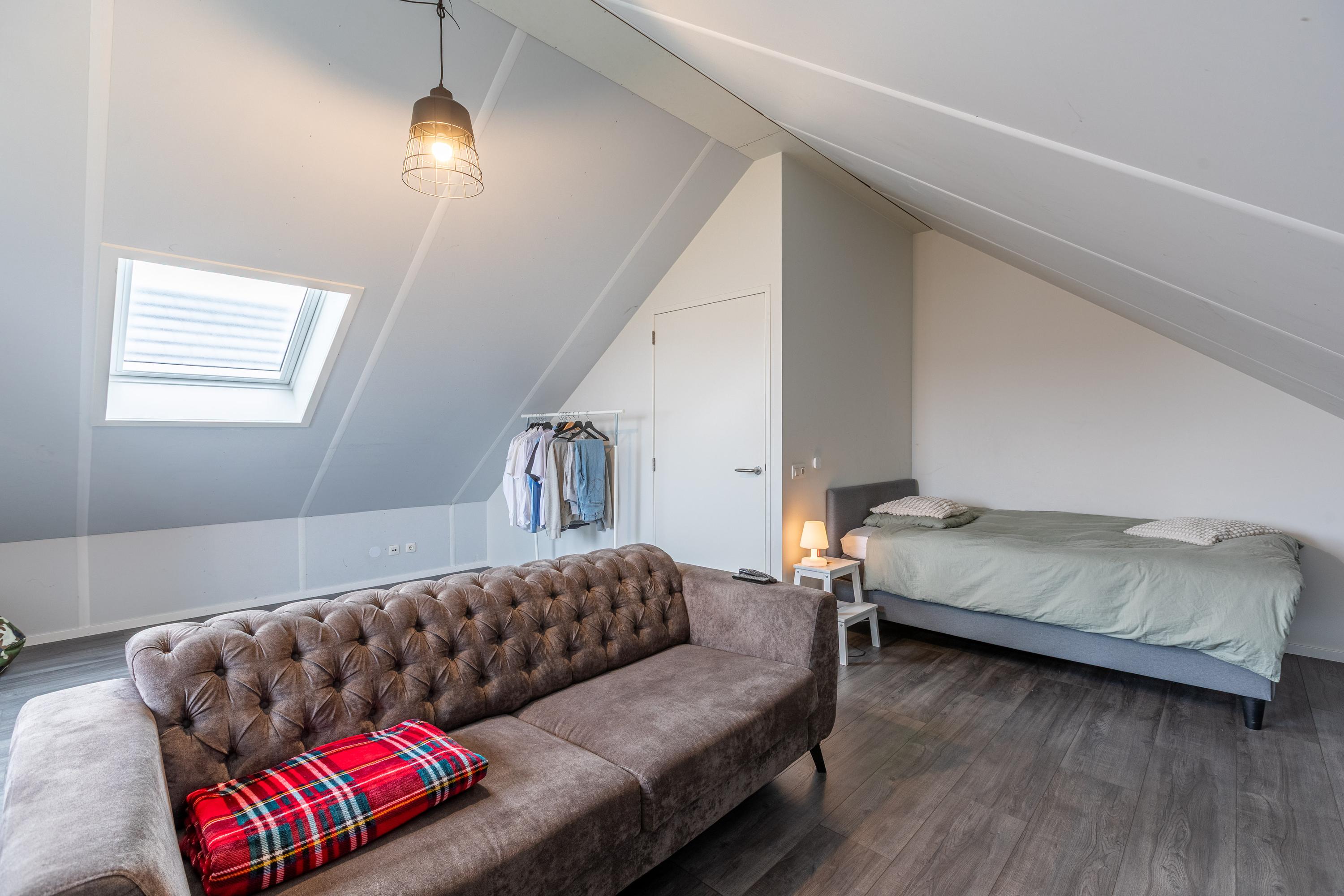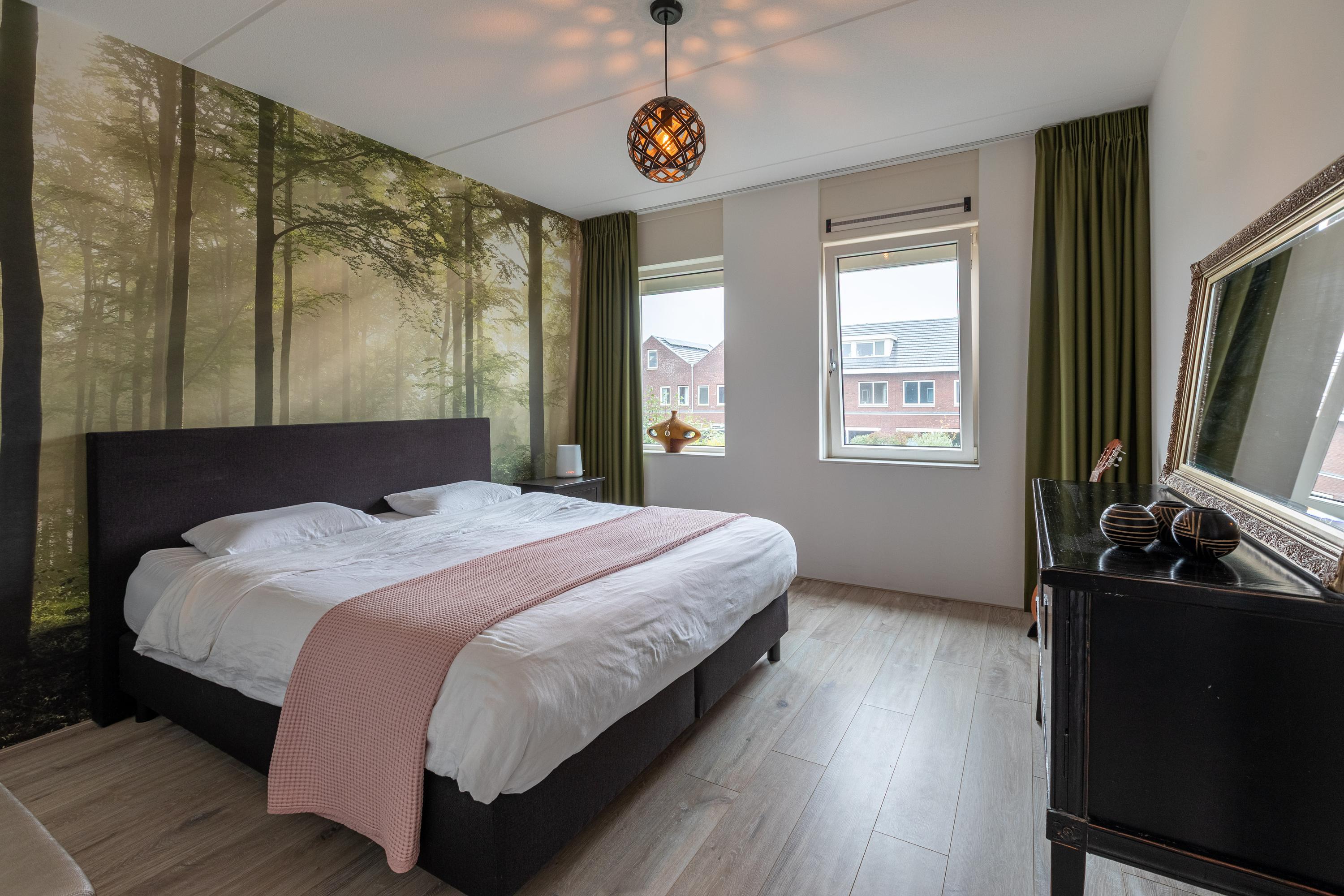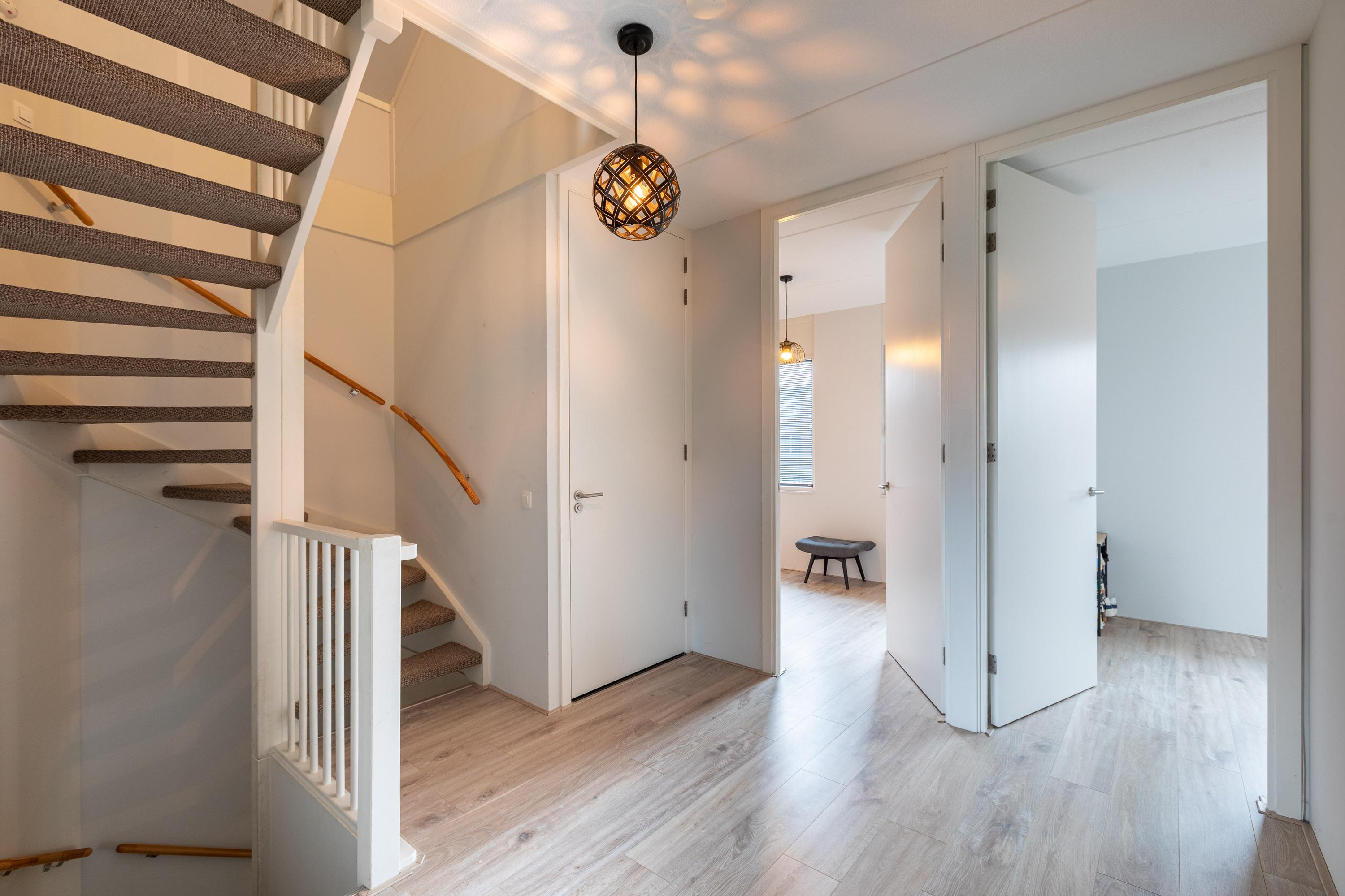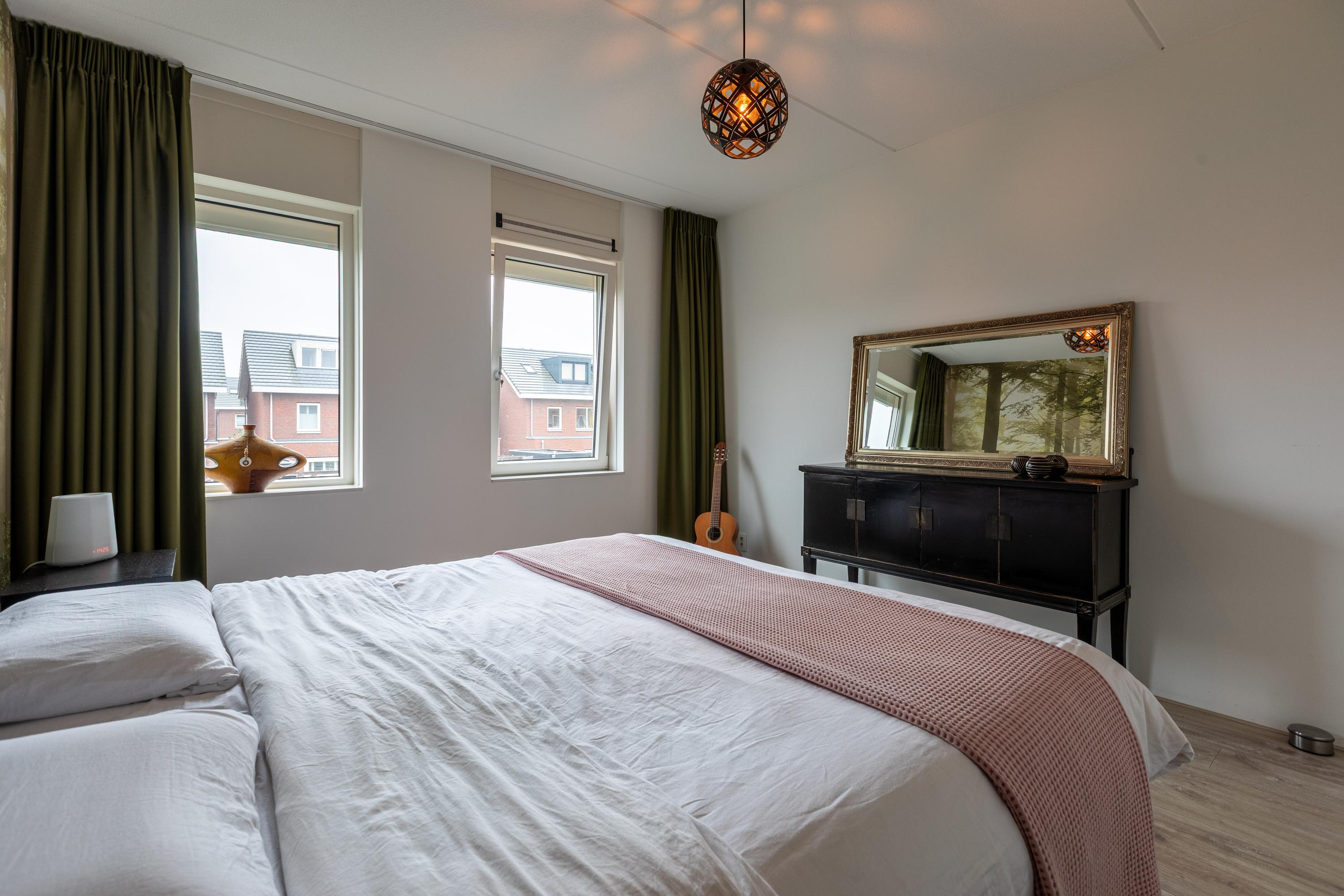 По светлой лестнице можно подняться на этаж, где расположены четыре уютные спальни с высокими дверьми и хорошим естественным освещением. В центре — ванная комната с душем без бортика, ванной и двойной раковиной, а отдельный второй санузел обеспечивает дополнительный комфорт. Второй уровень предлагает гибкие возможности: просторная пятая спальня и универсальная шестая комната, сейчас используемая как прачечная и кладовая, готовы стать второй ванной при необходимости. Оконные рамы из пластика с остеклением HR++ и сбалансированная вентиляция подчеркивают продуманную теплоизоляцию.
