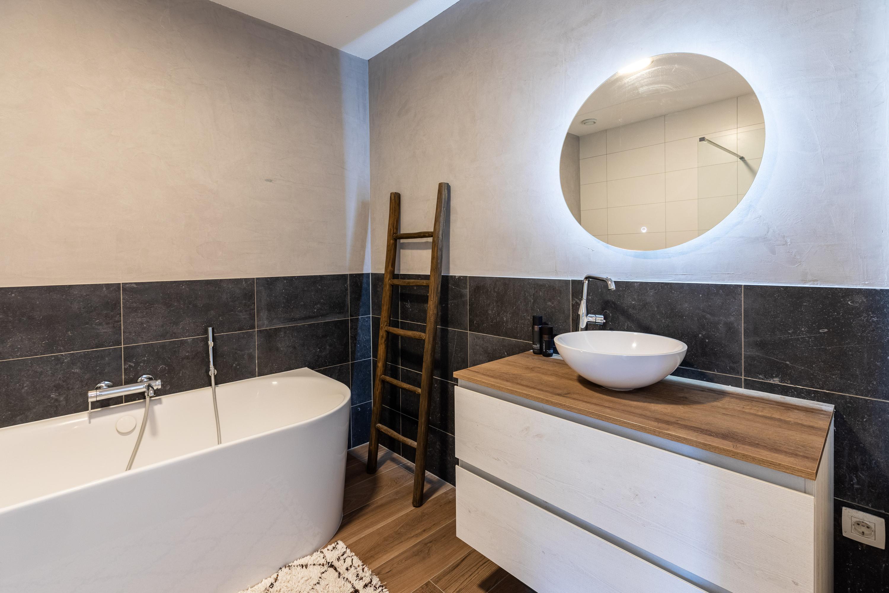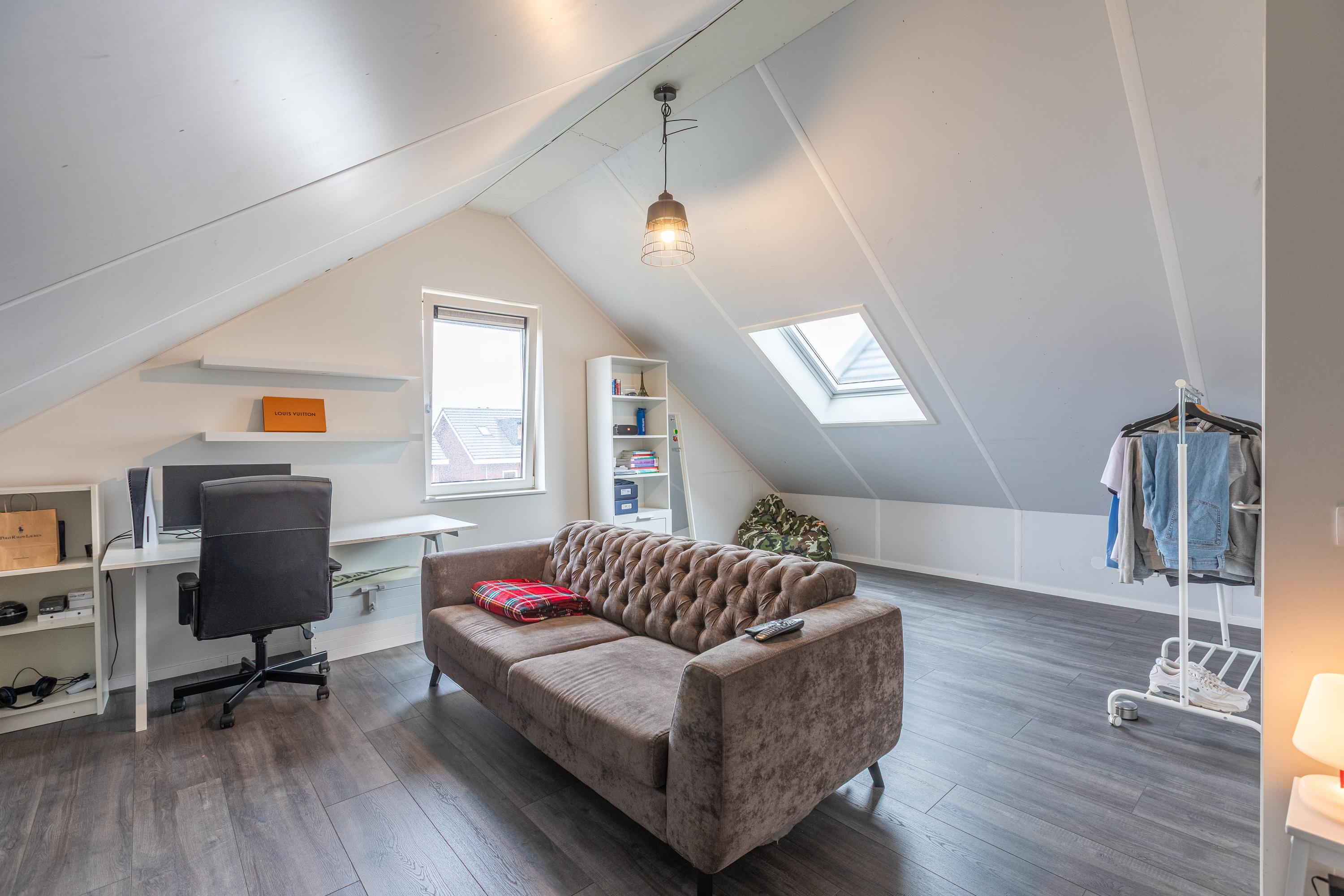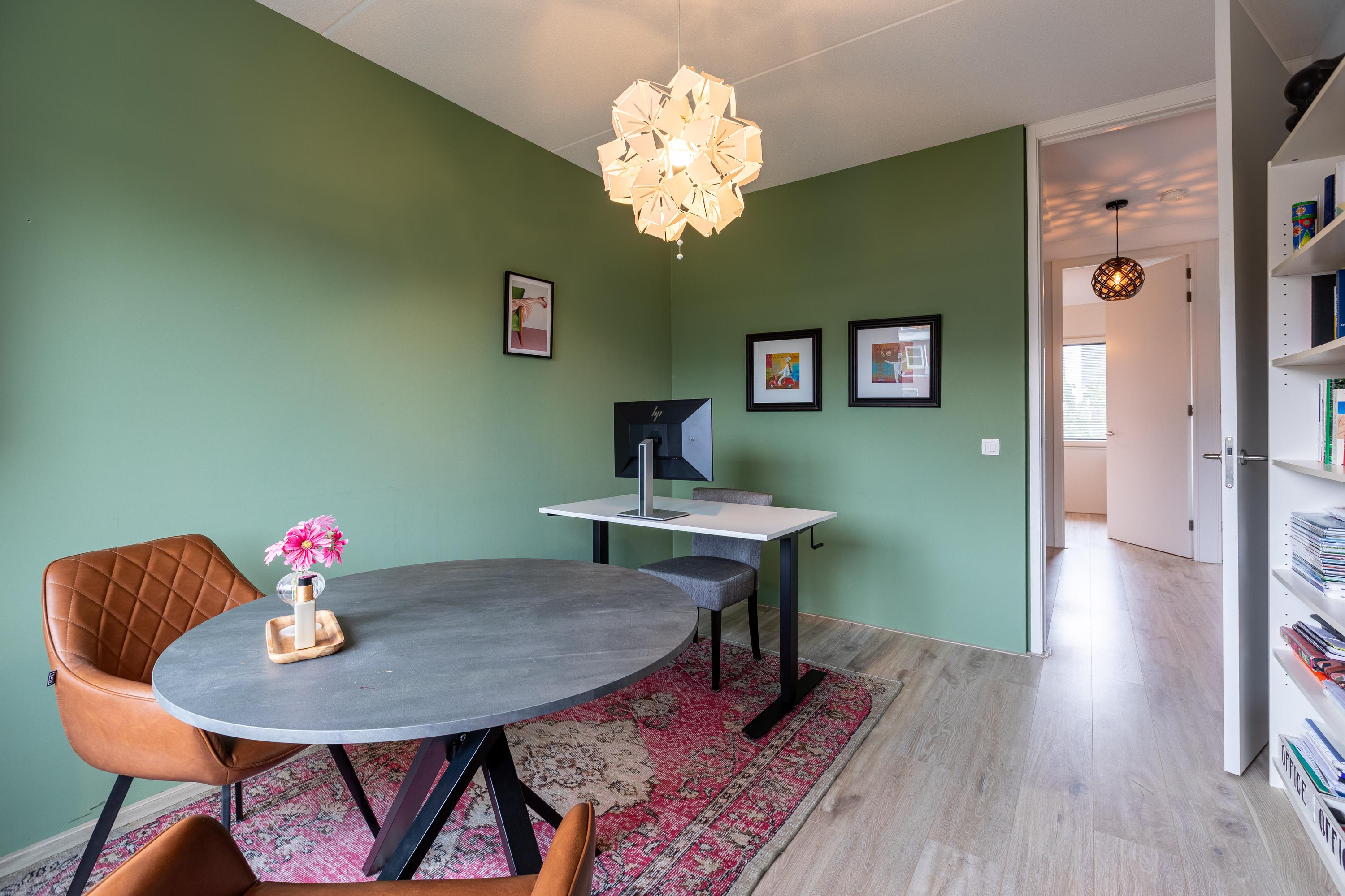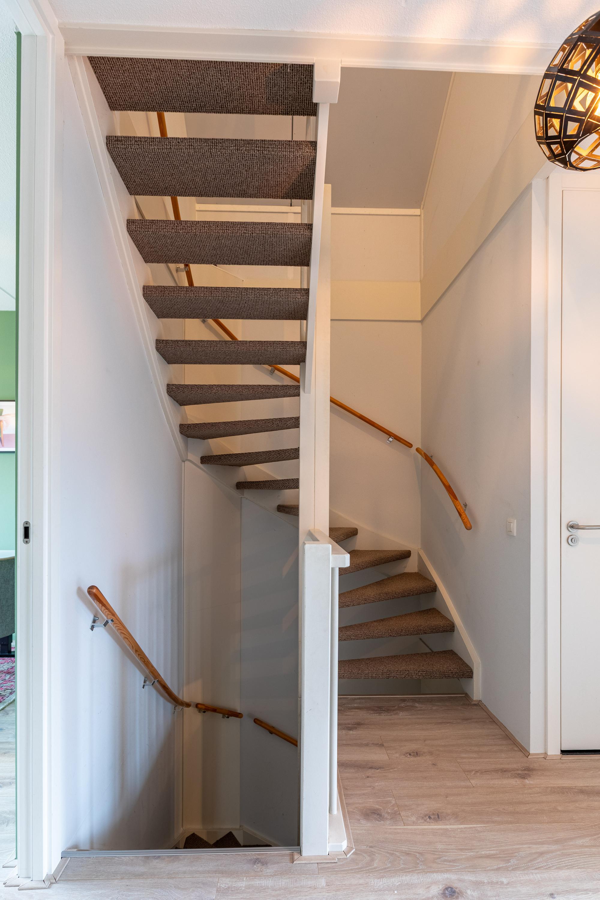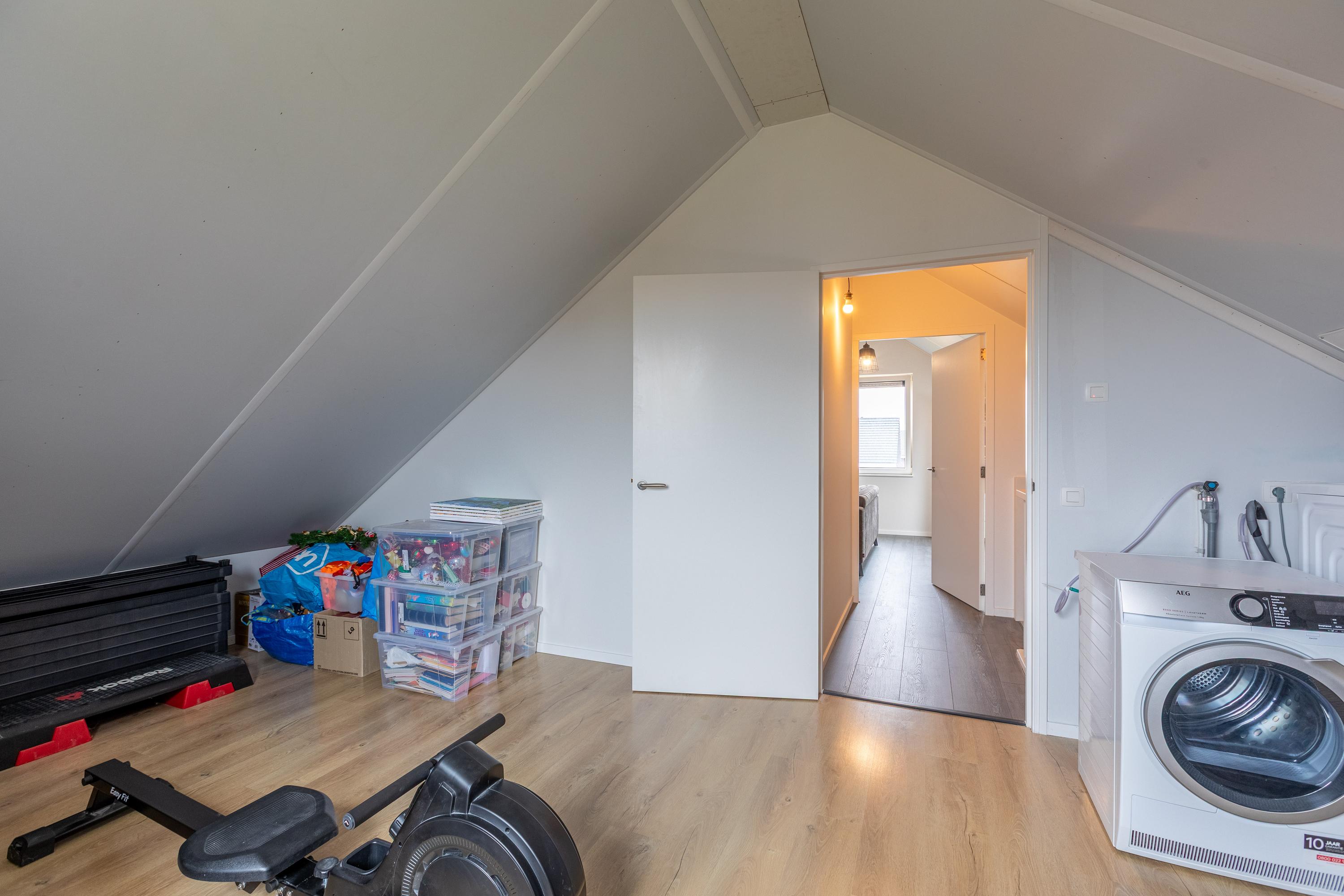 По светлой лестнице можно подняться на этаж, где расположены четыре уютные спальни с высокими дверьми и хорошим естественным освещением. В центре — ванная комната с душем без бортика, ванной и двойной раковиной, а отдельный второй санузел обеспечивает дополнительный комфорт. Второй уровень предлагает гибкие возможности: просторная пятая спальня и универсальная шестая комната, сейчас используемая как прачечная и кладовая, готовы стать второй ванной при необходимости. Оконные рамы из пластика с остеклением HR++ и сбалансированная вентиляция подчеркивают продуманную теплоизоляцию.
