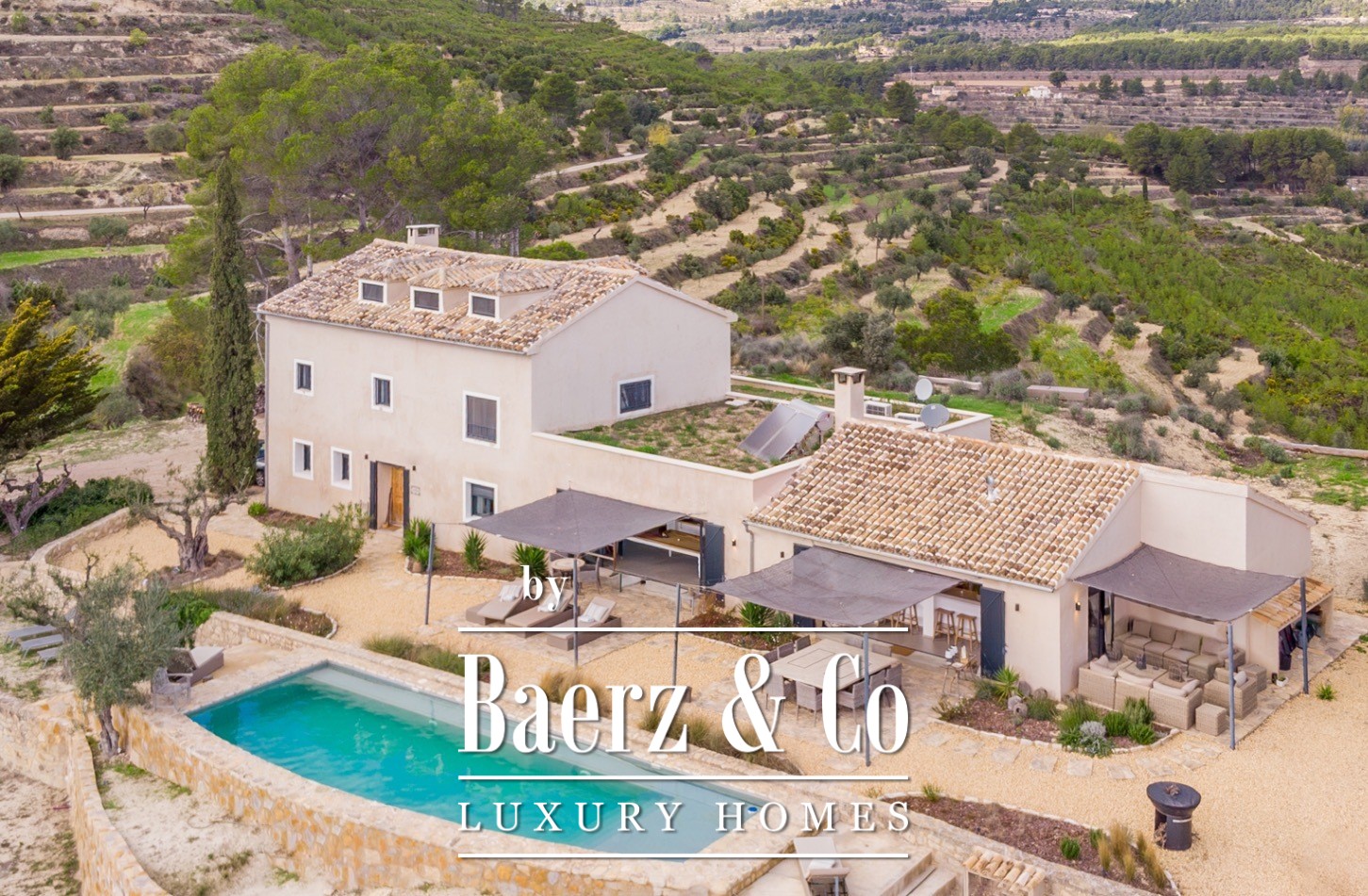 Финка Torremanzanas представляет собой редкий тип недвижимости в одном из самых тихих внутренних районов Испании. Она расположена на 18 гектарах благоухающих средиземноморских земель на высоте 850 метров, всего в 3 км от деревни Torremanzanas, и открывает панорамные виды на Puig Campana. В 2022 году главный дом площадью 450 м² был тщательно обновлен, объединив изысканную современную отделку с аутентичным средиземноморским характером. Все жилые пространства наполнены светом, оформлены сдержанно и с элегантностью, выходят к ландшафту с оливковыми, миндальными и грецкими орехами.