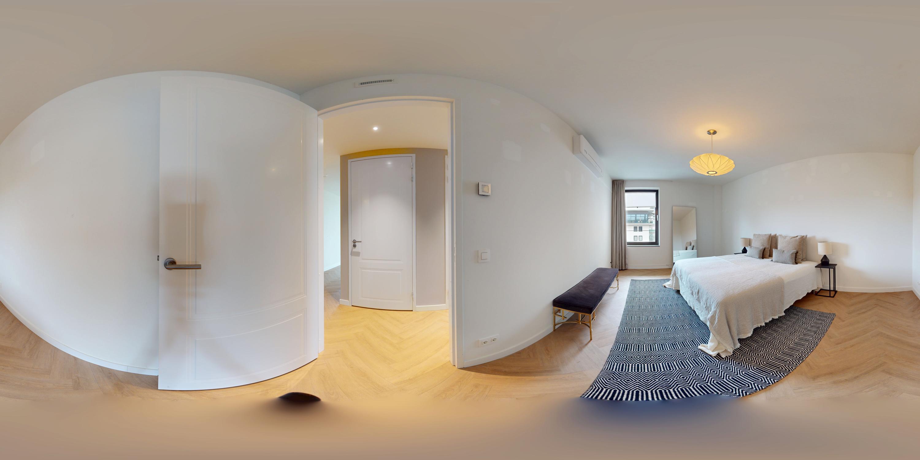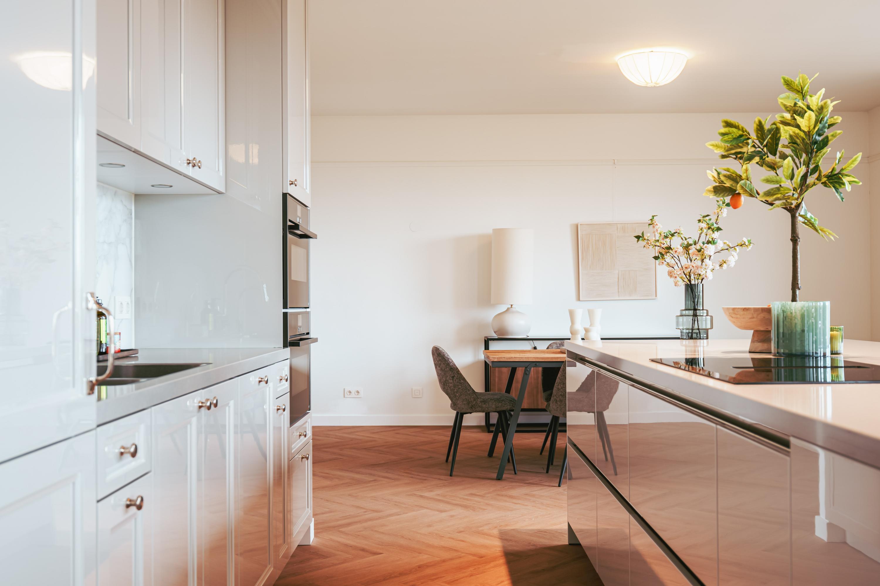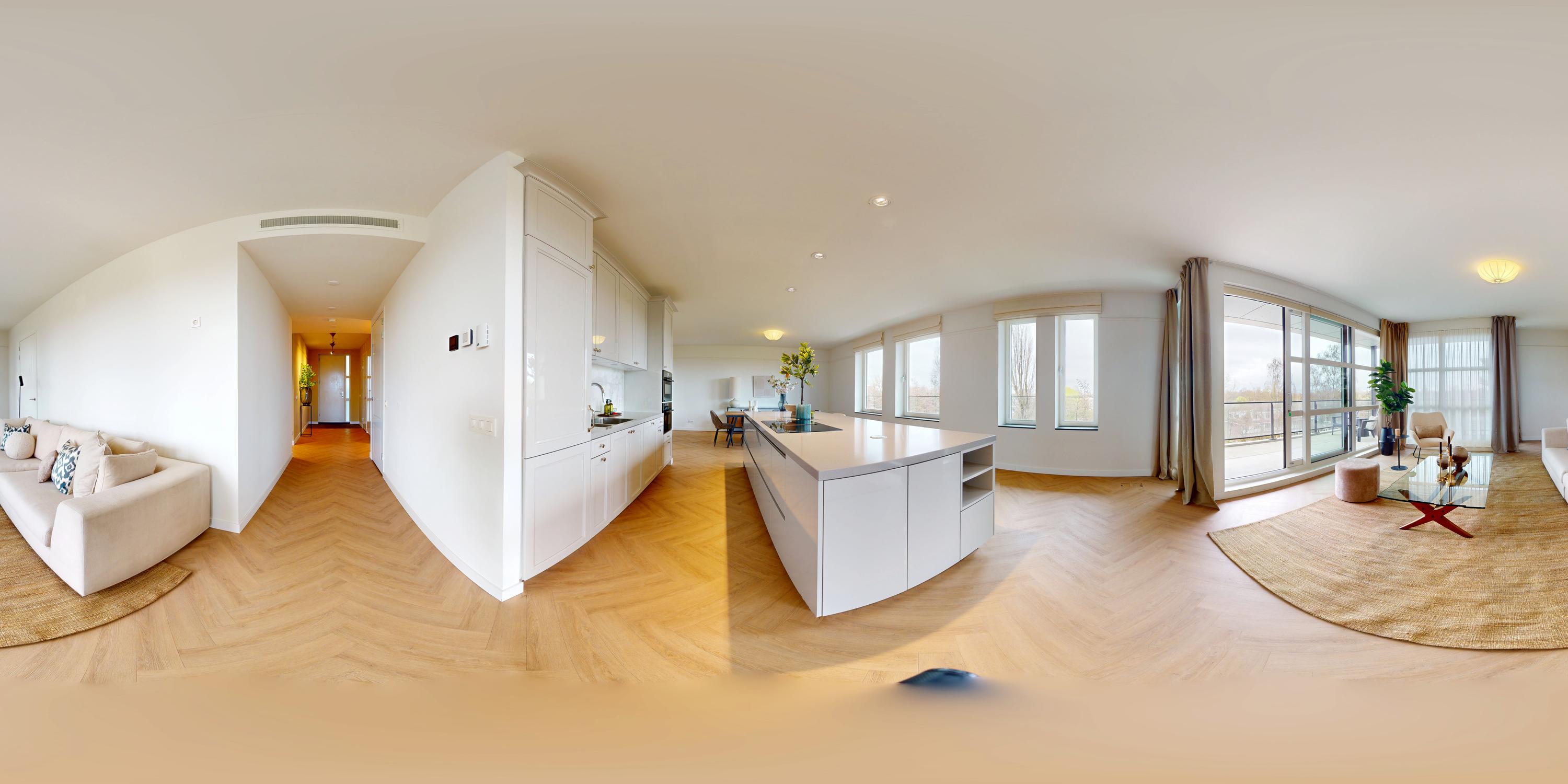 Amstelveen公寓巧妙融合可持续建筑与极致舒适体验。全新建筑面积约169平方米,布局包括四间卧室及两间浴室,连接面向西南的露台。专属入口通向宽敞走廊,设有嵌入式储物空间,内部装饰以人字拼木地板、地暖与地面冷却系统为特色。主生活区自然采光充足,以配备集成家电的Siematic厨房岛为核心,并通向阳光充沛、无遮挡的观景阳台。