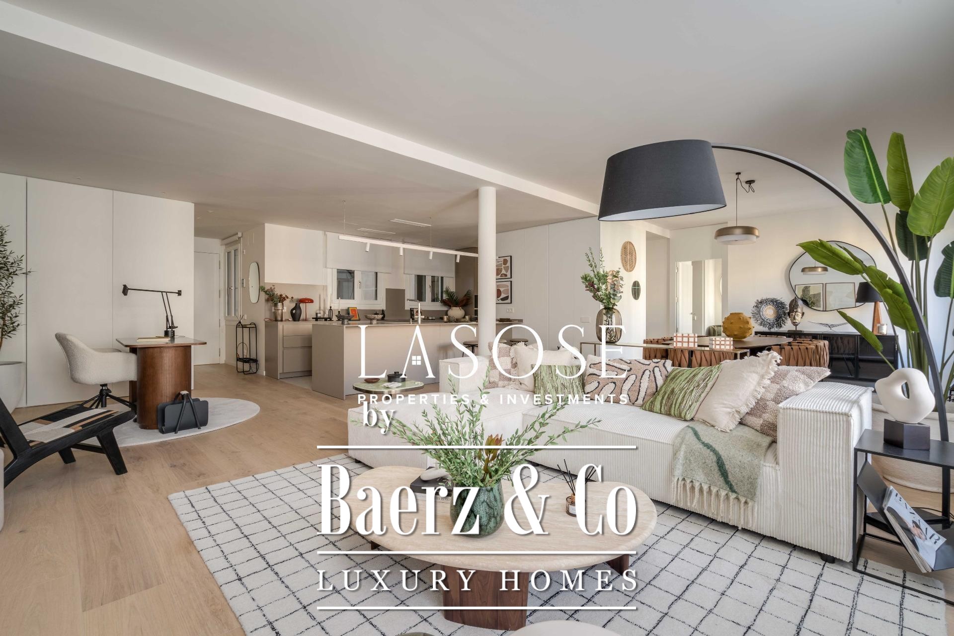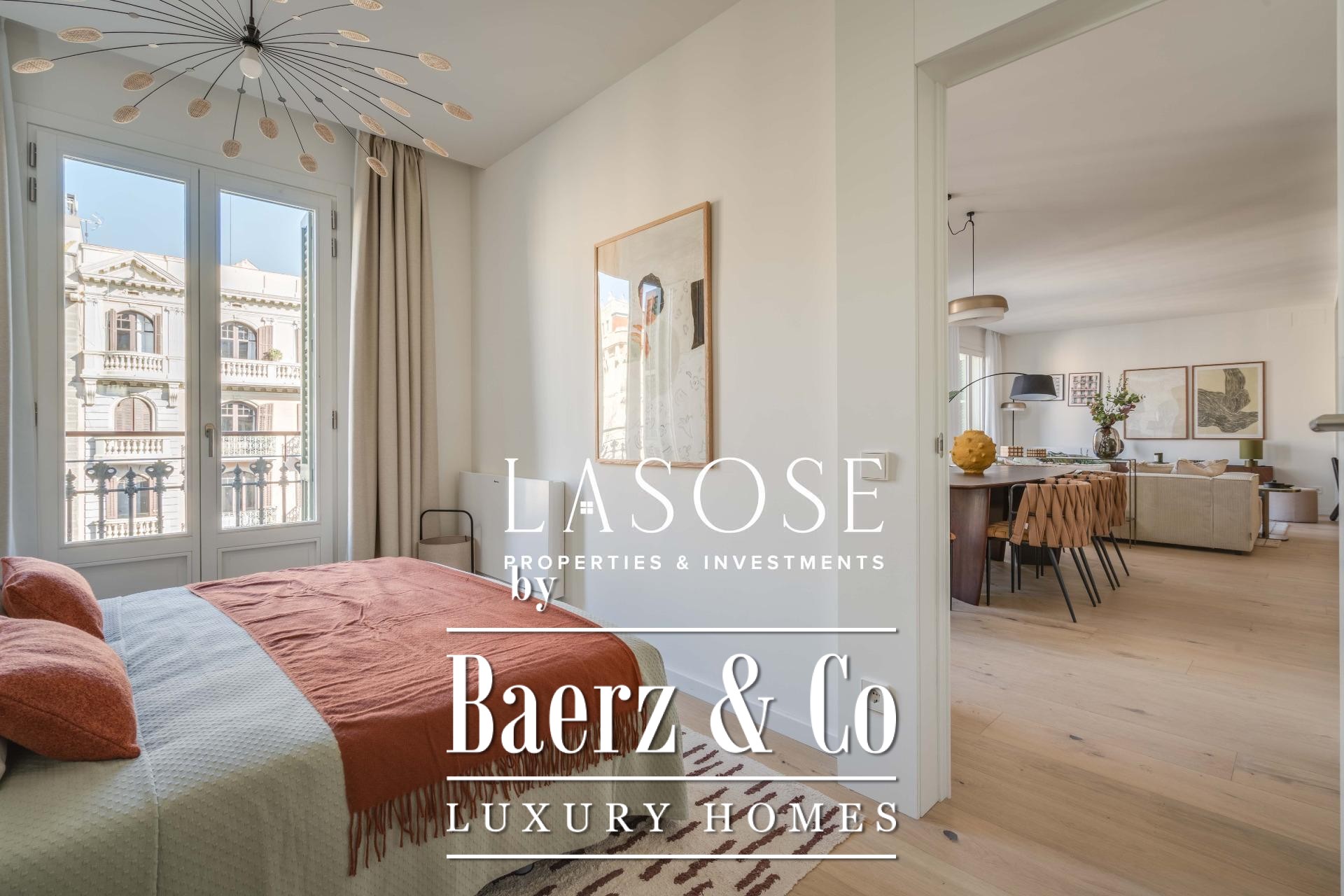 本套住宅拥有 137 平方米的生活空间,布局考究,设有两间卧室和三间浴室。阳台与宽敞露台让室内空间与城市脉搏连接,建筑的外立面和公共区域则展现了巴塞罗那的经典优雅。室内由 Estudio Vilablanch 设计,兼具现代气息与永不过时的格调,配备高端家电、宽敞衣橱、供暖系统,并拥有明亮细致的氛围。