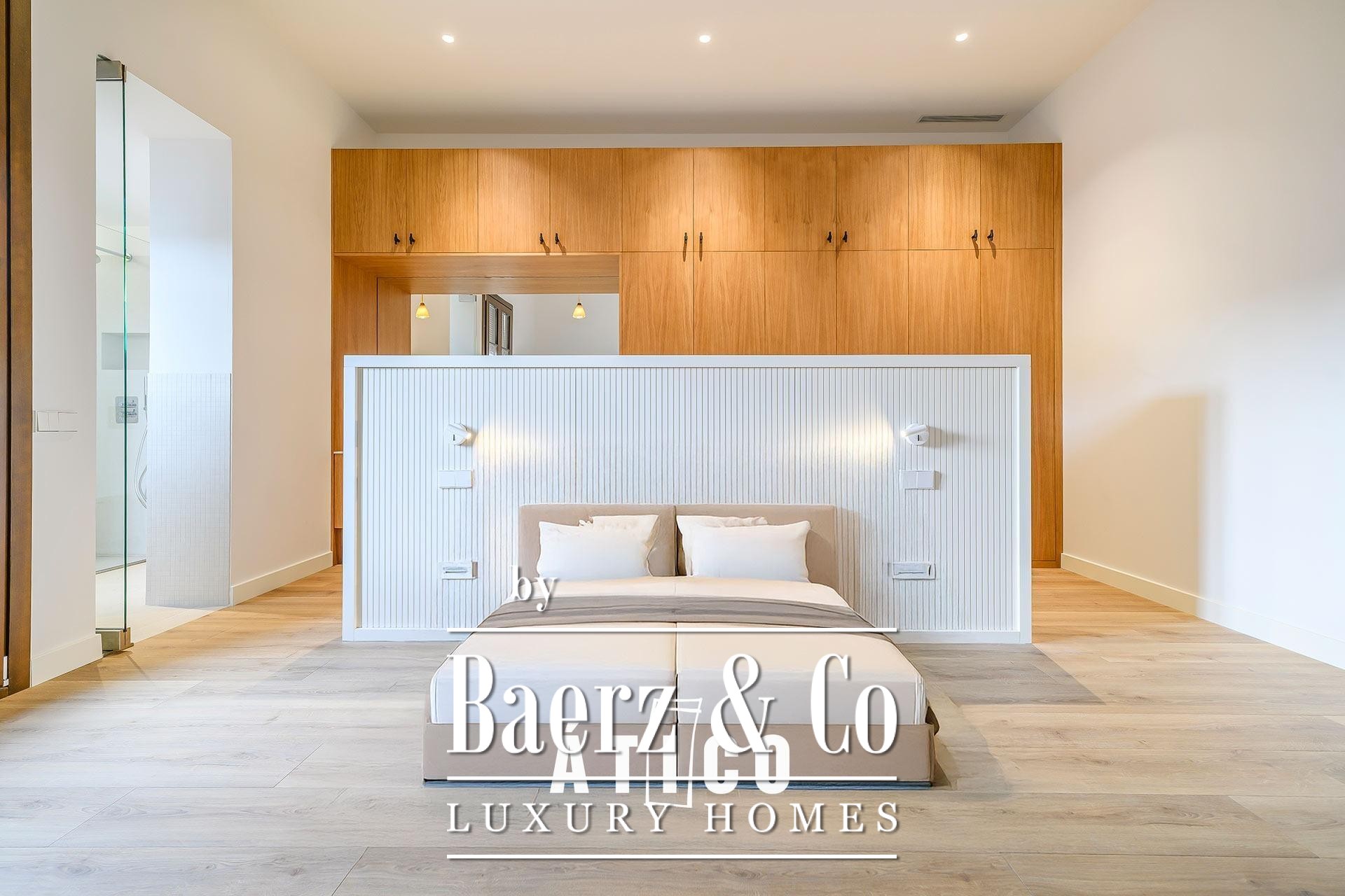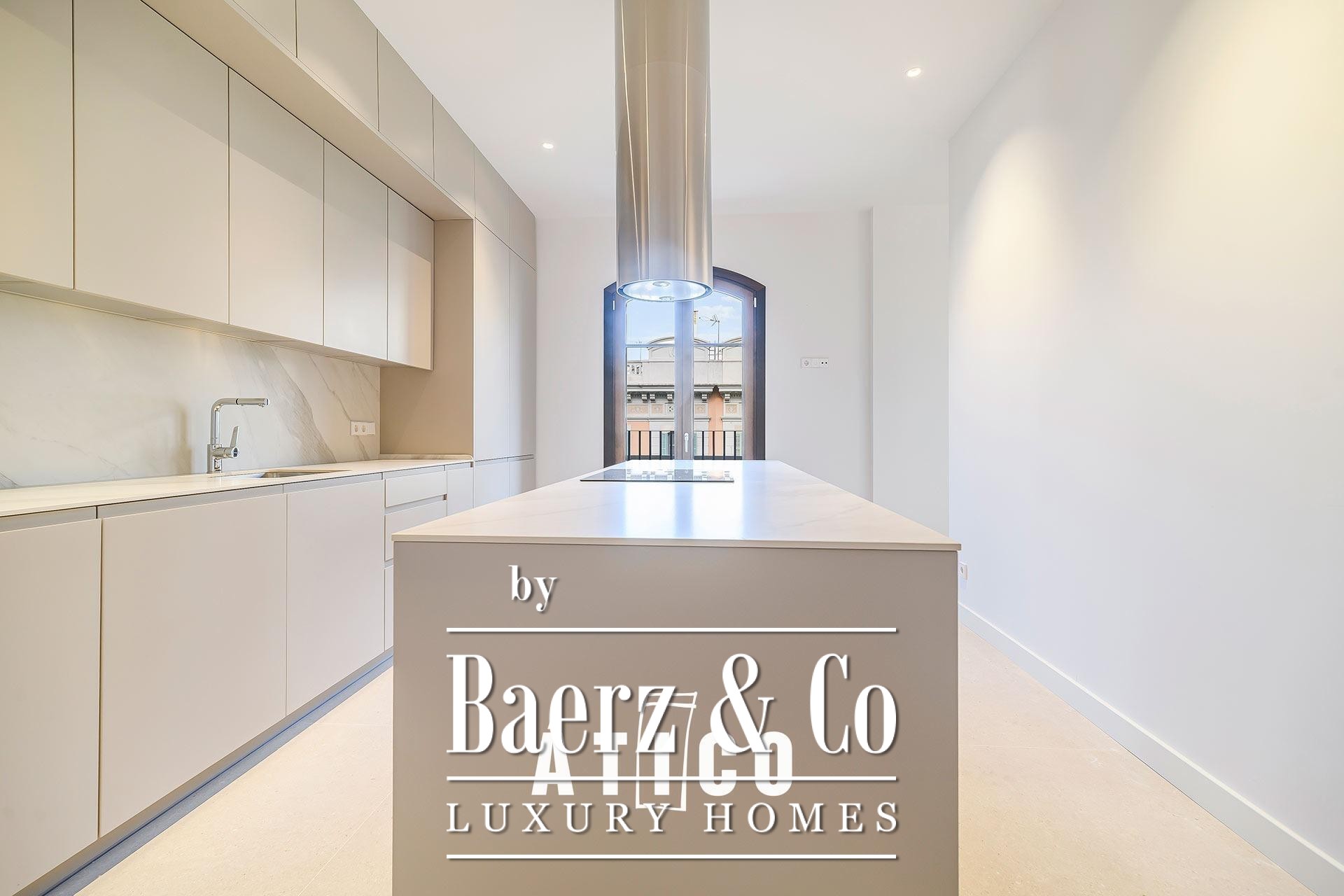 上层设有一间卧室、一间多功能房(适合工作或休闲),以及一间完整浴室。38.85平方米的露台将生活延展至户外,无论是开放式聚会还是城市上空的静谧时光,都能尽享自在。三间卧室与三间浴室兼具舒适与私密,精心选材与极致工艺贯穿始终,彰显非凡品质。厨房同样考究,宽敞的储物空间与理性的功能布局,细致照顾日常起居需求。