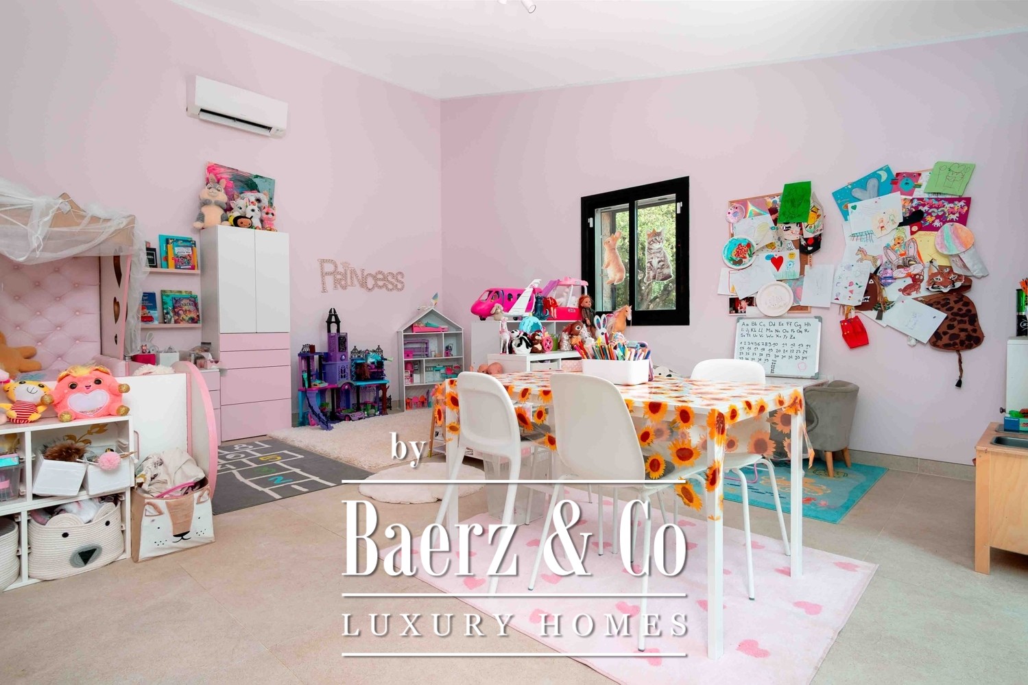 庄园坐落于 11,000 平方米土地之上,享有特拉蒙塔纳山脉全景视野,实现室内外空间的无缝衔接。地中海阳光洒入每一间房,户外区域则邀您在 12 × 6 米盐水泳池旁悠度时光,或于配备烧烤和披萨烤炉的露天厨房共聚晚餐。十二种果树品种及自动灌溉系统环绕花园和露台,营造雅致而舒适的生活氛围。